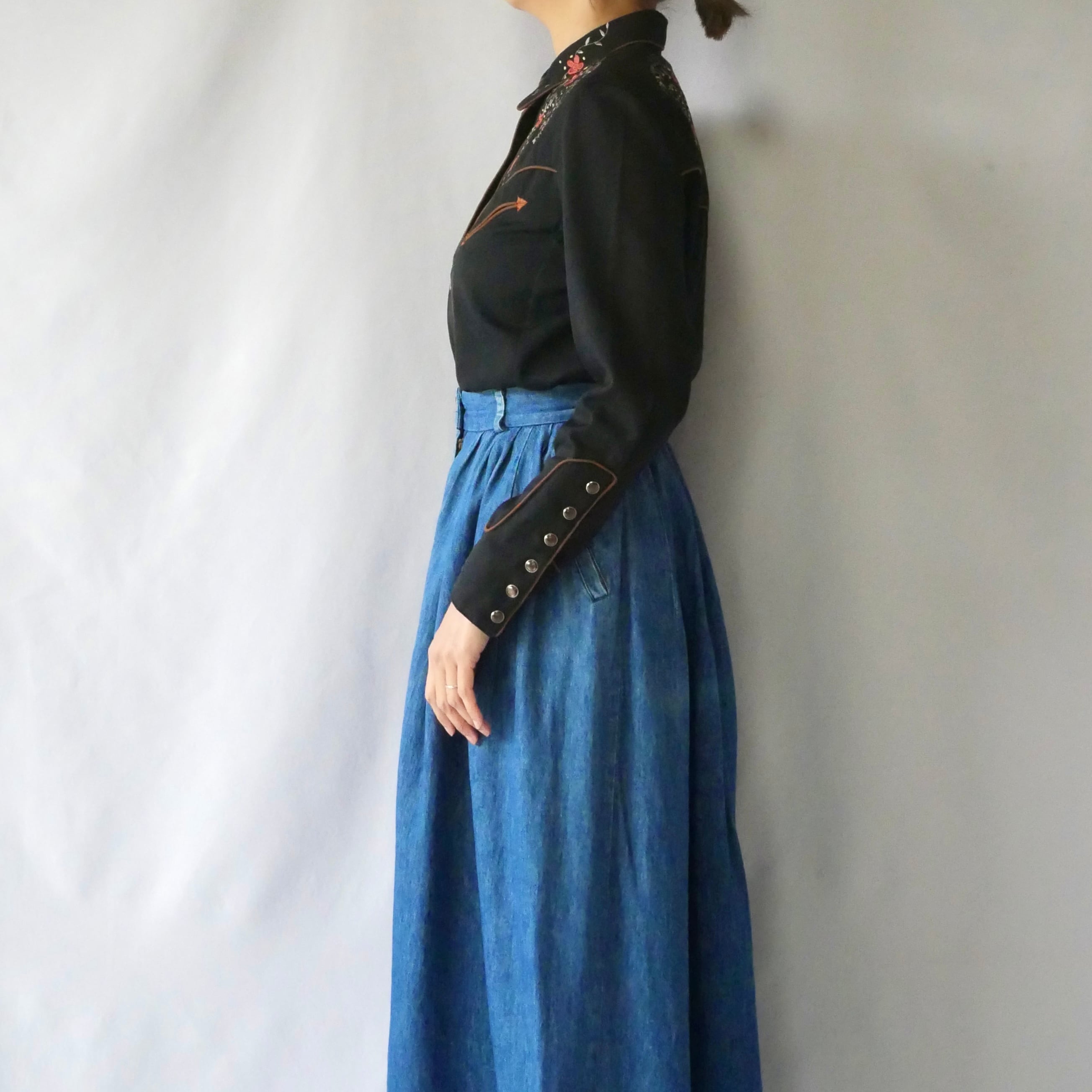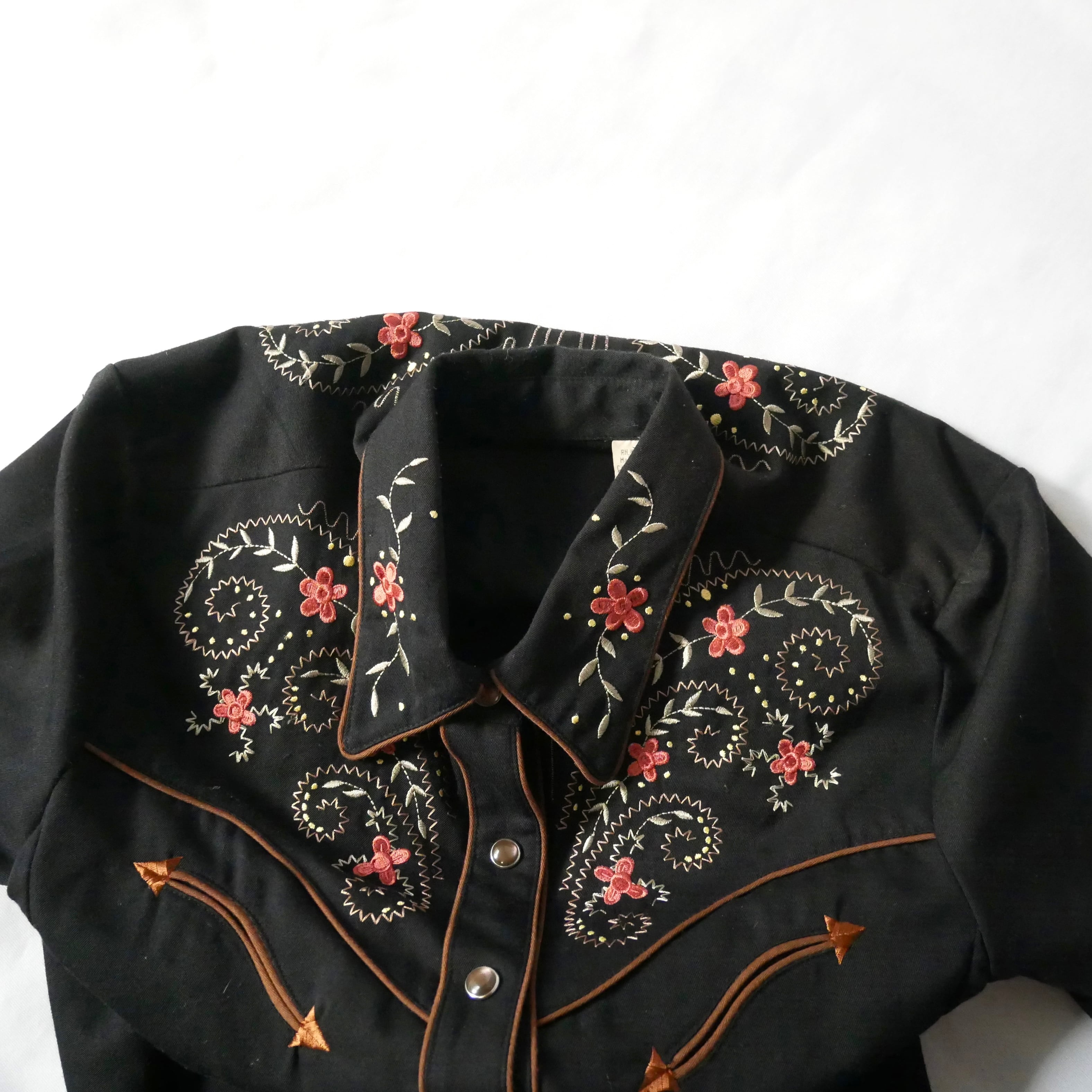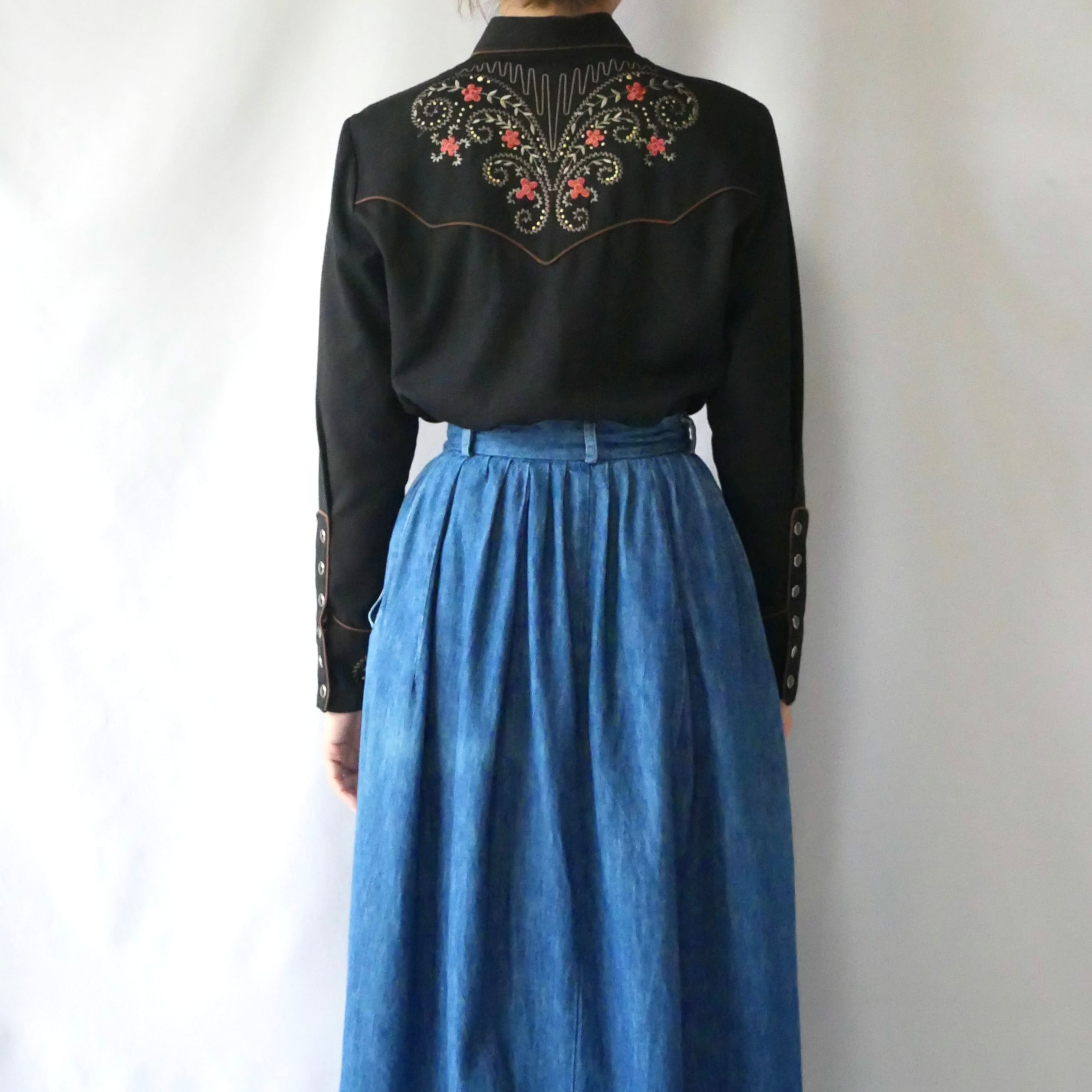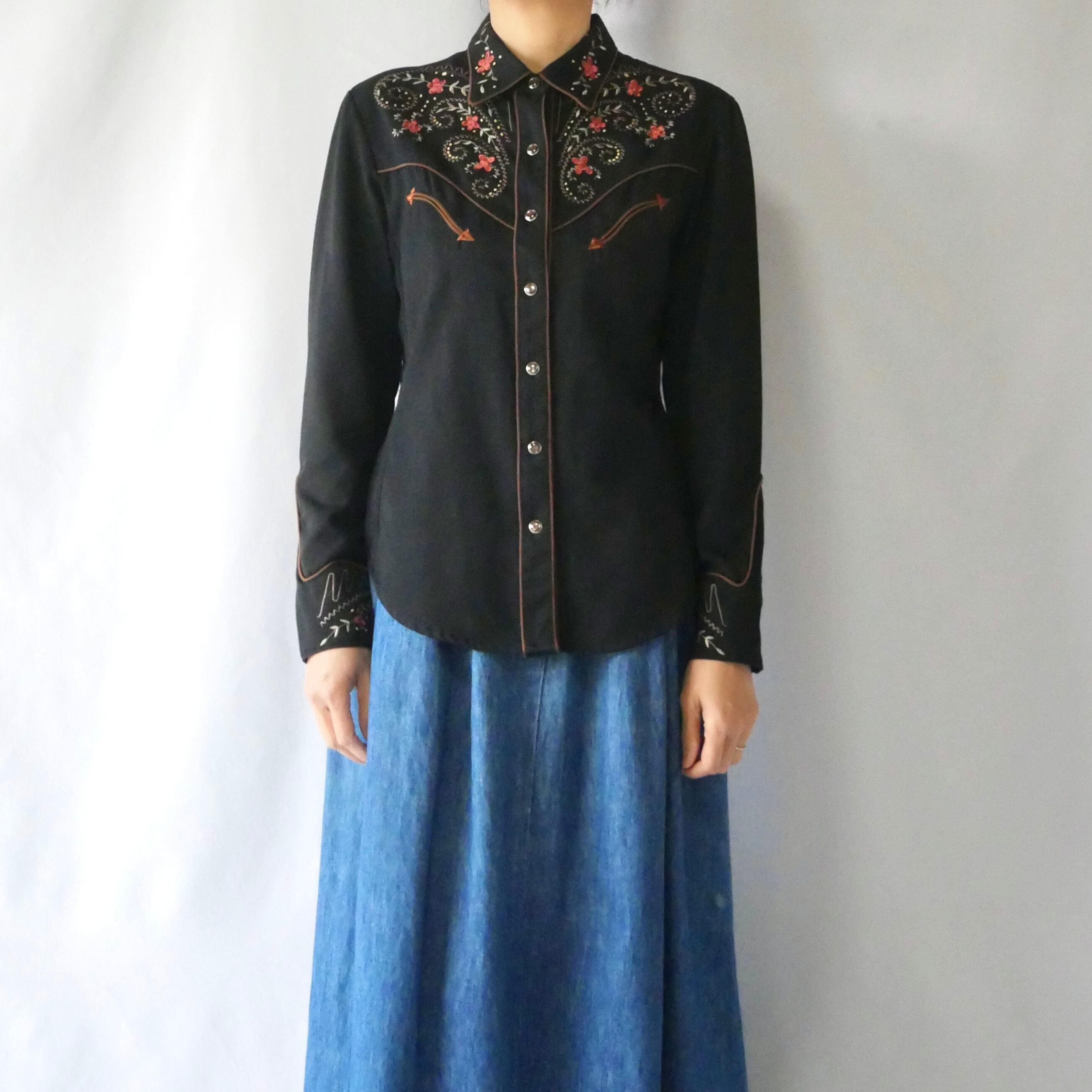 90s scully black floral embroidery western shirt 90年代 スカリー 黒 刺繍 ウエスタンシャツ