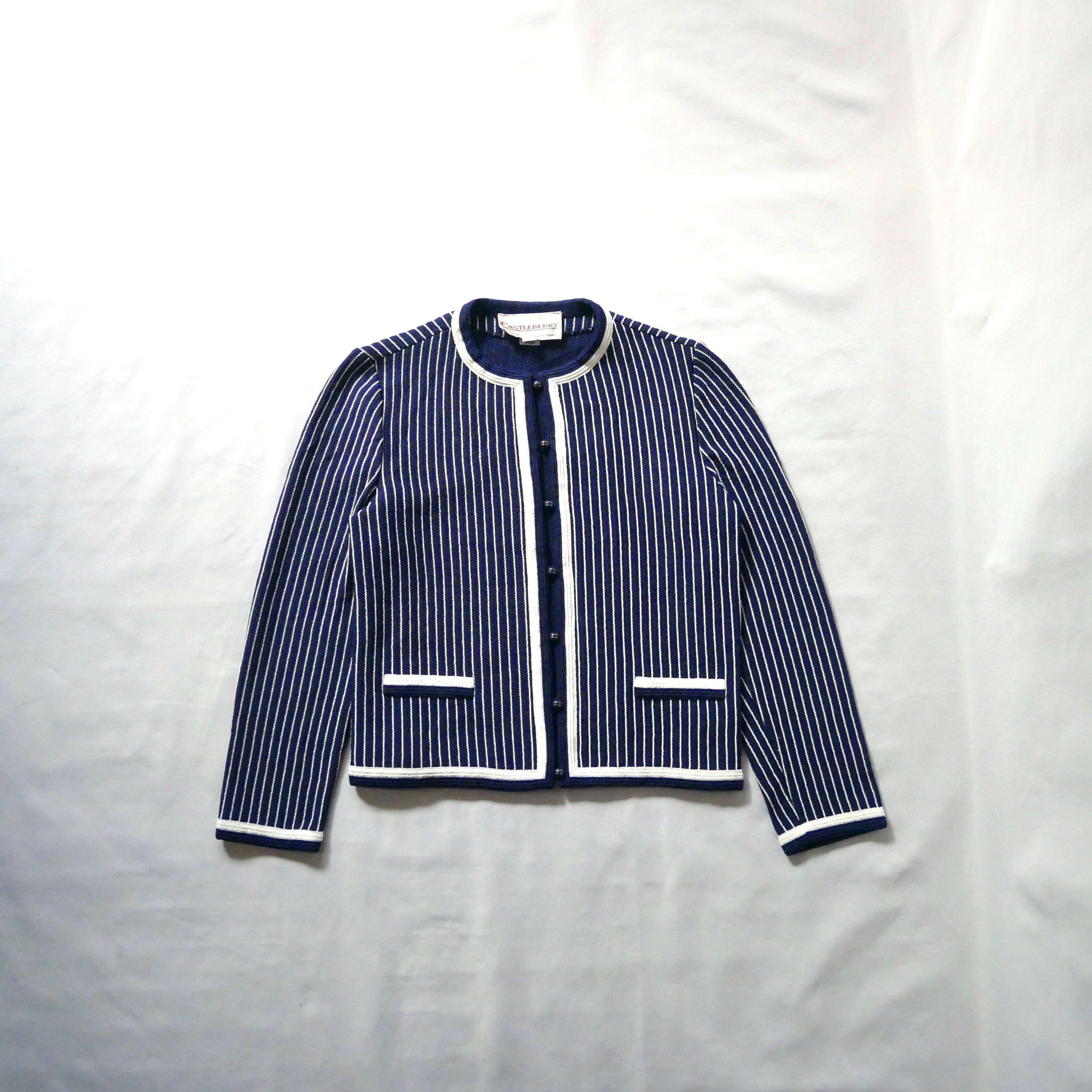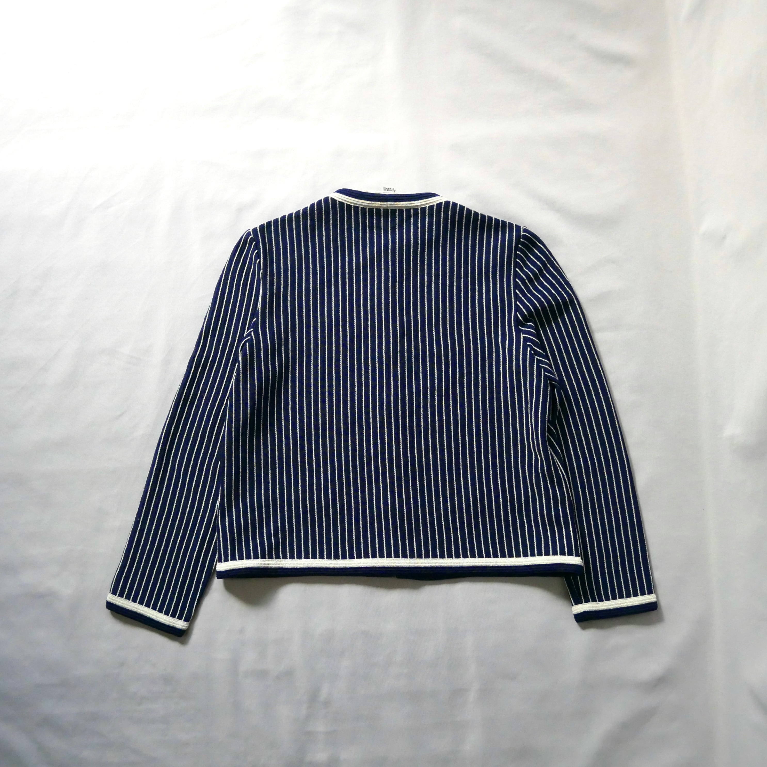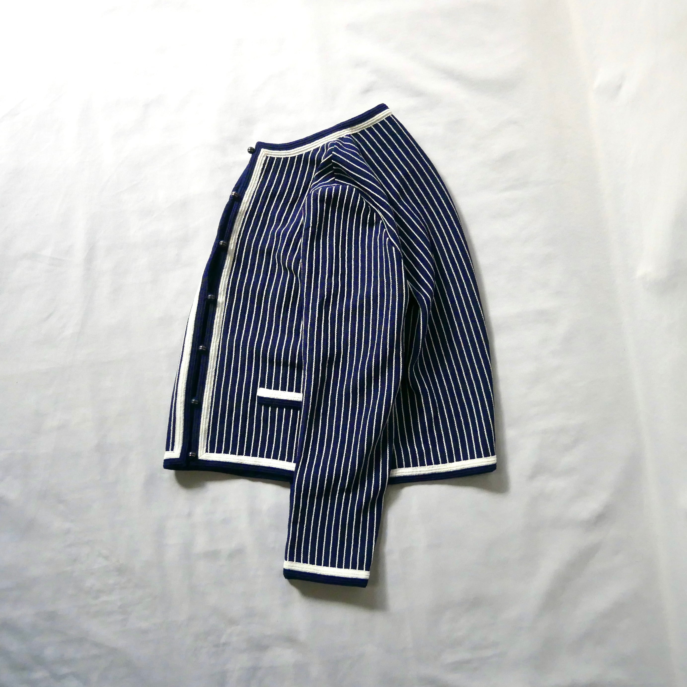 80s vintage madein USA navy white stripe jacket 80年代 ヴィンテージ アメリカ製 ネイビー白 ストライプ ノーカラージャケット