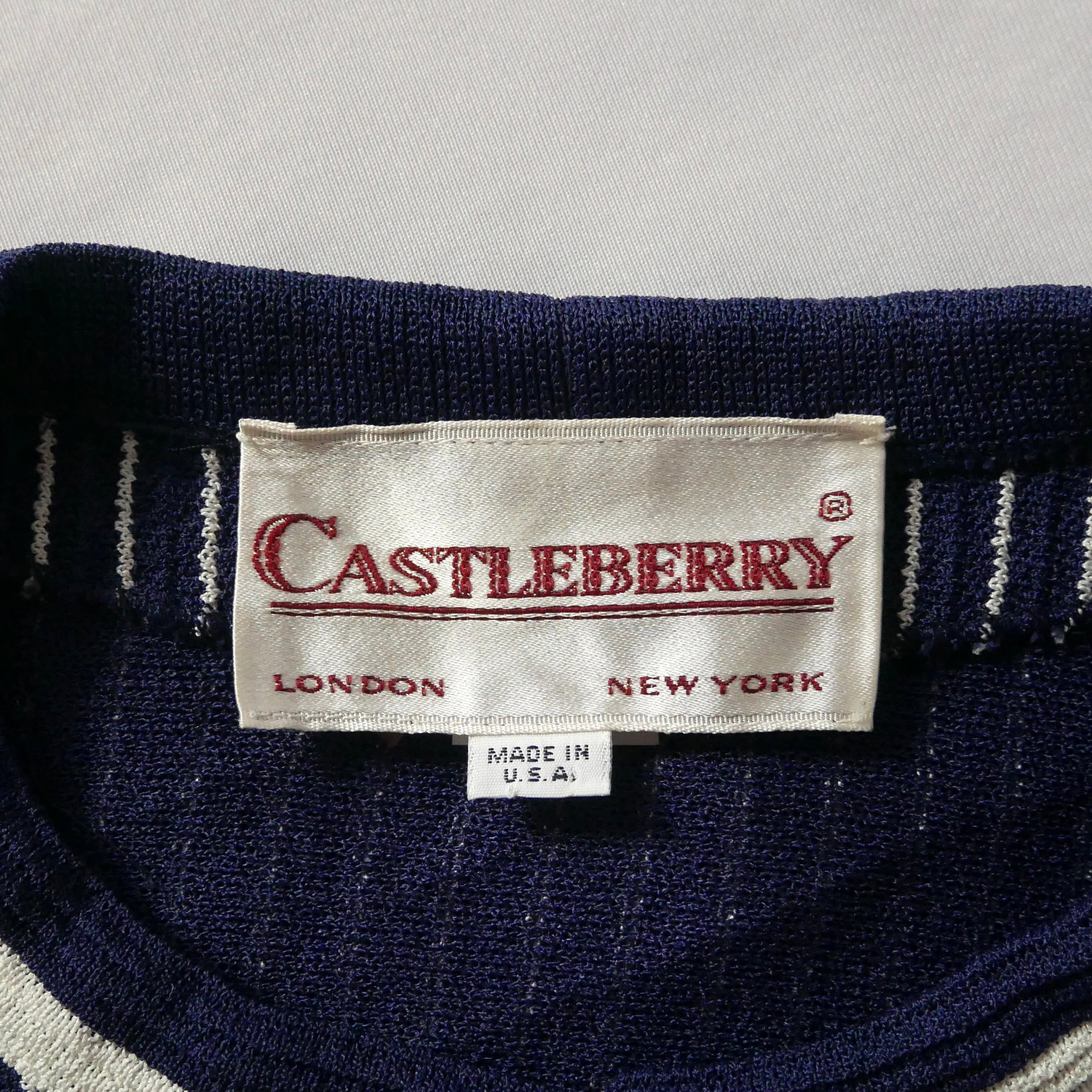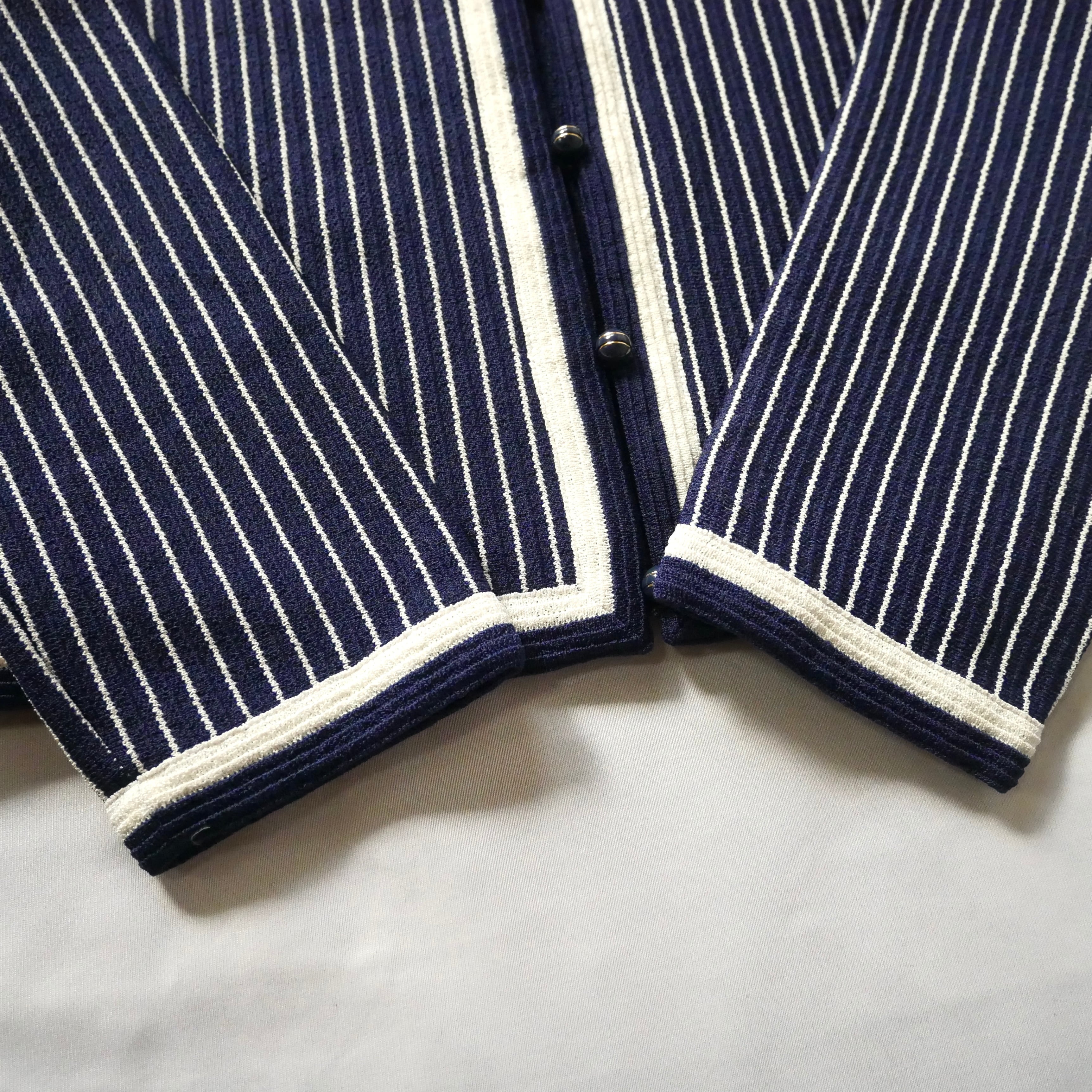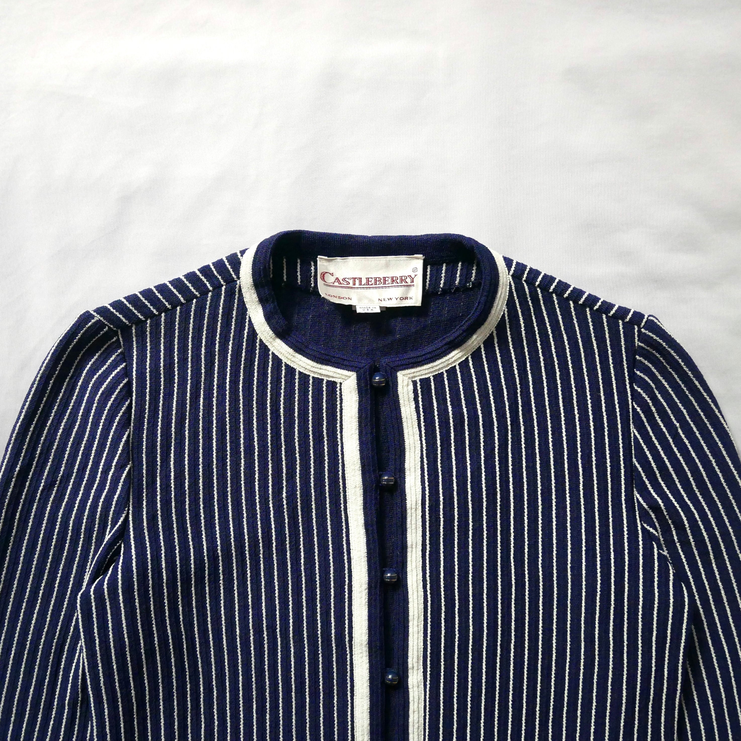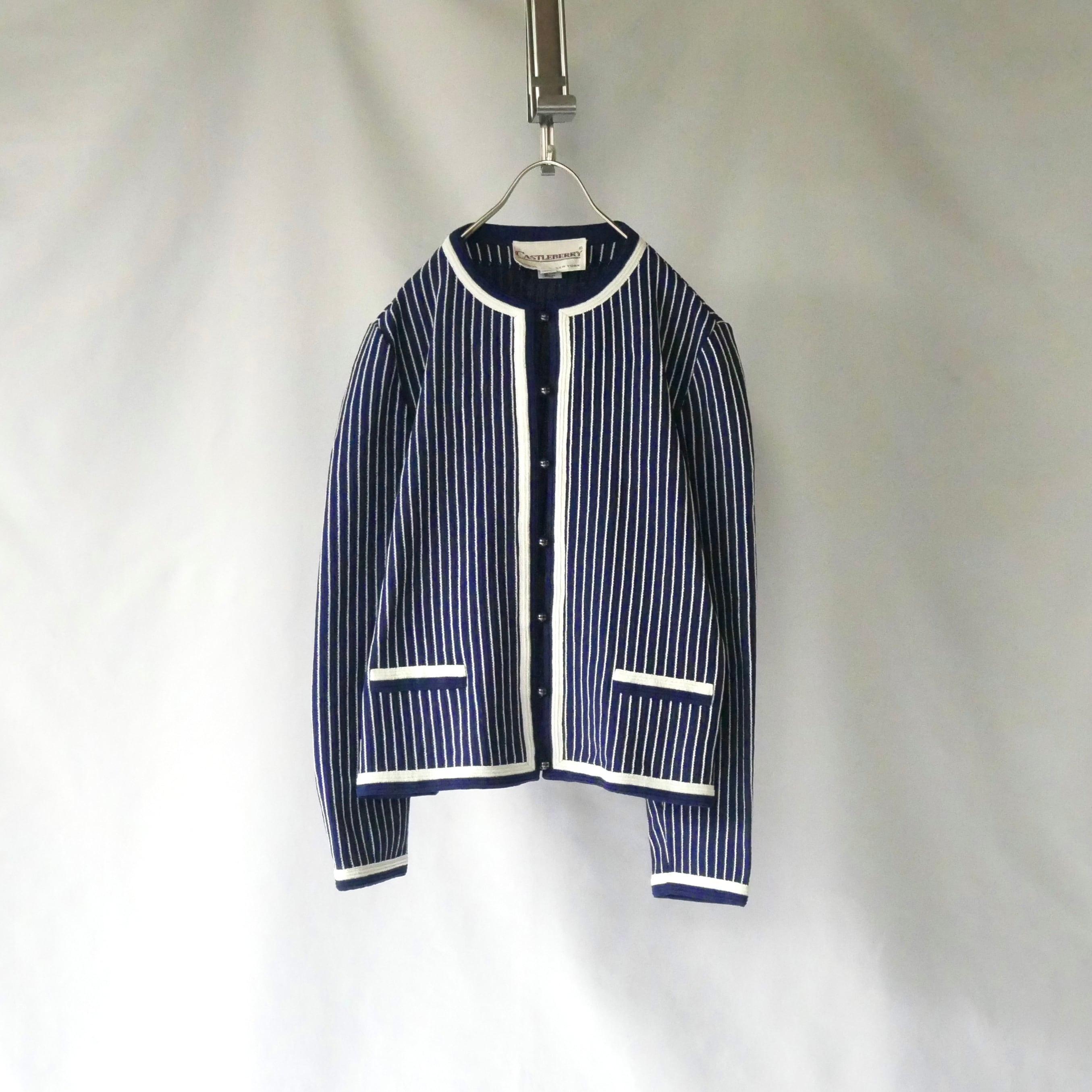 80s vintage madein USA navy white stripe jacket 80年代 ヴィンテージ アメリカ製 ネイビー白 ストライプ ノーカラージャケット