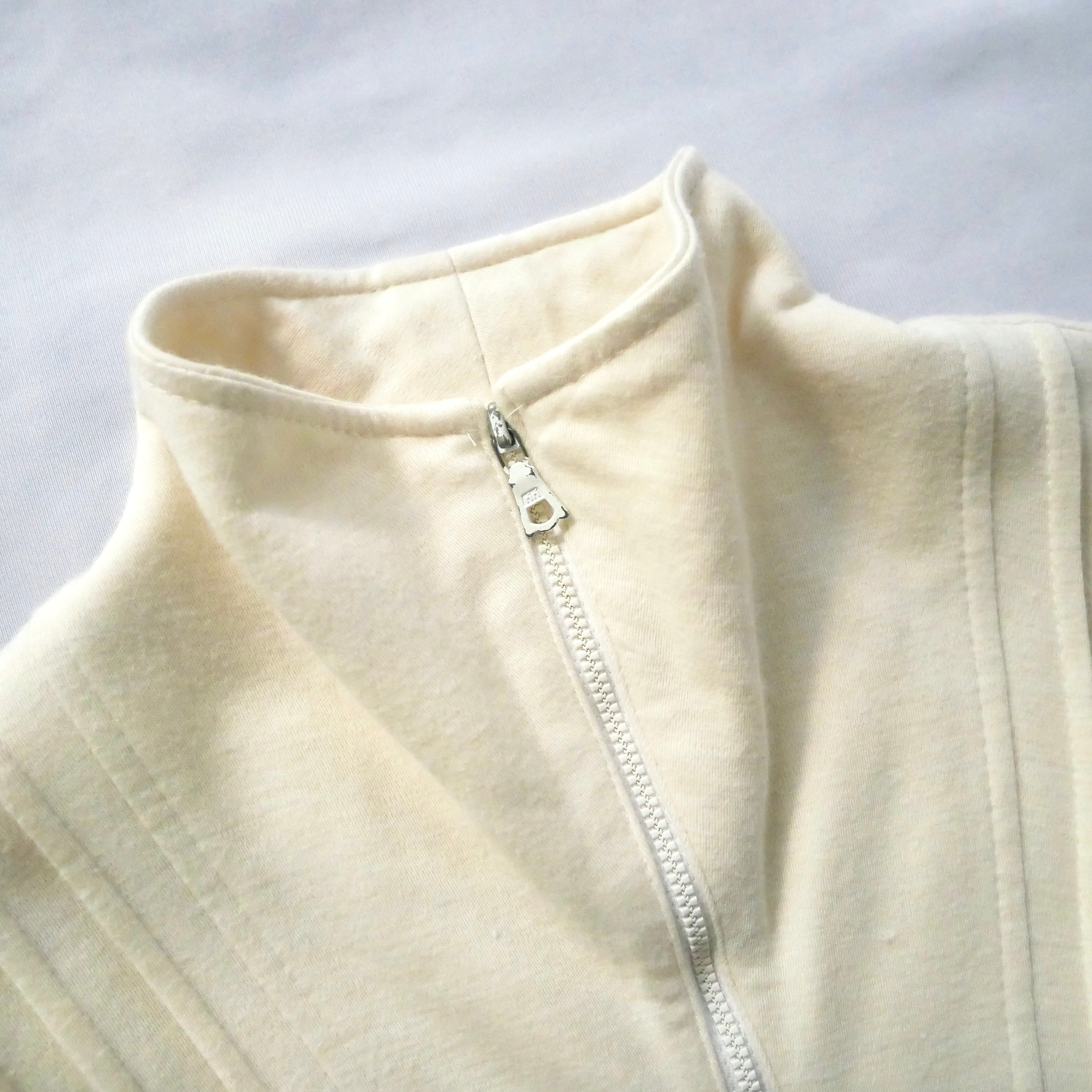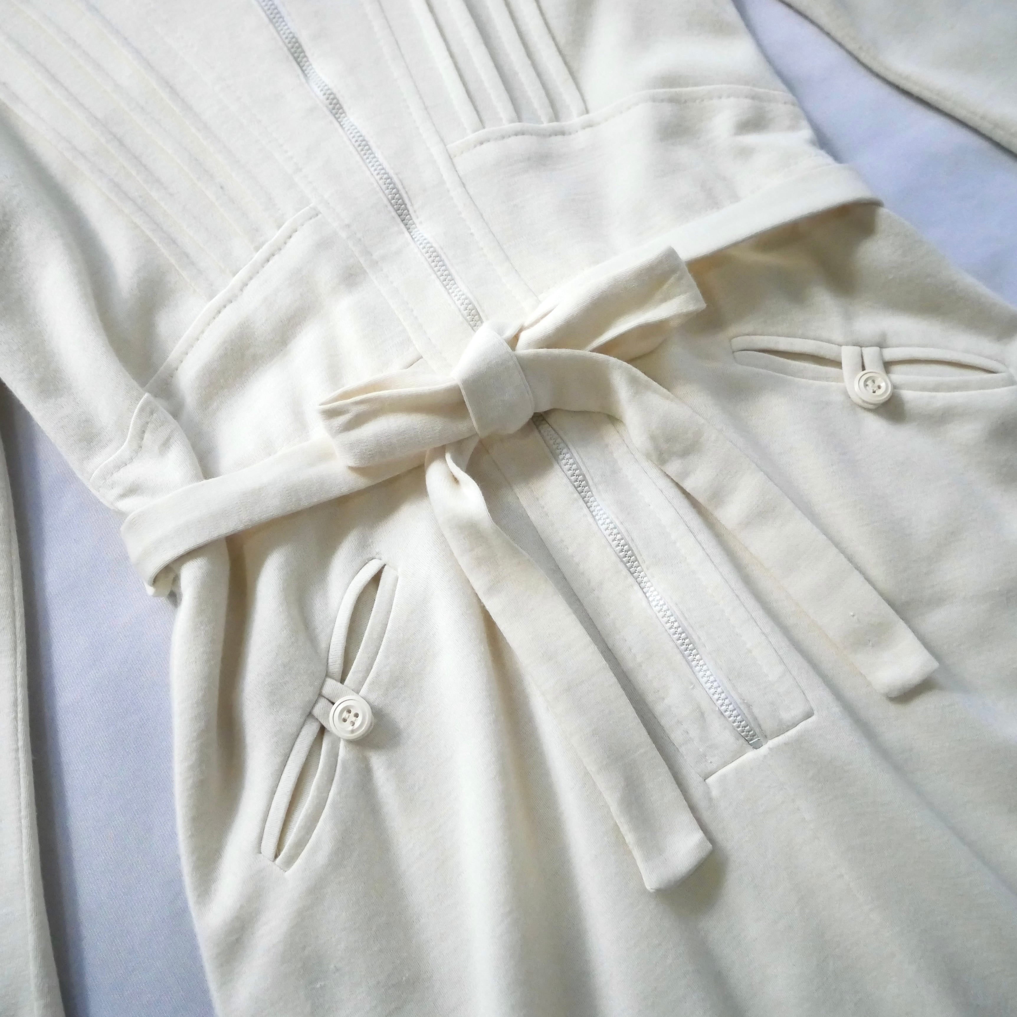 柔らかなカットソー地に胸元のタックやポケット、ジップデザインも素敵なヴィンテージワンピースです。