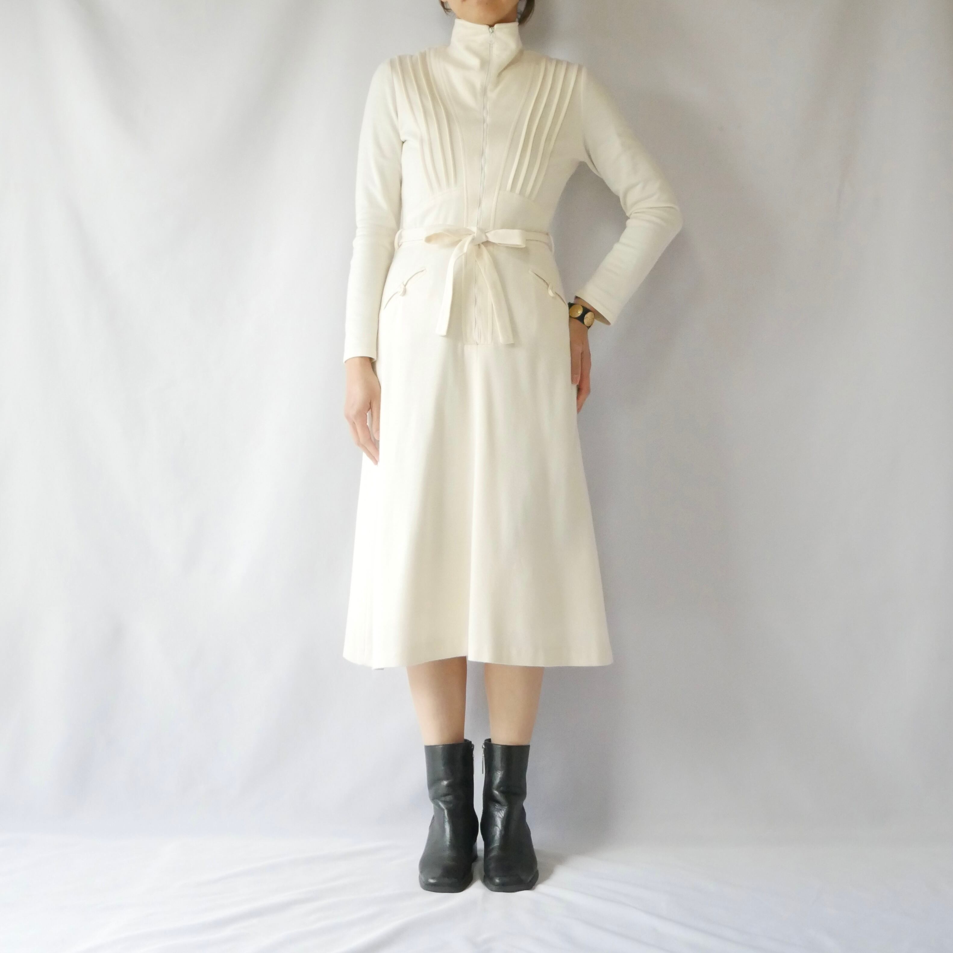 70s vintage betty barclay ivory onepiece 70年代 ヴィンテージ ベディバークレー アイボリー カットソーワンピース