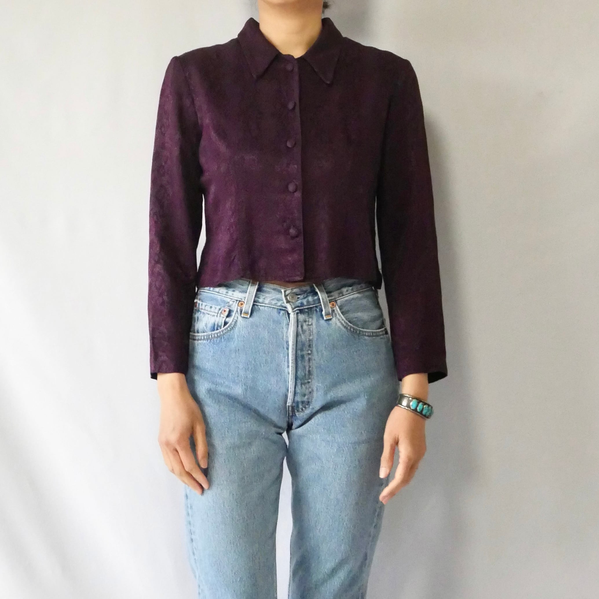 90s vintage back slit darkpurple shirt tops 90年代 ヴィンテージ バックスリット ダークパープル シャツトップス