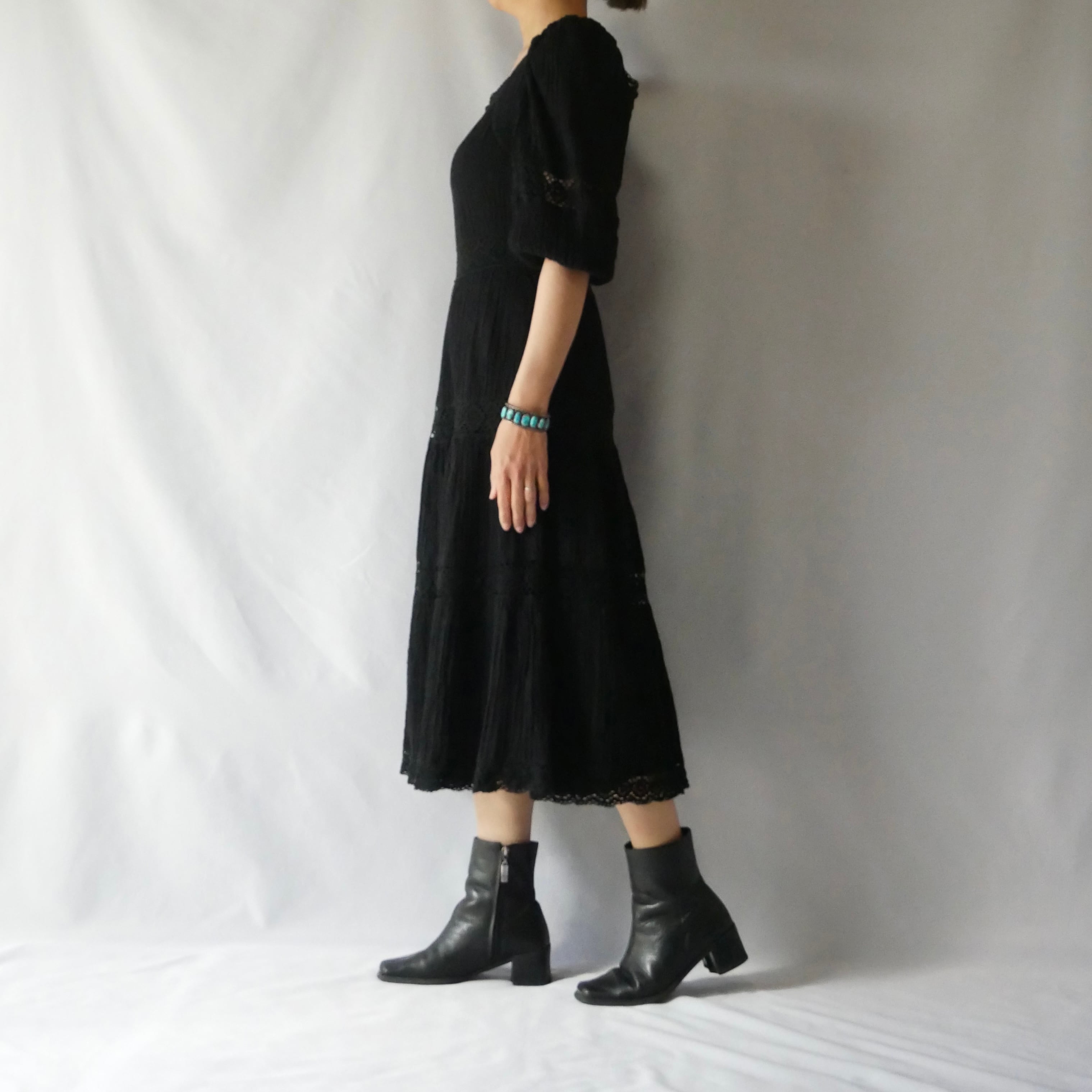 Euro vintage black crochet onepiece ユーロヴィンテージ 黒 ガーゼ 鍵編み ロングワンピース