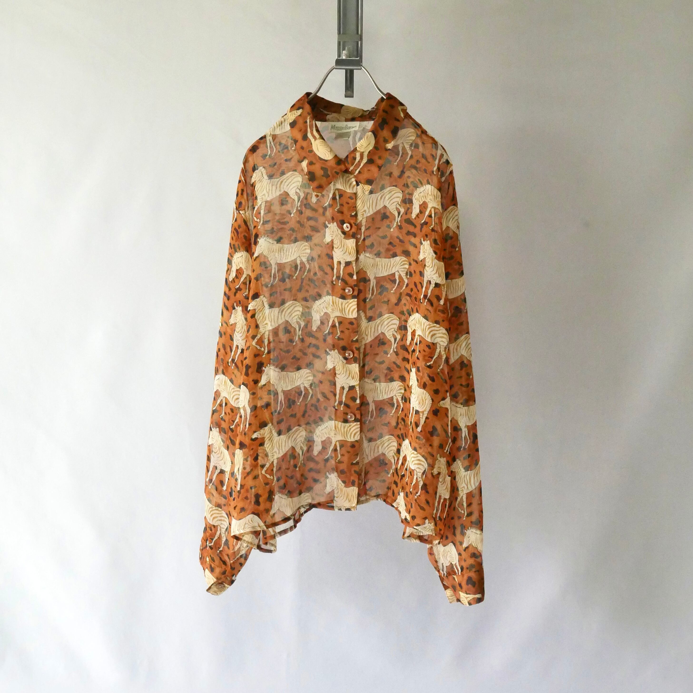 Vintage zebra&leopard pattern sheer shirt ゼブラ ヒョウ柄 ポリエステル シアーシャツ