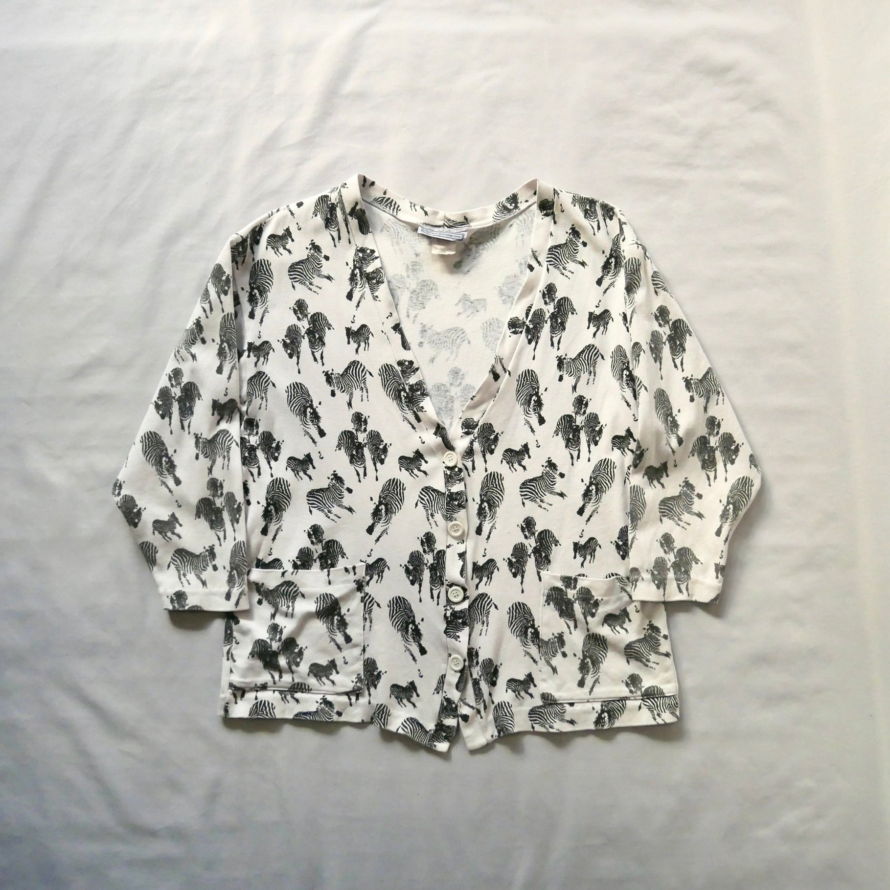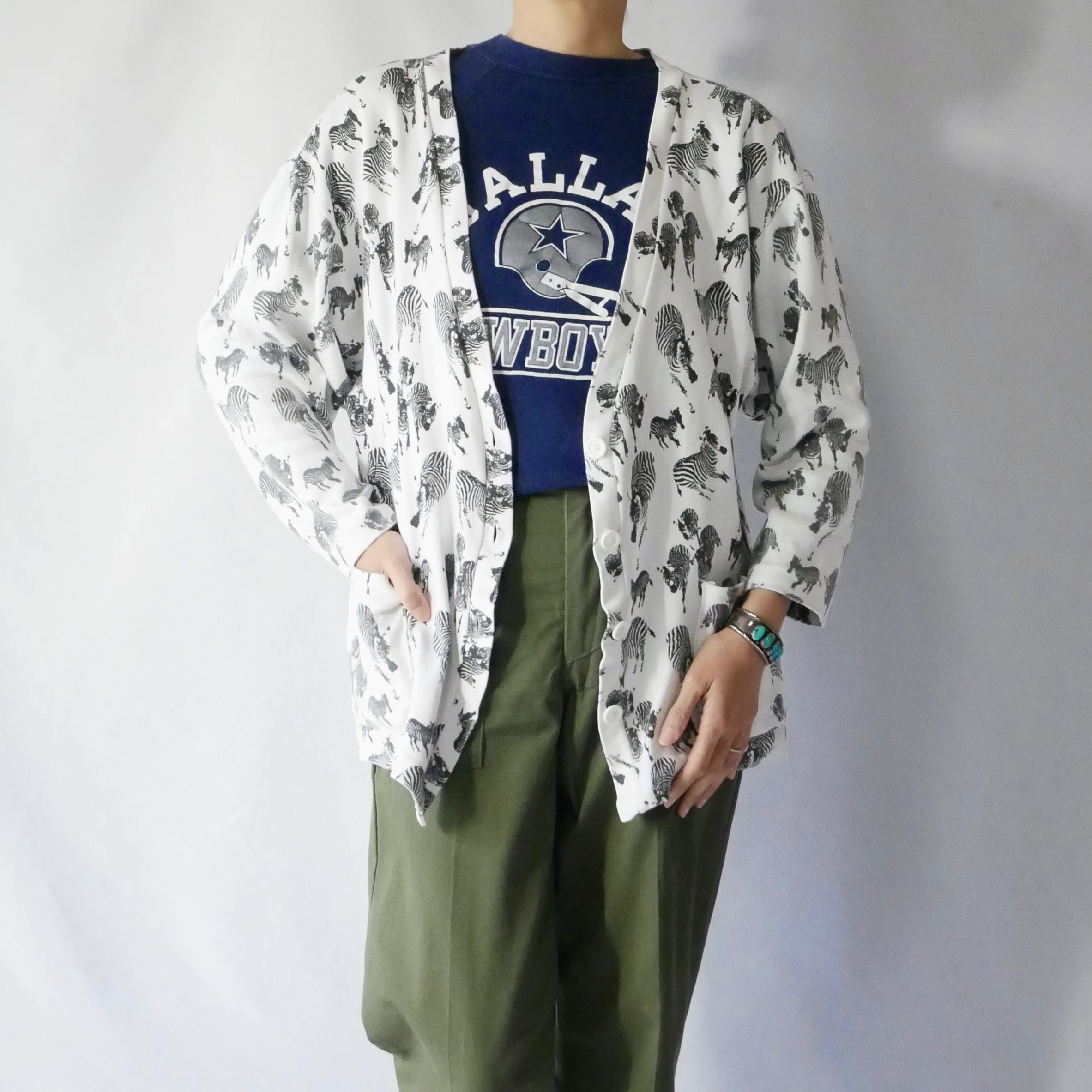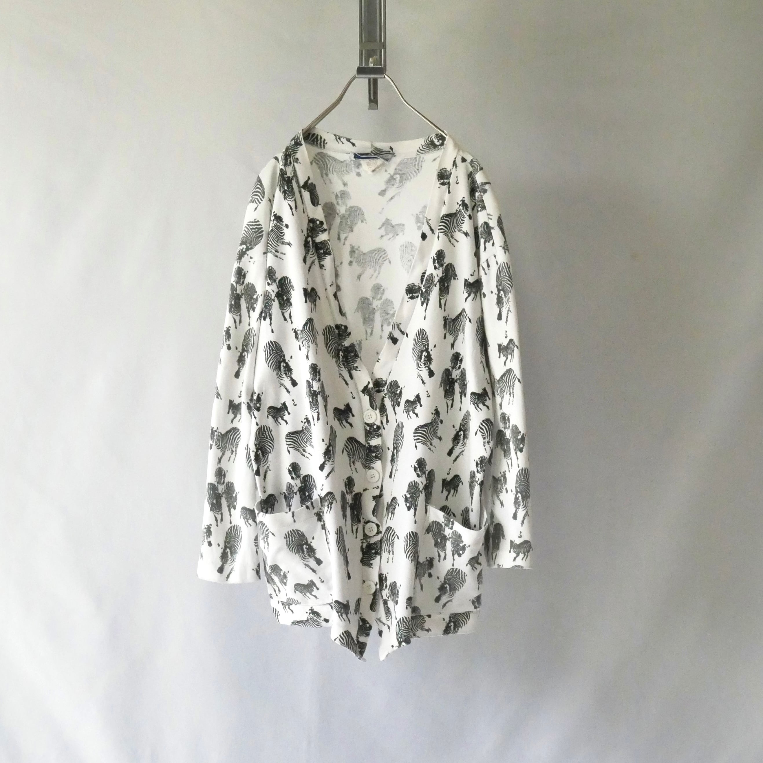 80s vintage madein USA zebra sweat cardigan 80年代 USA製 しまうま 総柄 スウェットカーディガン