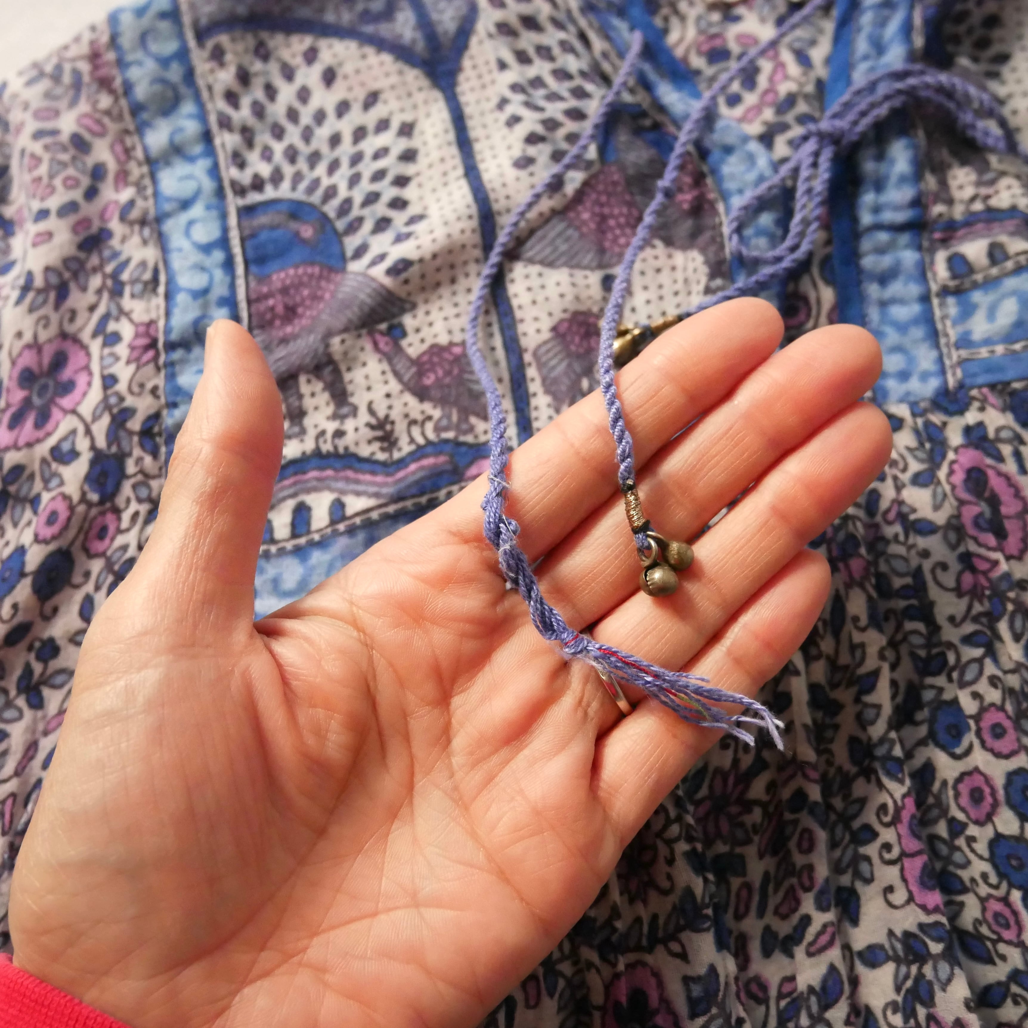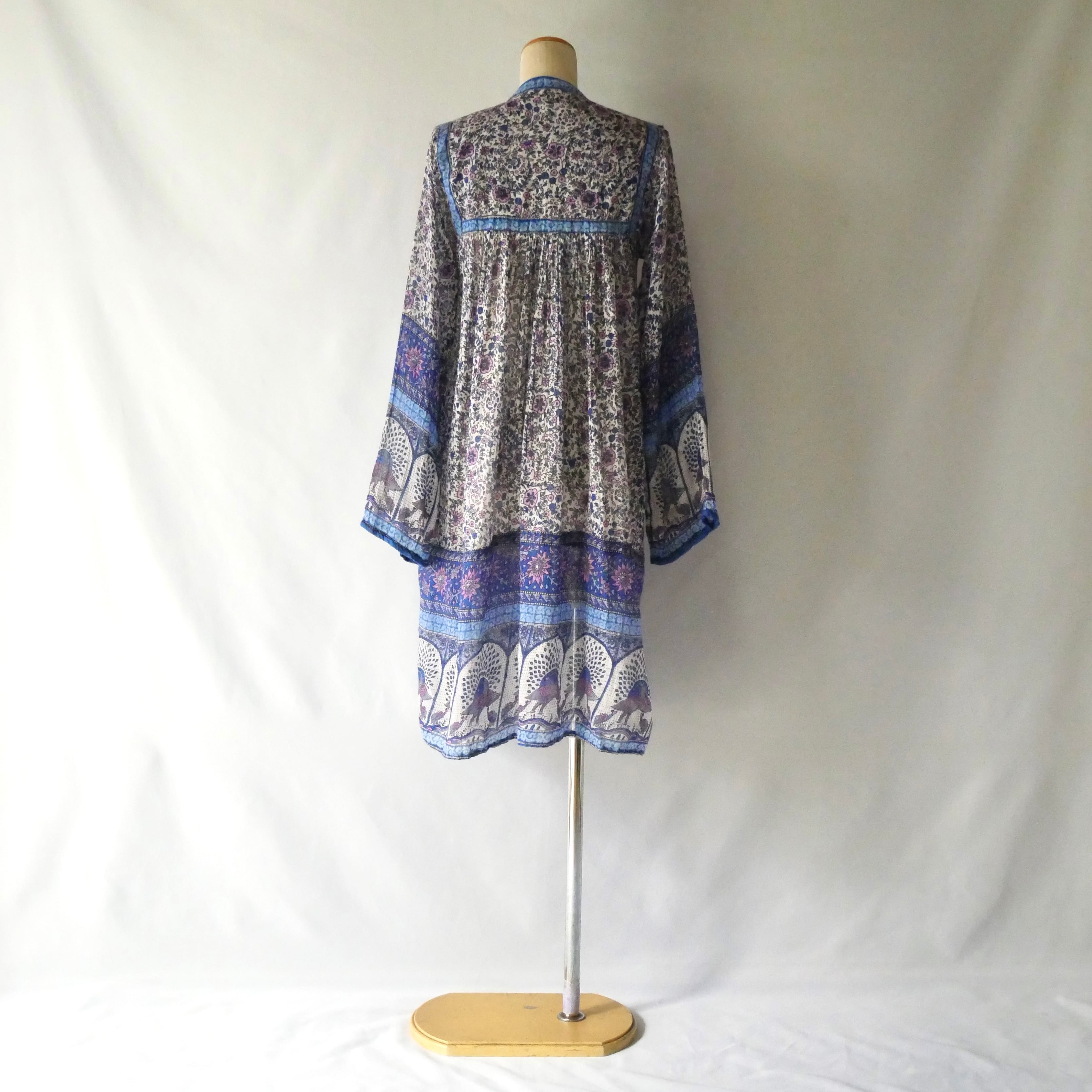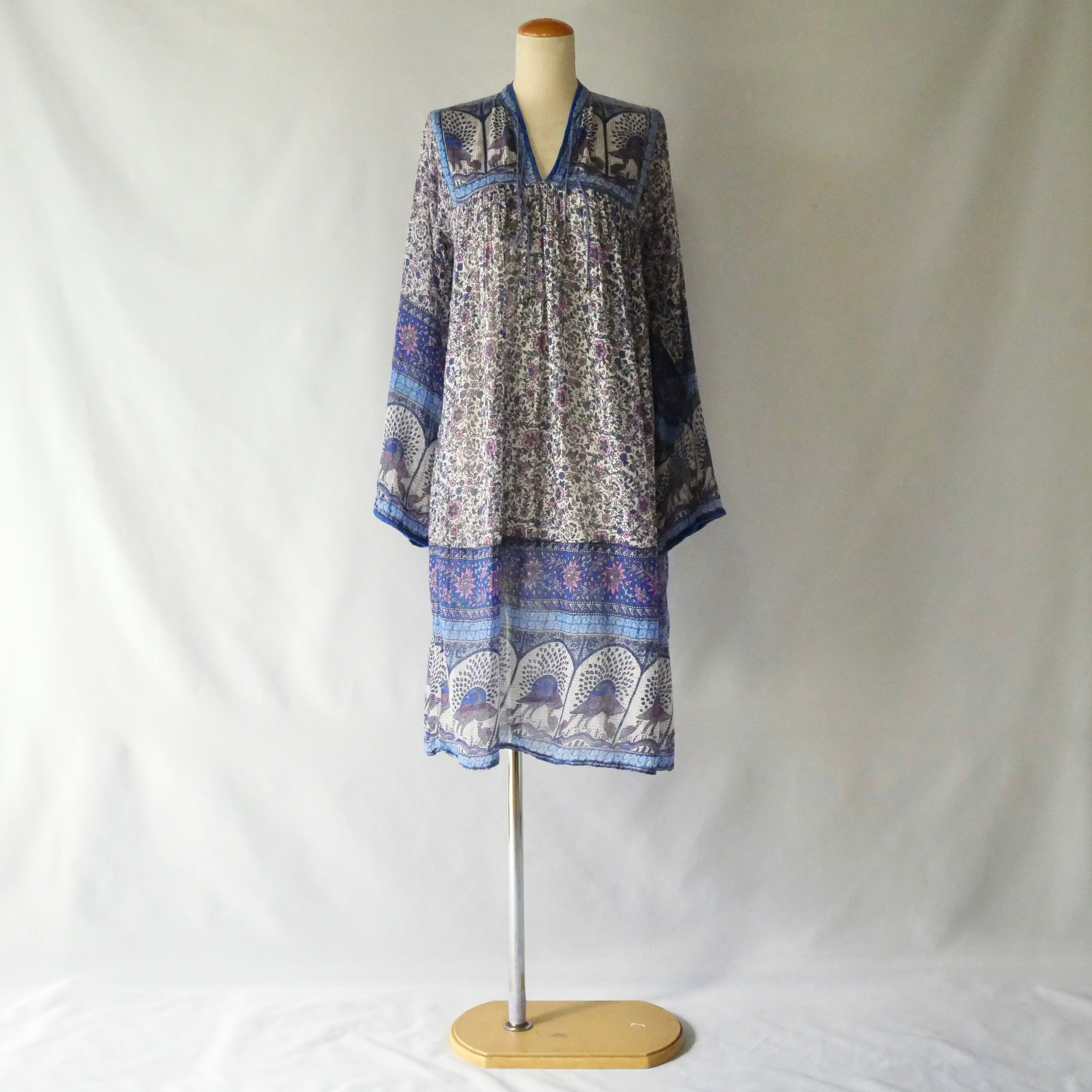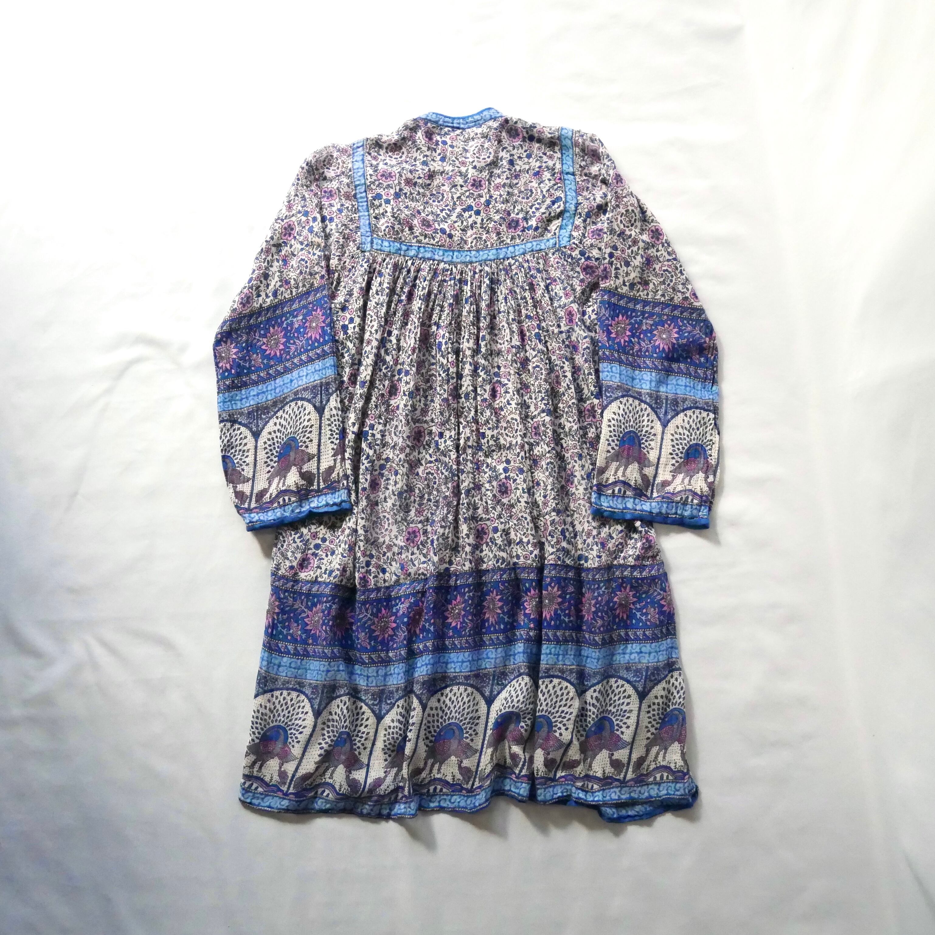 70s vintage madein India dress 70年代 ヴィンテージ インド綿 ブルー パープル 孔雀 ワンピース