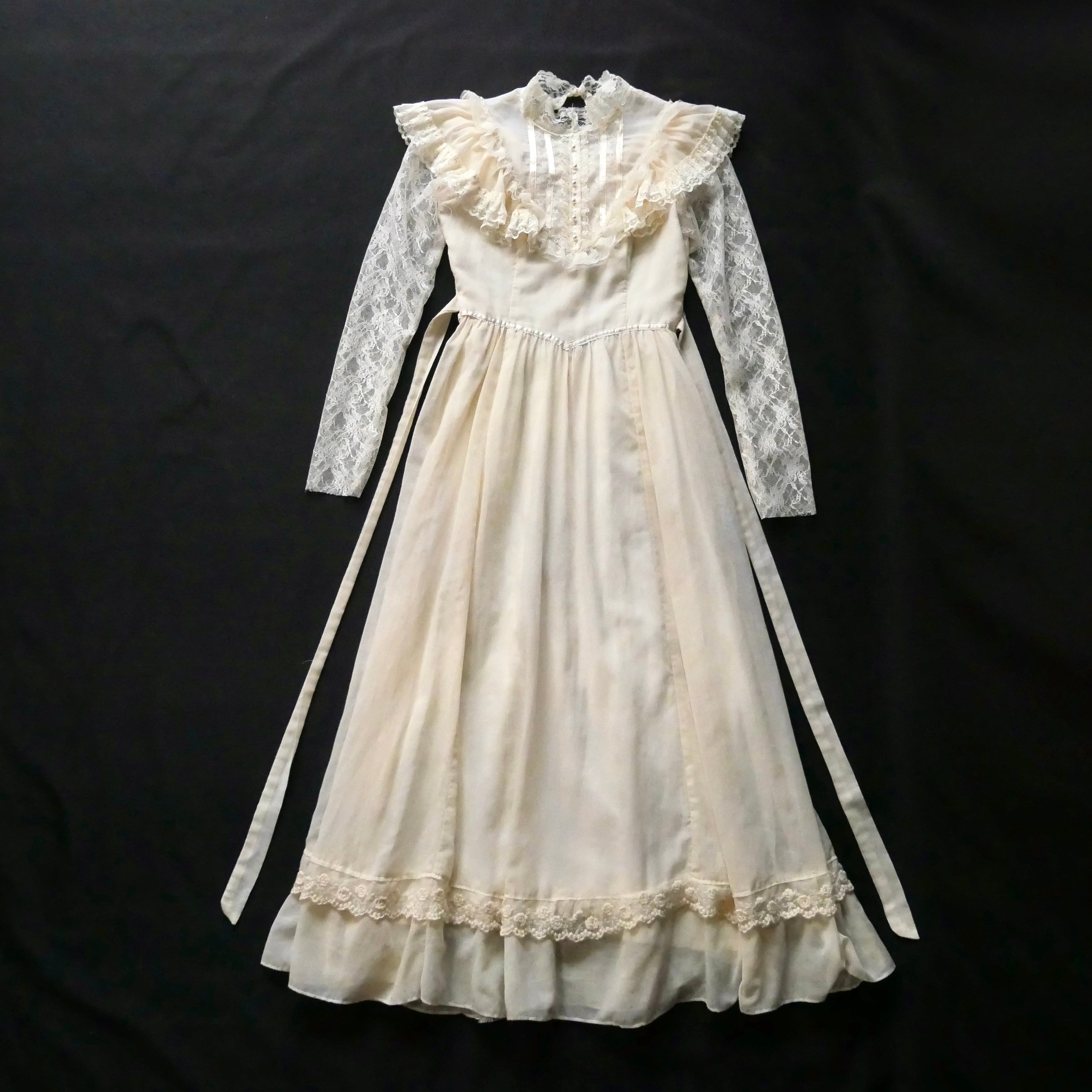 70s vintage madein USA gunnesax ivory lace maxi dress 70年代 ガニーサックス アイボリー レース マキシドレス
