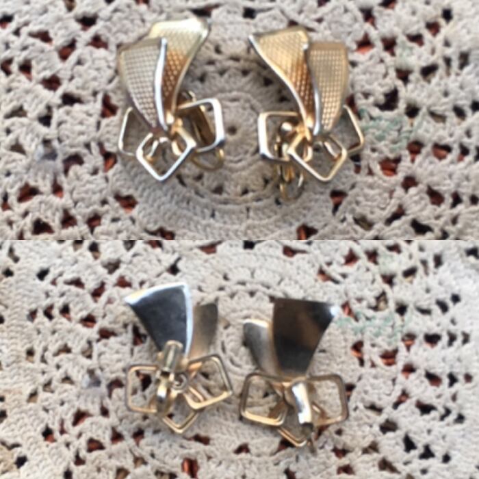 ゴールドの四角にリボンがついたようなデザインが可愛いEMMONSのイヤリングです。
