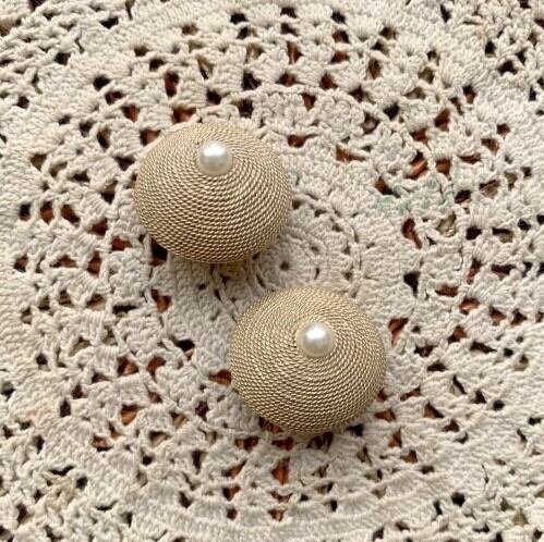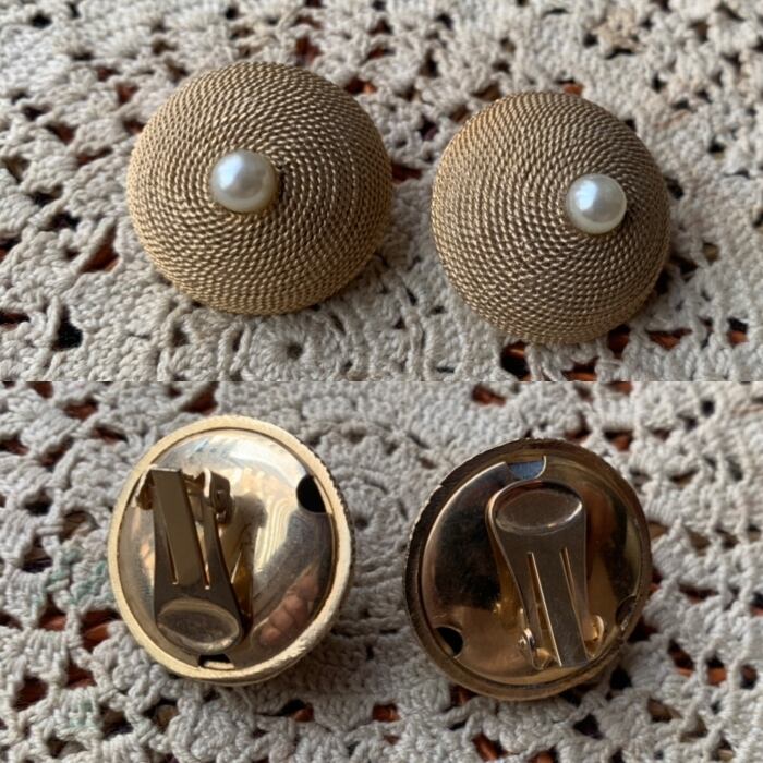 ゴールドの山のような形のてっぺんにパールビーズが付いたイヤリングです。