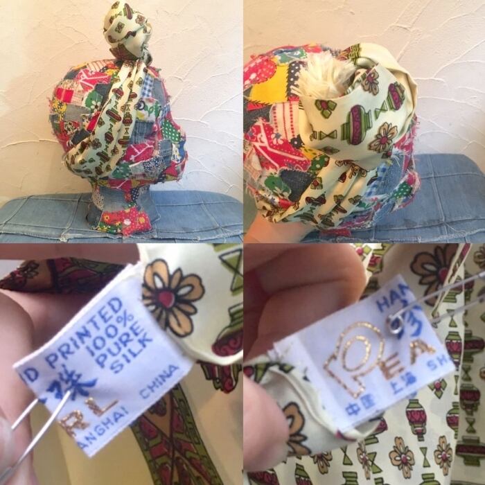 シルク100%!とても状態の良い水瓶柄のヴィンテージハンドプリント縦長スカーフです。