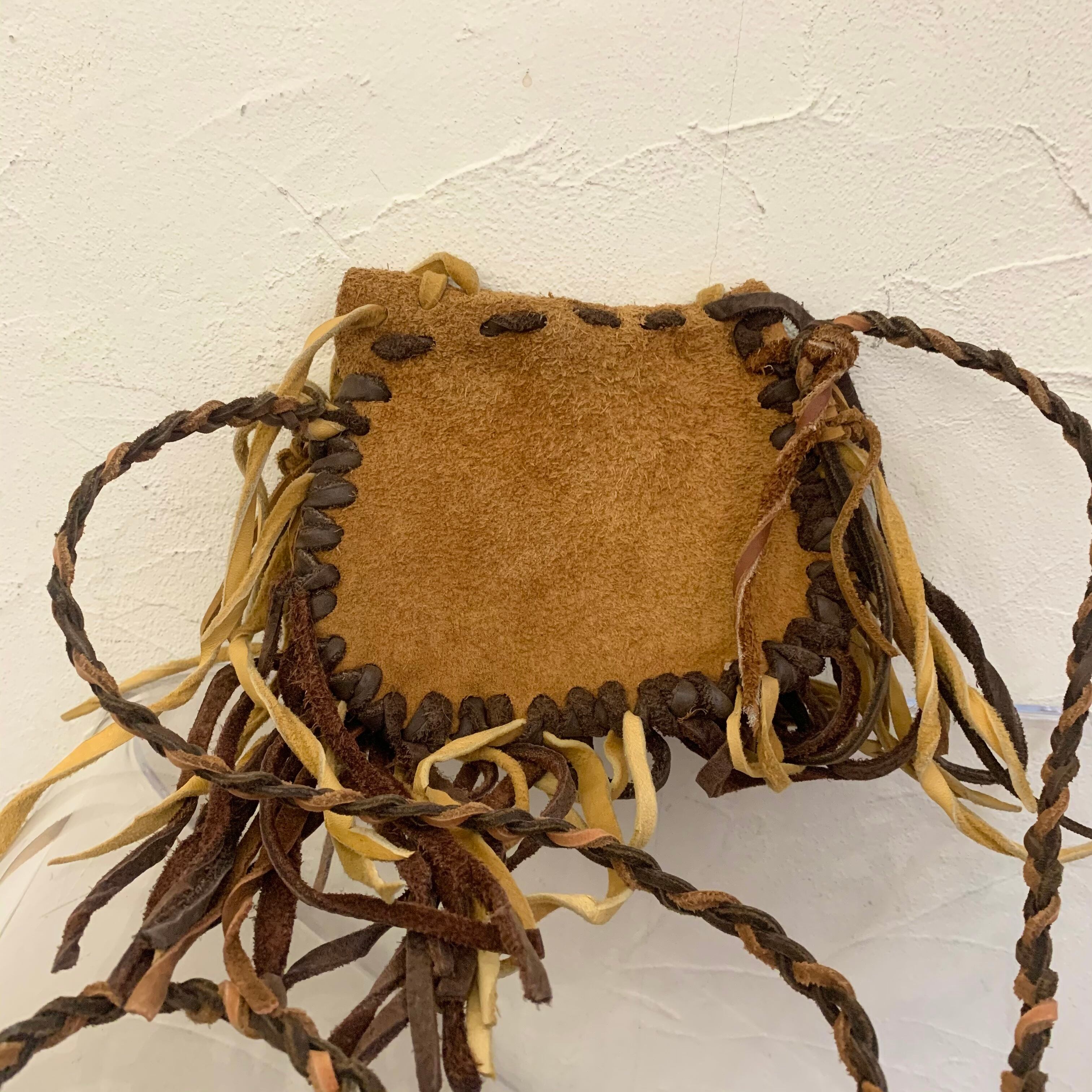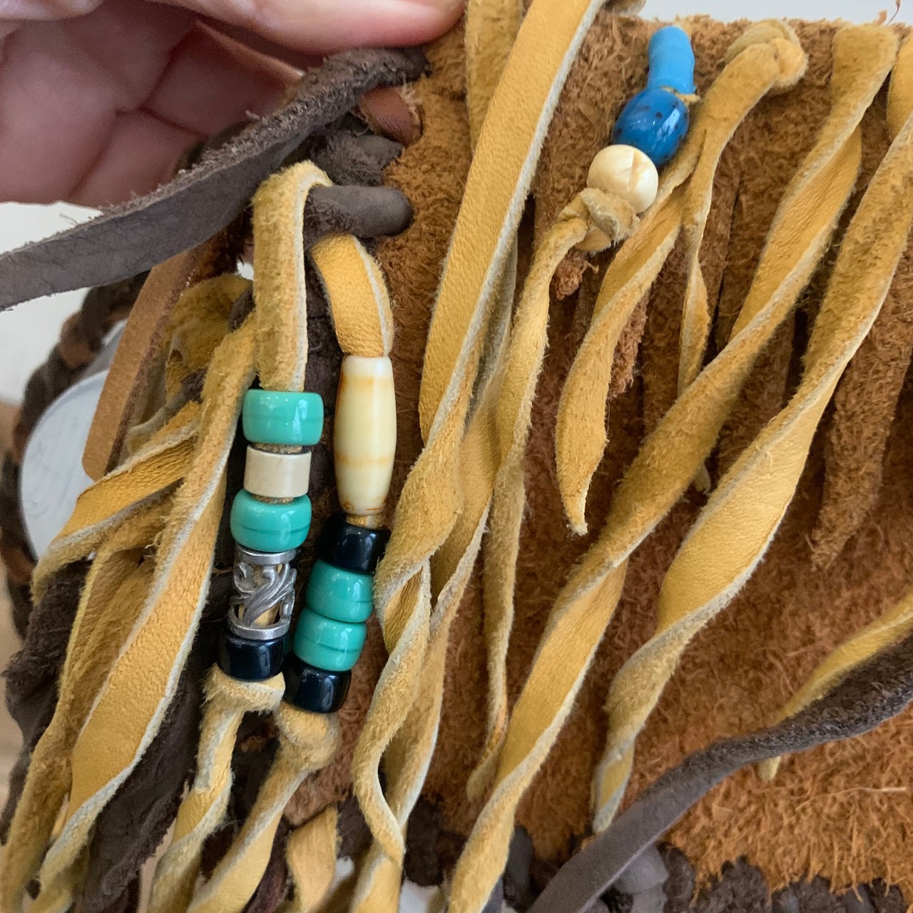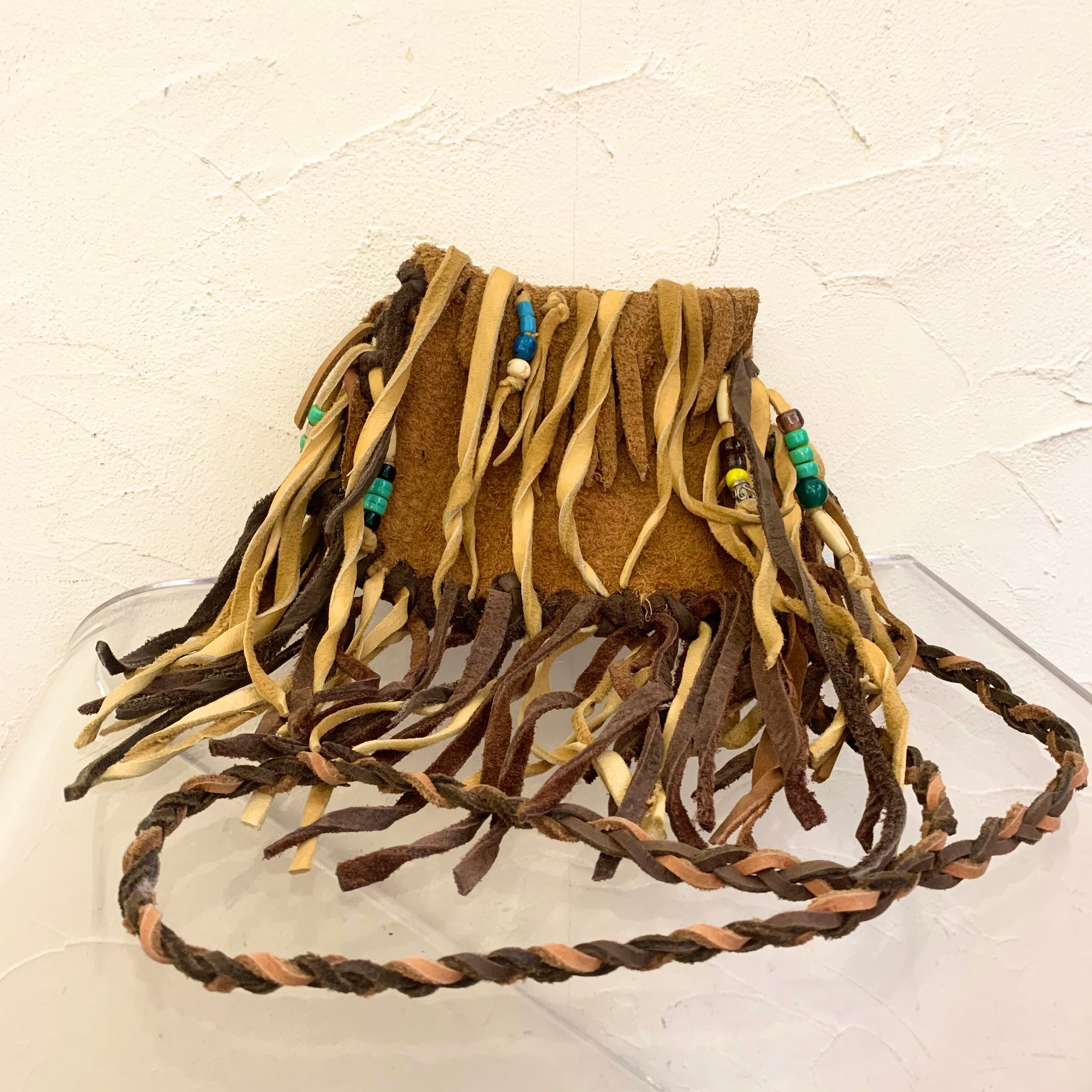 ビーズ付きボリュームフリンジが豪華なレザーポシェットです。