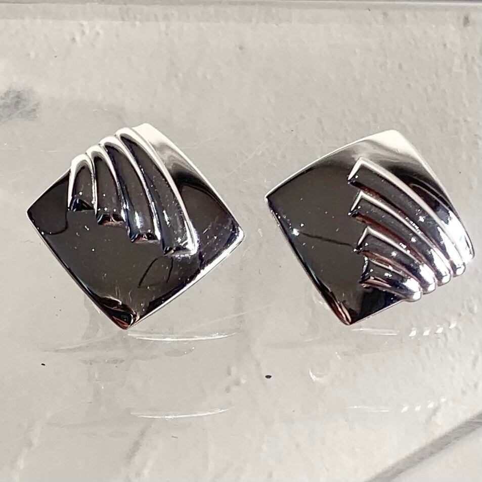 アメリカで名高いコスチュームジュエリーブランドMonet(モネ)の、四角型シルバー色vintageイヤリングです。