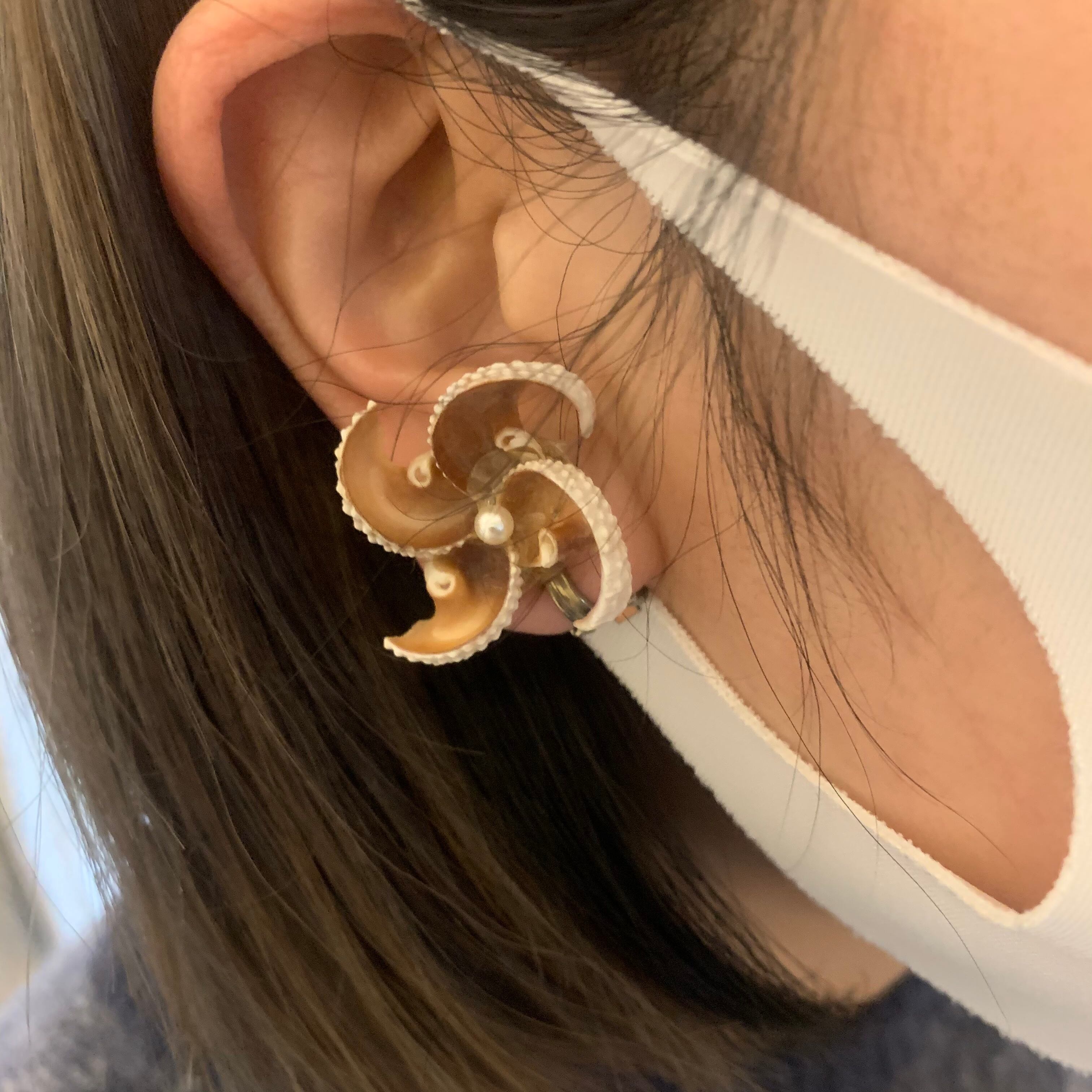 貝殻で出来た風車モチーフのビンテージイヤリングです。