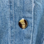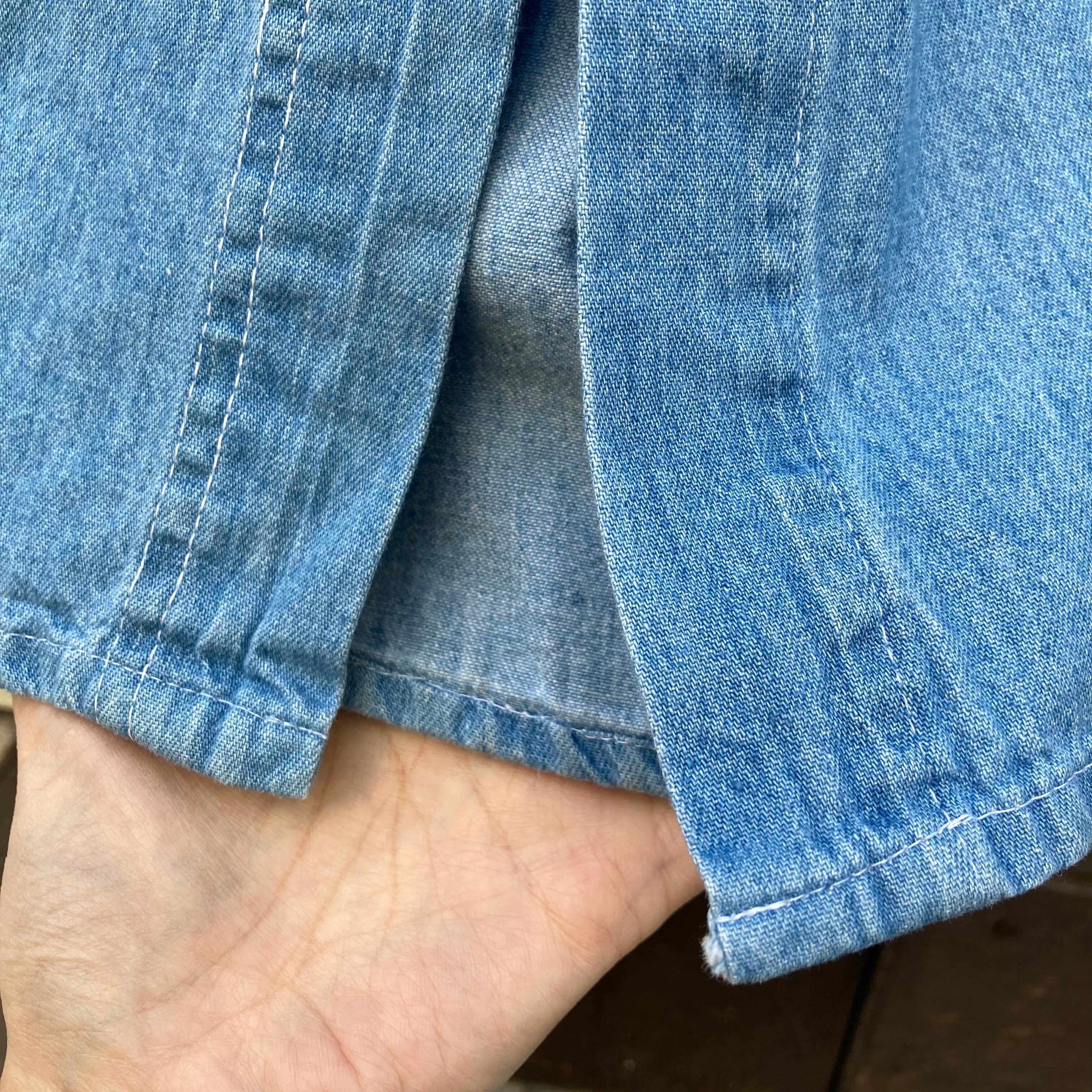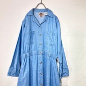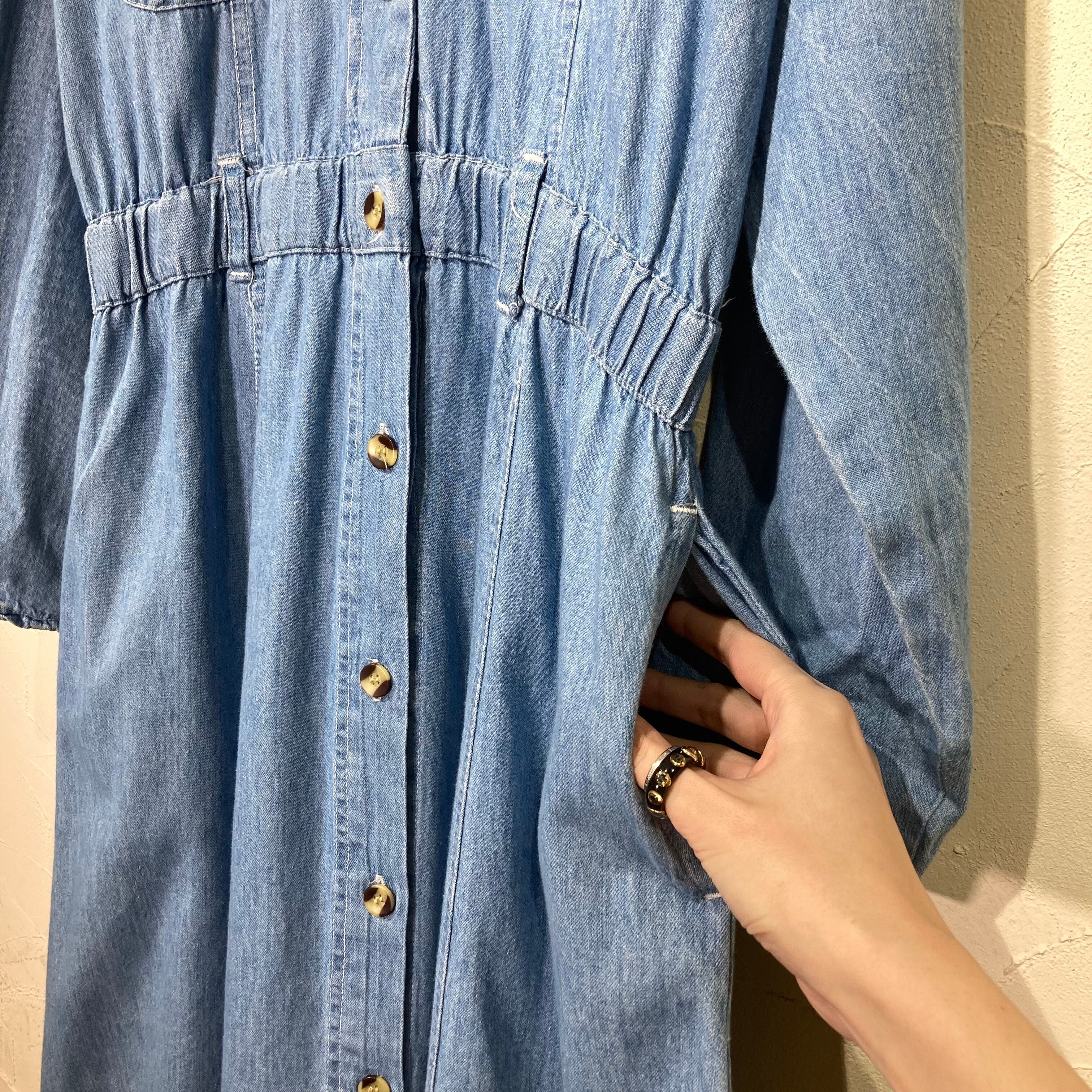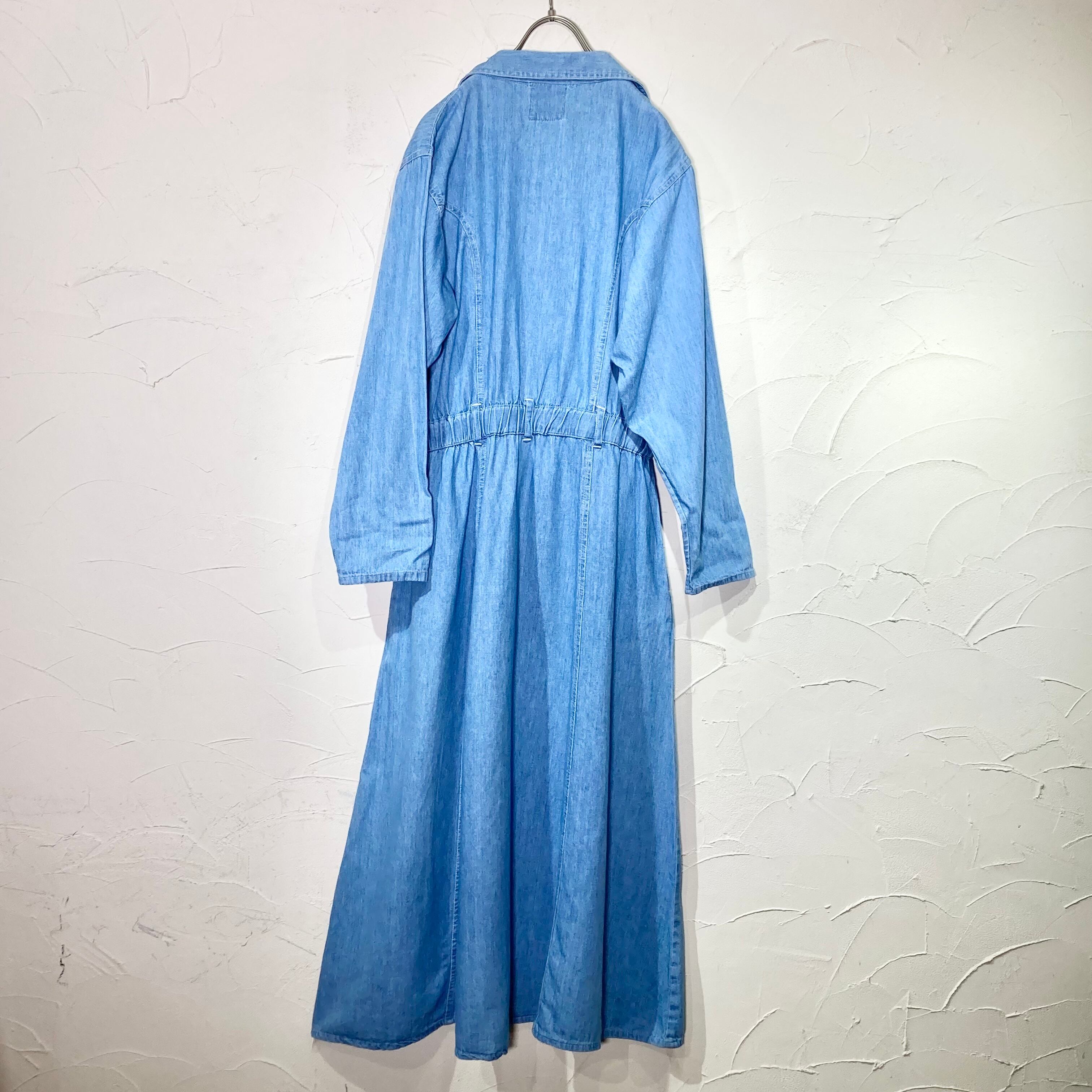 開襟デザインの前開きフレアシルエットがかわいいデニムワンピースです。ポケットつき。