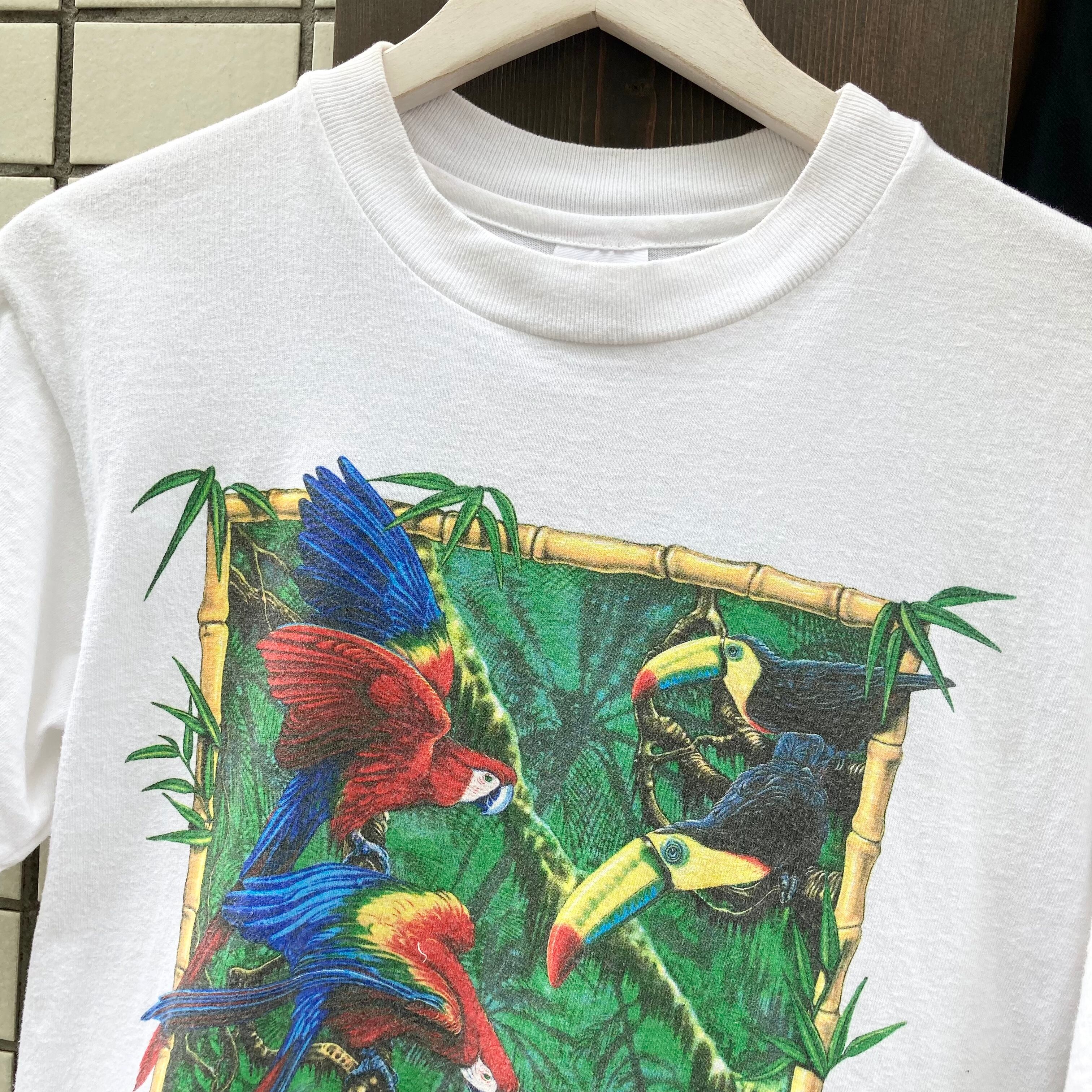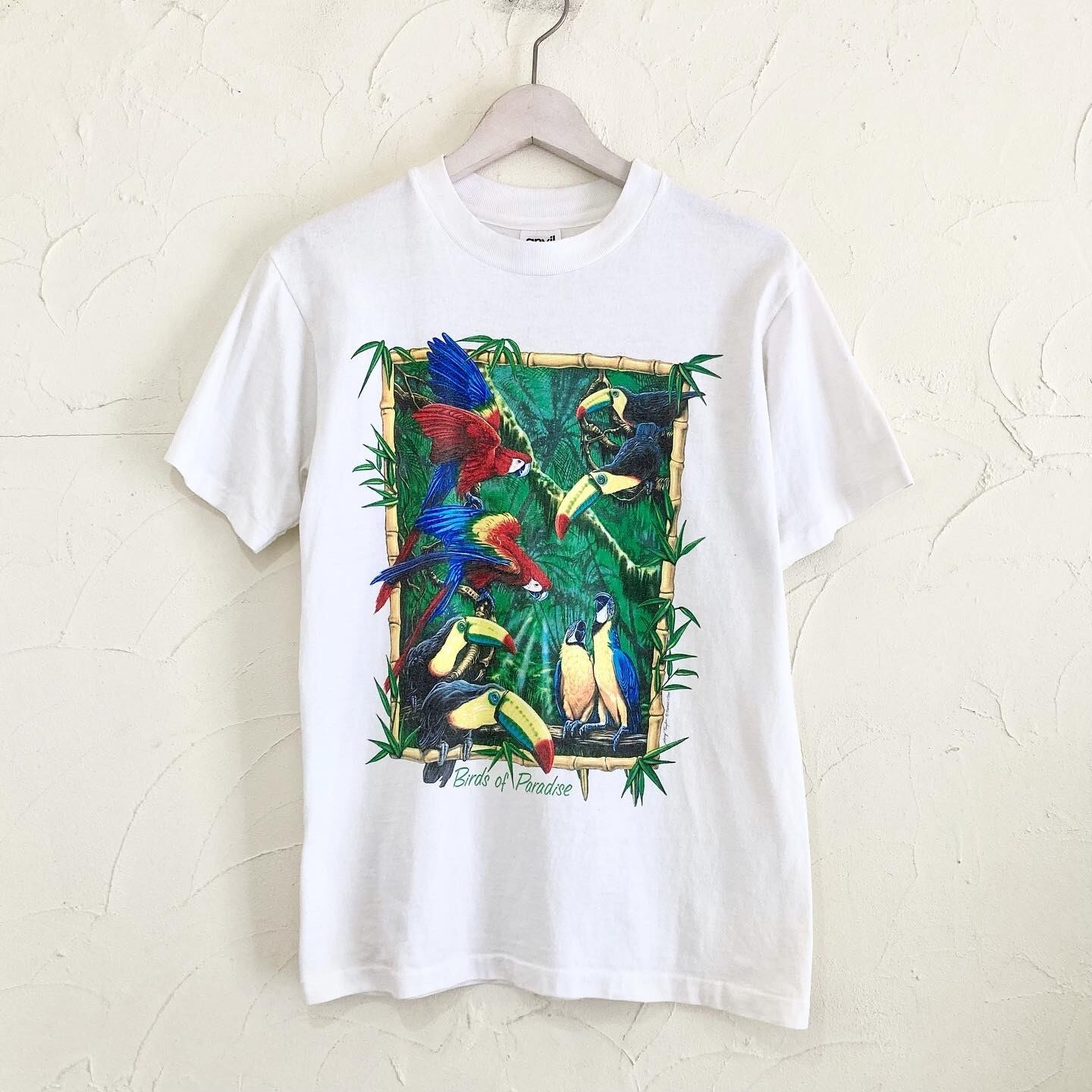 anvilボディー、環境問題などを啓発するHuman-i-Tees デザイン、南国の鳥たちが印象的なTシャツです。