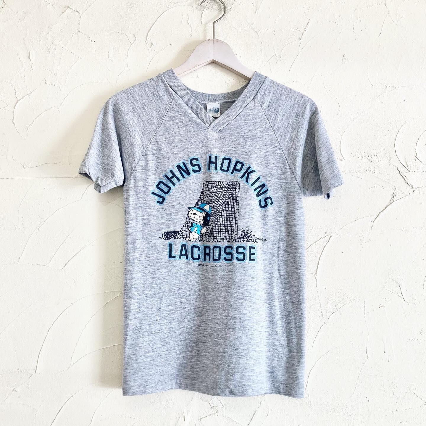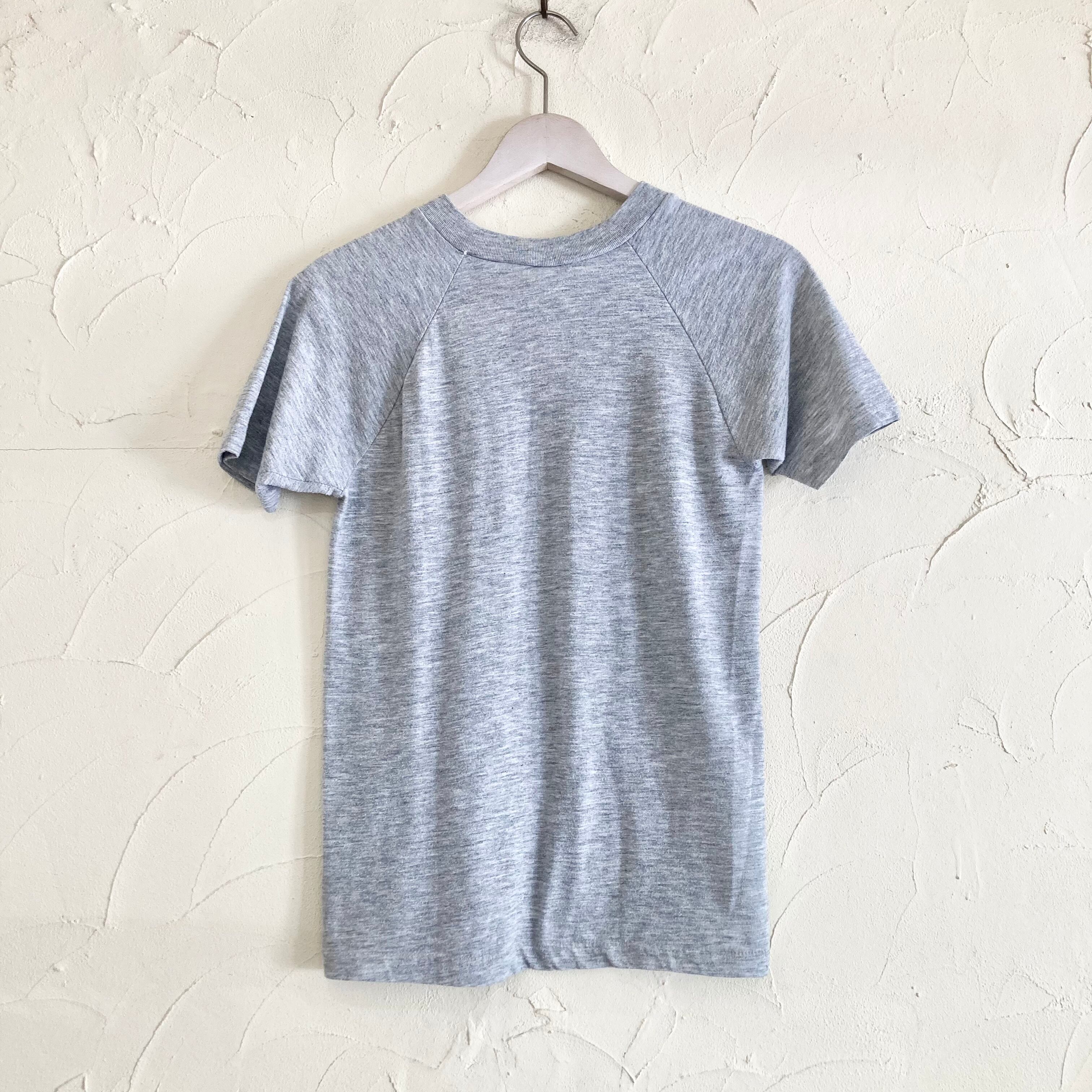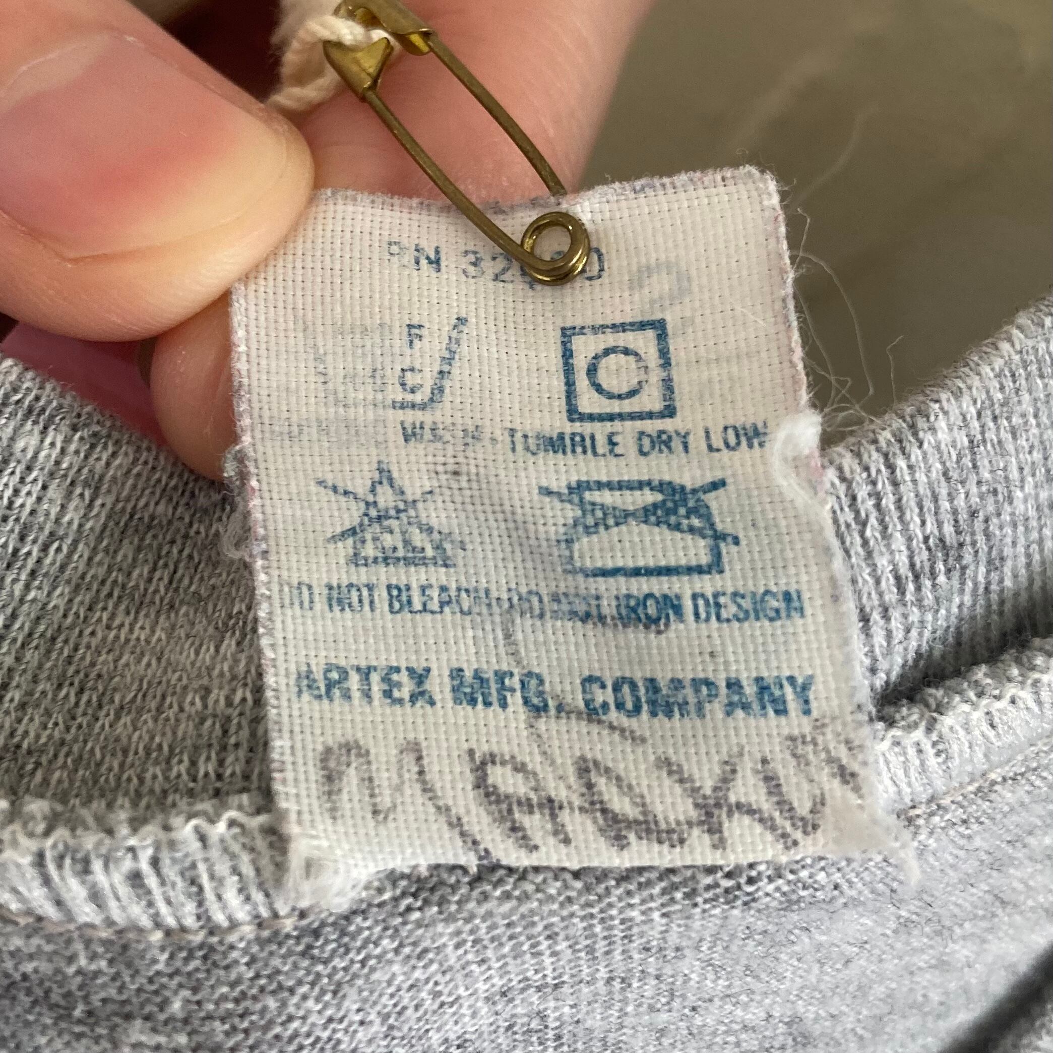 7,80年代ヴィンテージARTEXメンズSサイズ杢ライトグレーにスヌーピー×ロゴプリント入りのTシャツです。