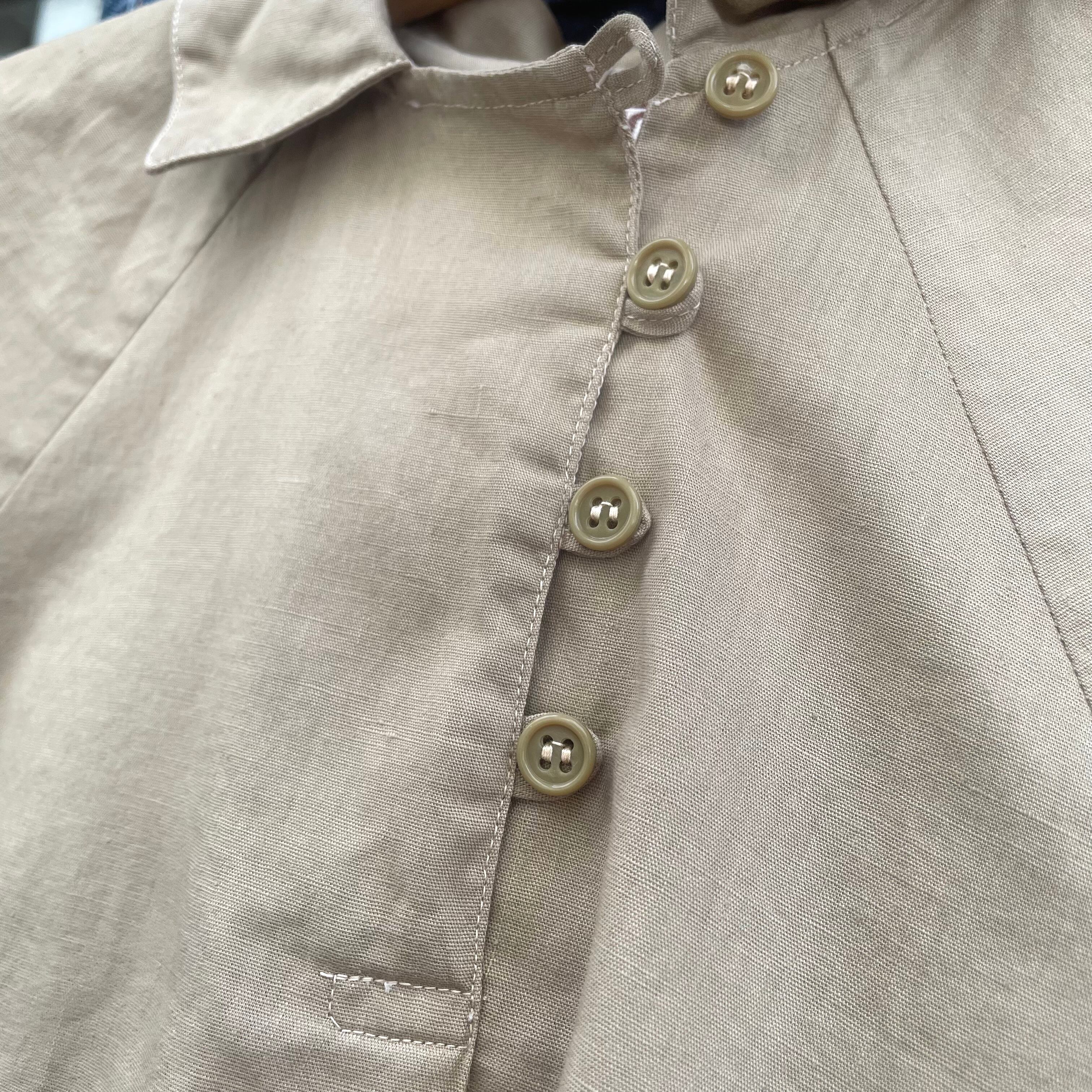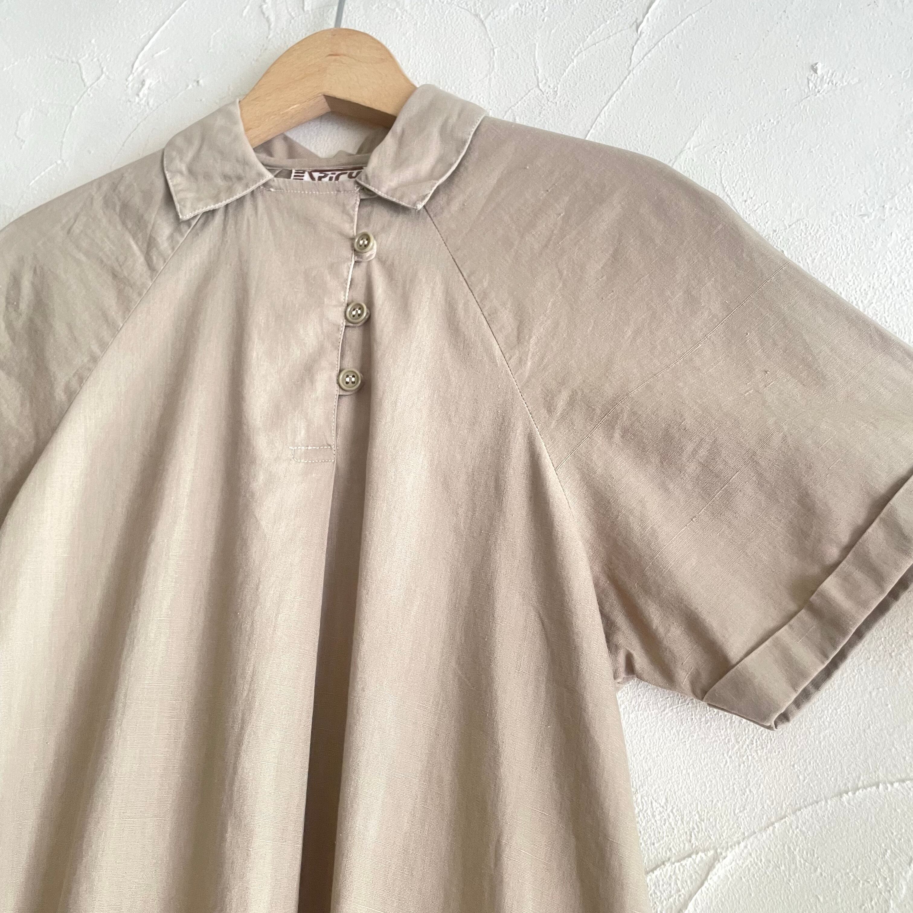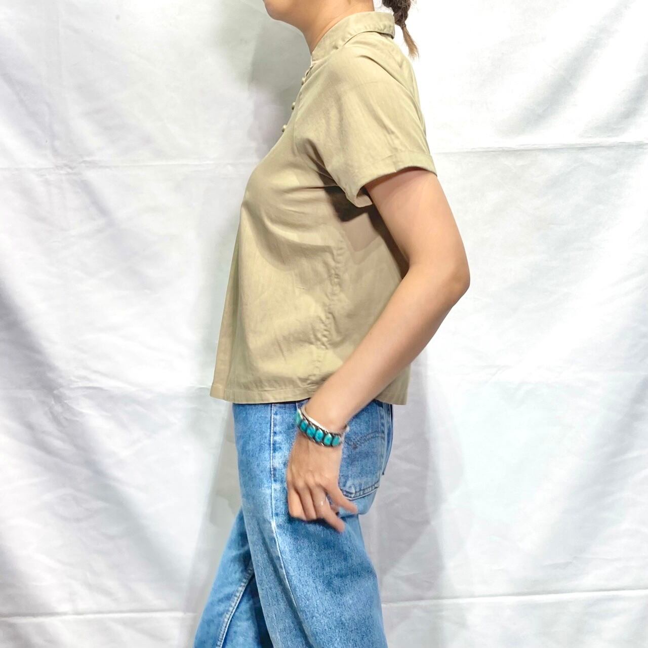 詰まった首元が可愛い、ヴィンテージインド綿カーキベージュ半袖プルオーバーブラウスです。