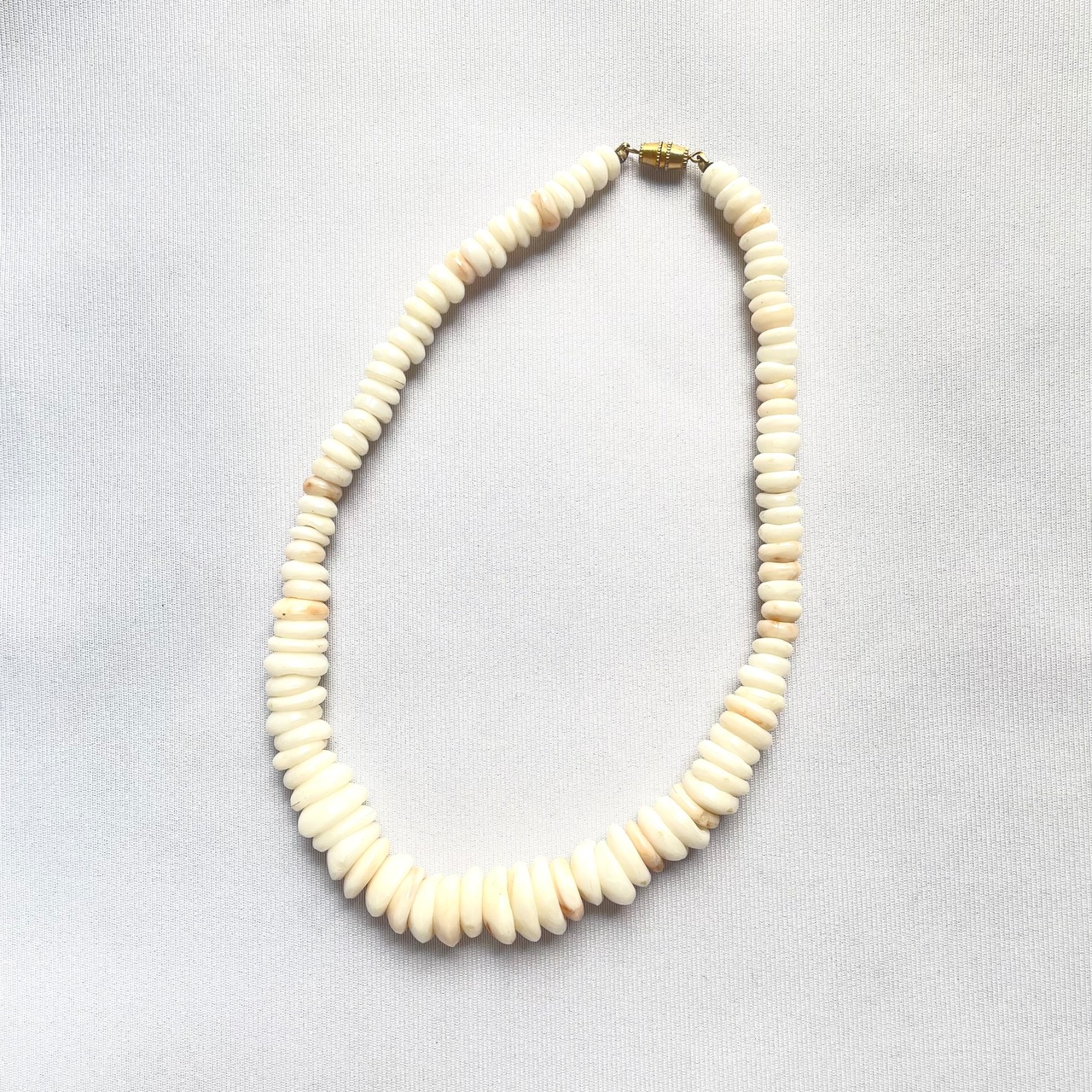 アイボリーとベージュの貝殻風ビーズ短めネックレスです。