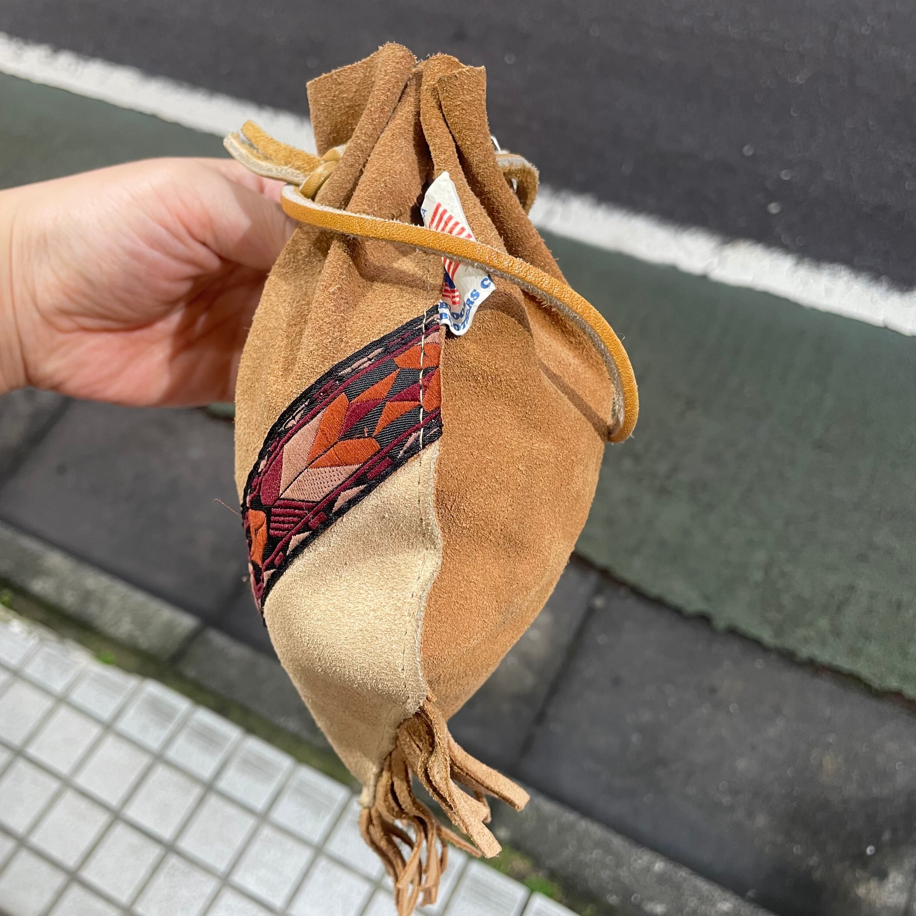 アメリカ製ブラウンベージュスウェードフリンジ付きミニポシェットです。