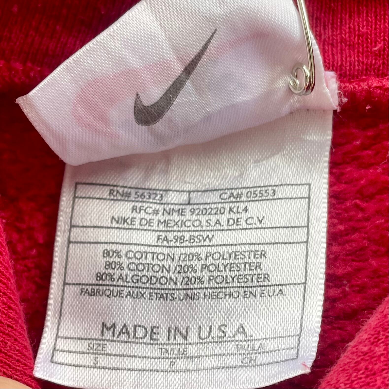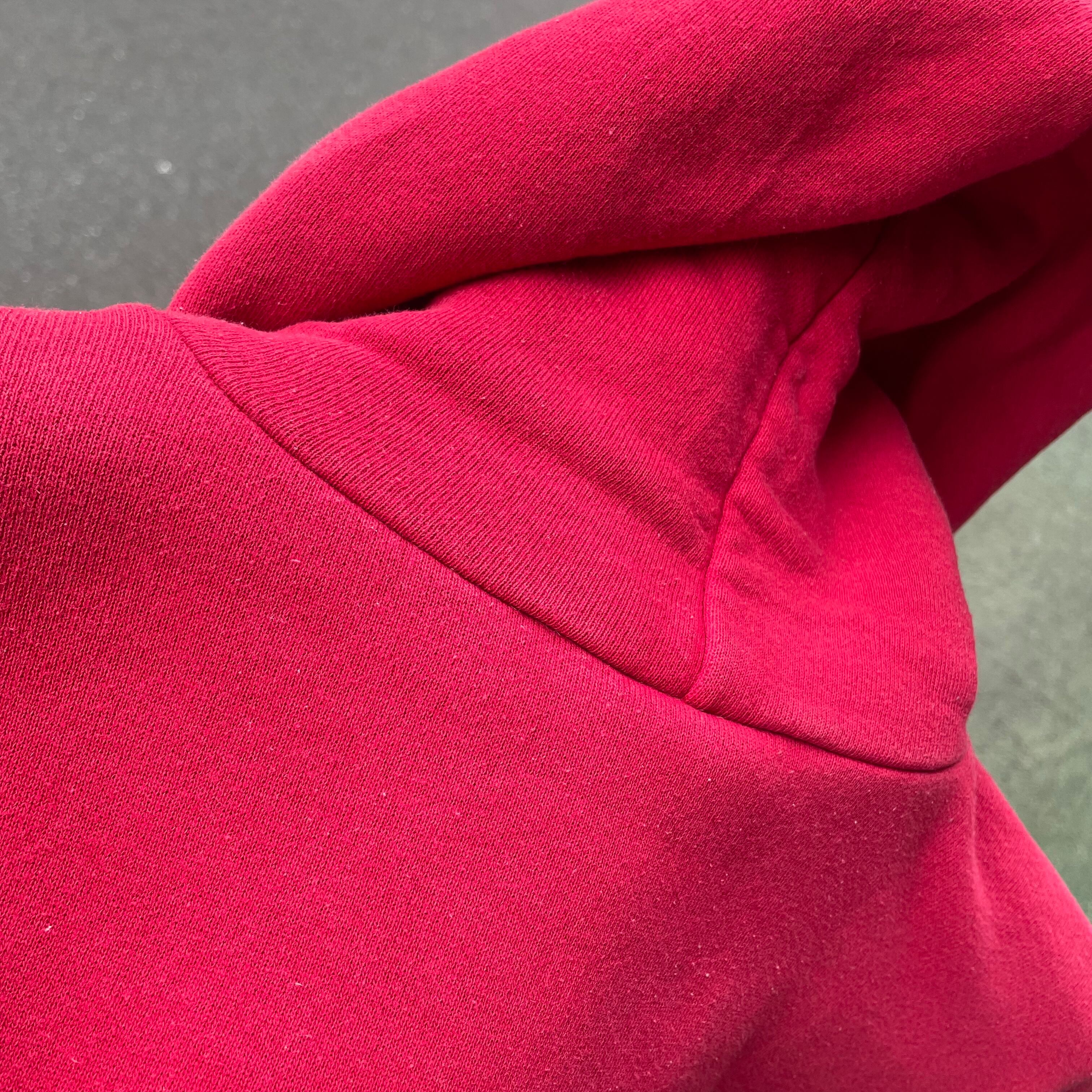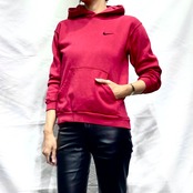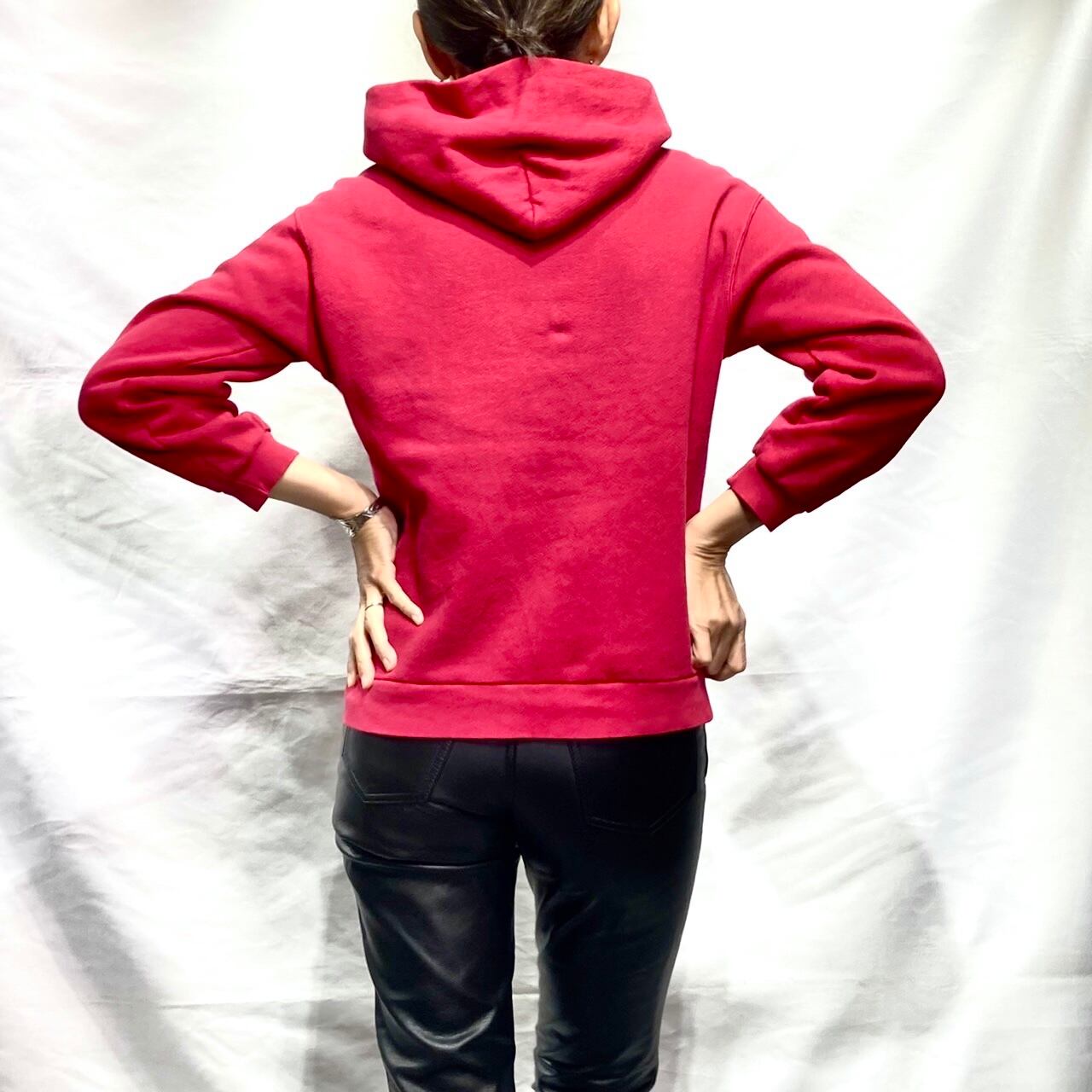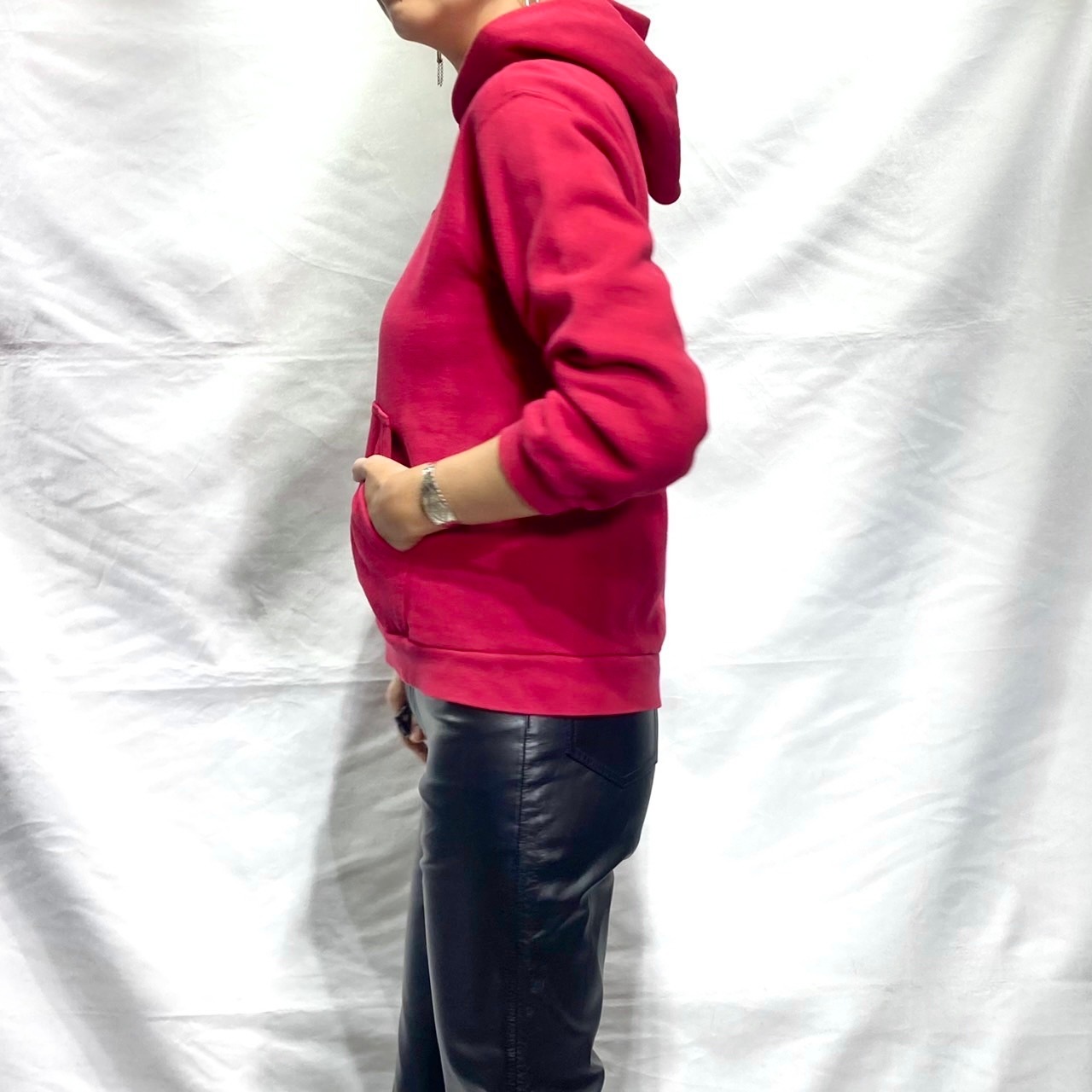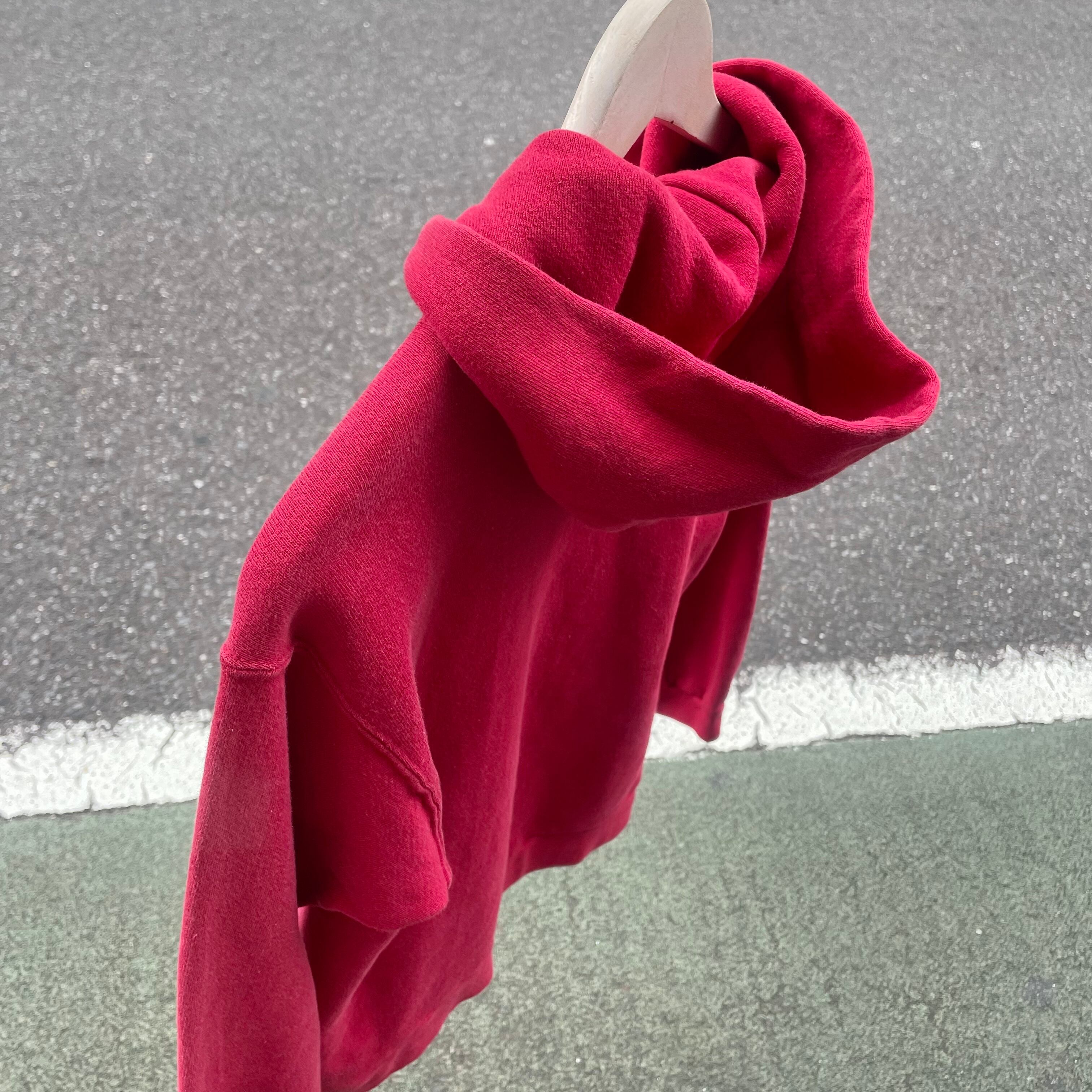 深い赤のアメリカ製Sサイズナイキスウェットパーカーです。コットン80% ポリエステル20%