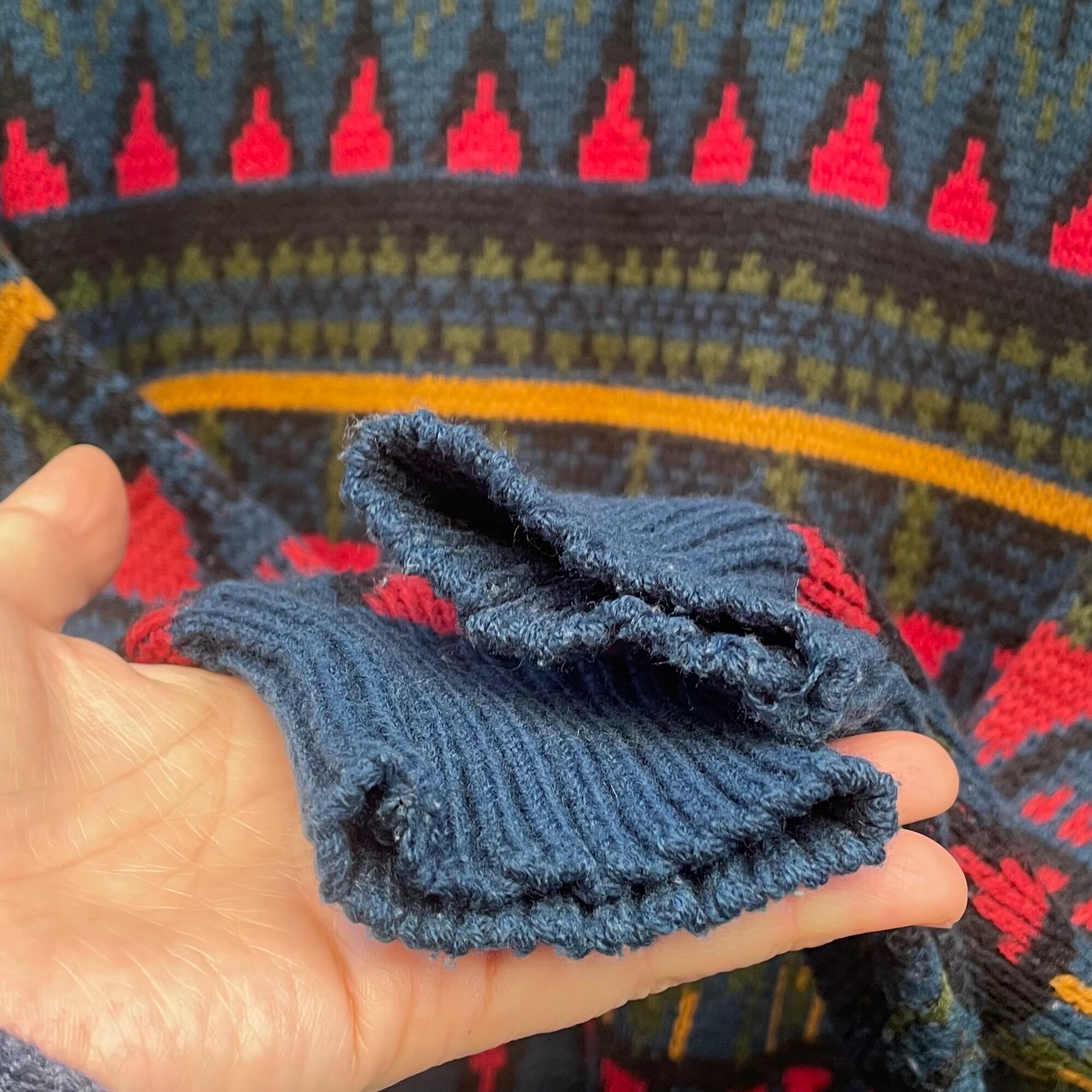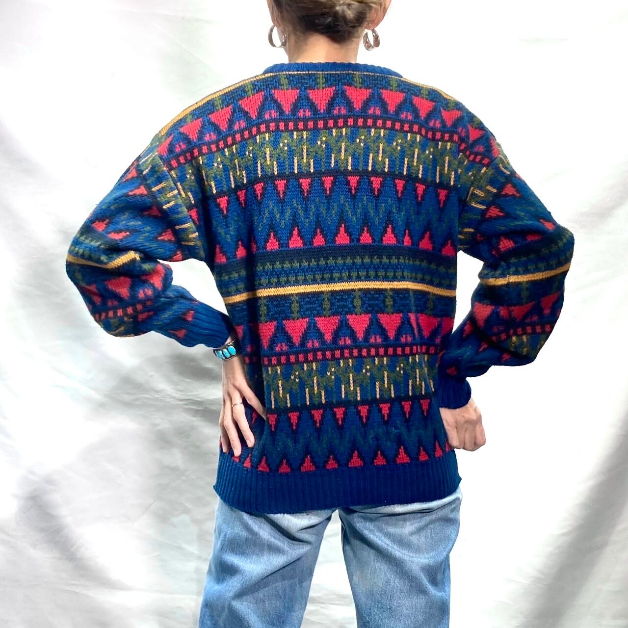 大きめサイズの幾何学模様アクリル100%ニットです。