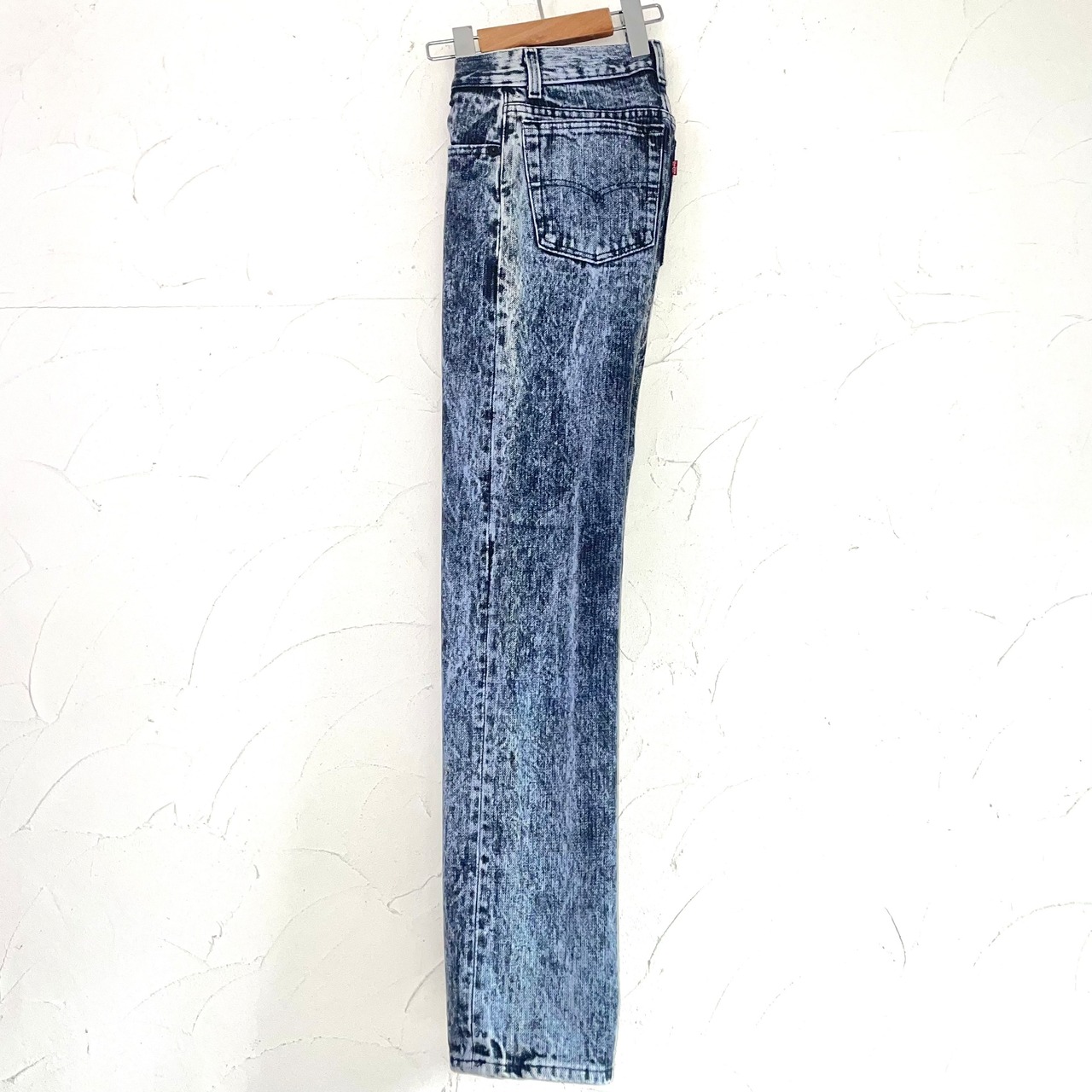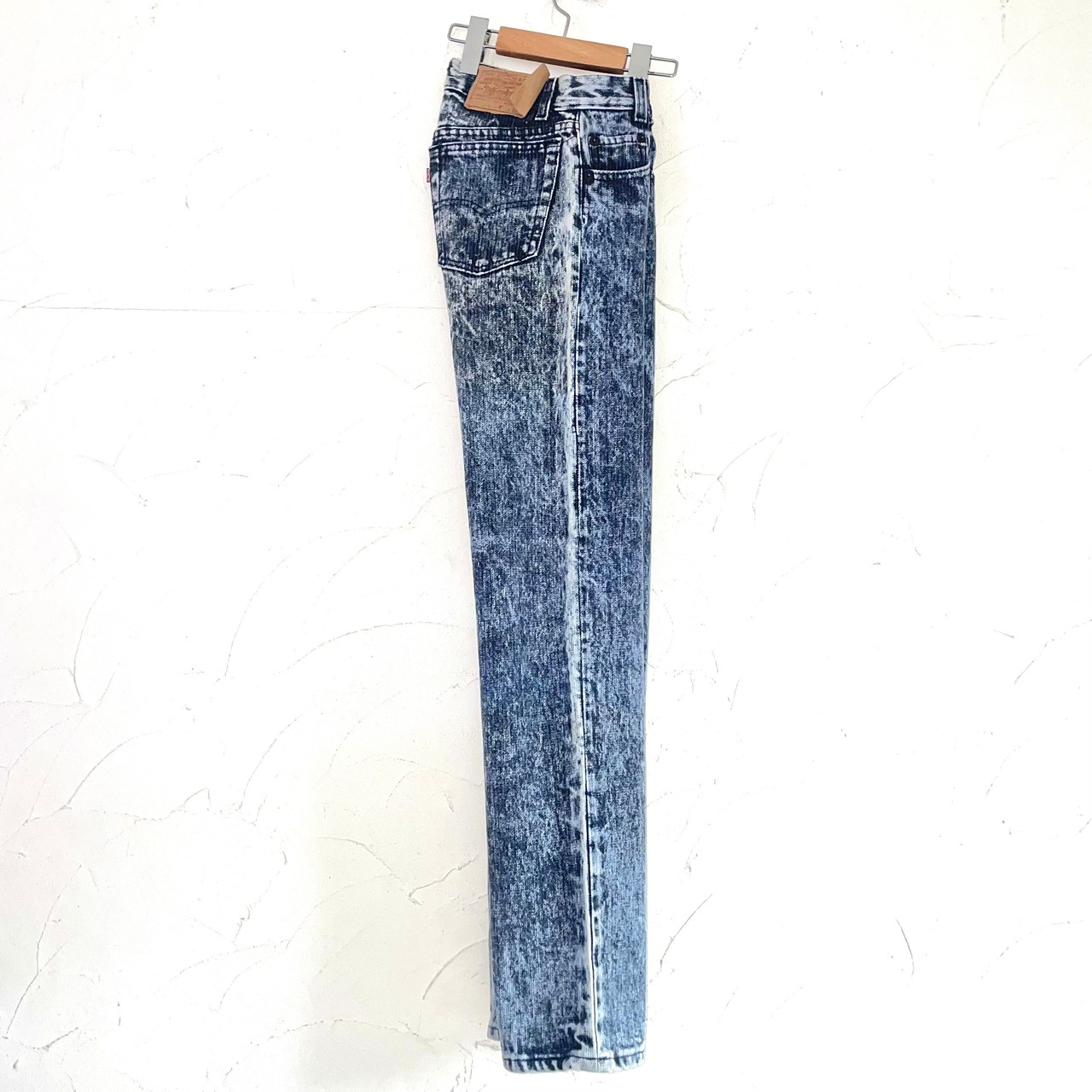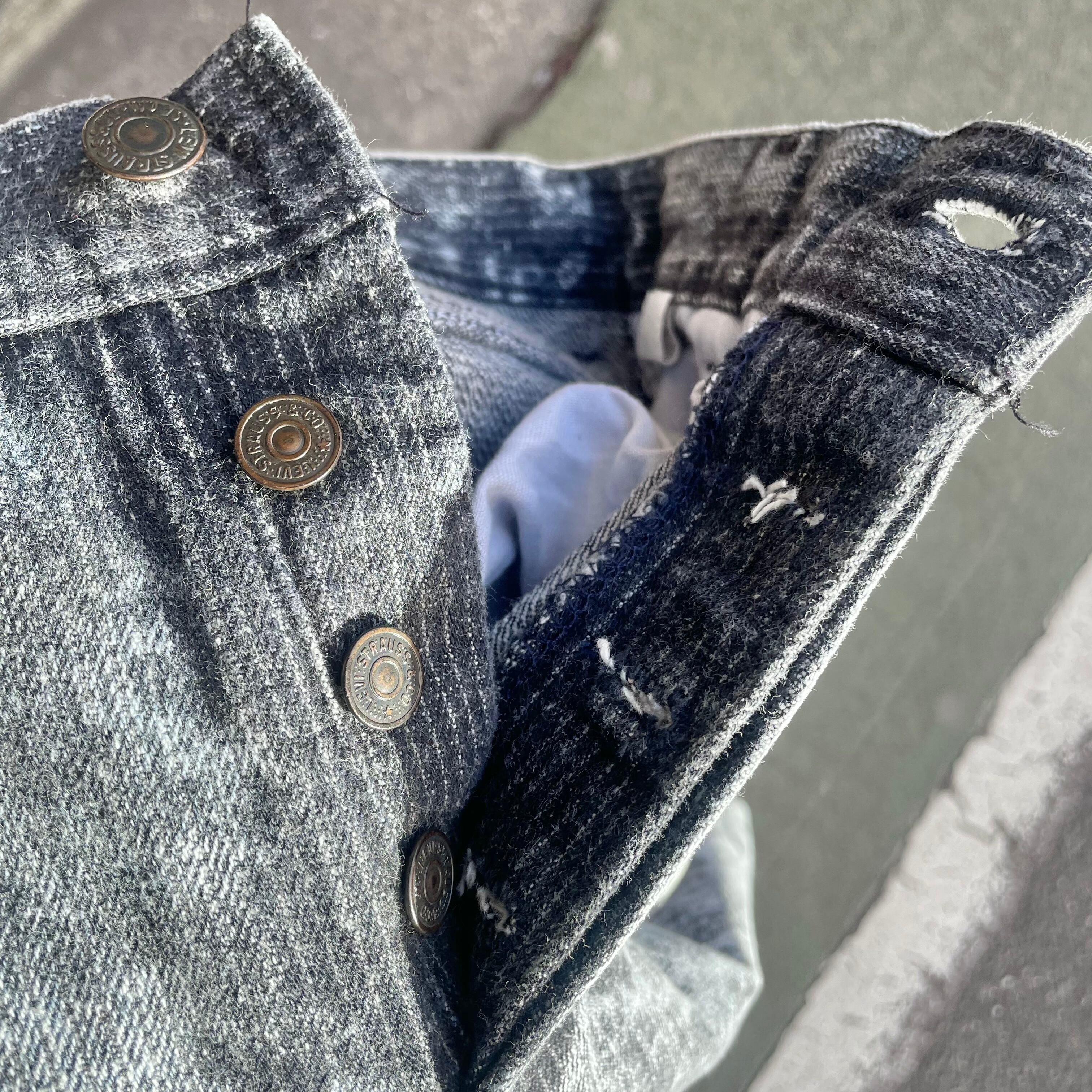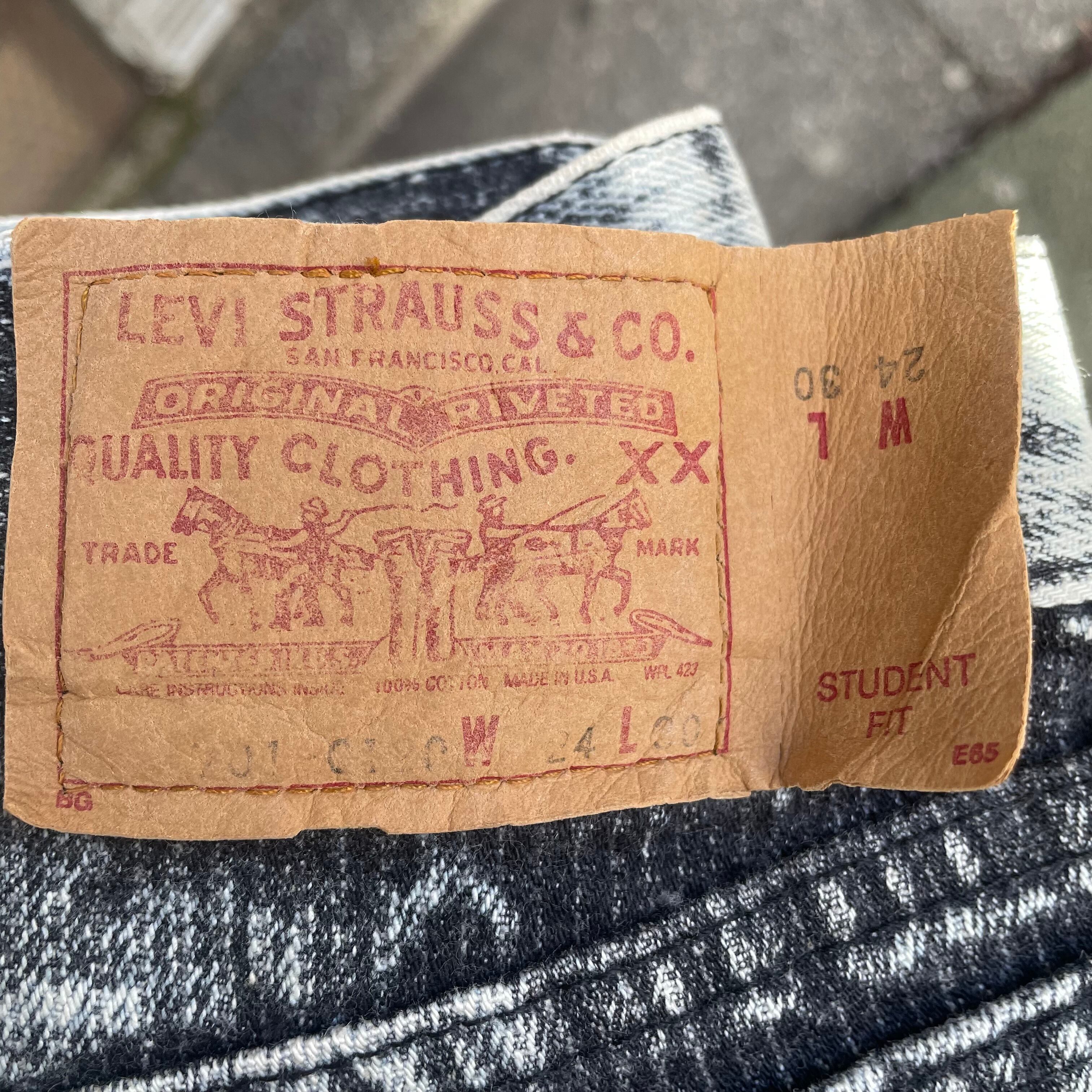 アメリカ製リーバイス701スチューデントフィット ブラックケミカルデニムパンツです。85年製 トップボタン裏511