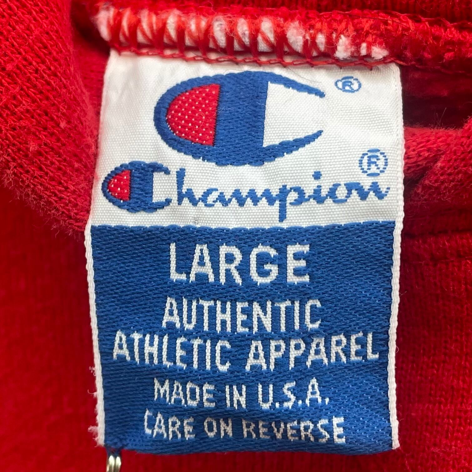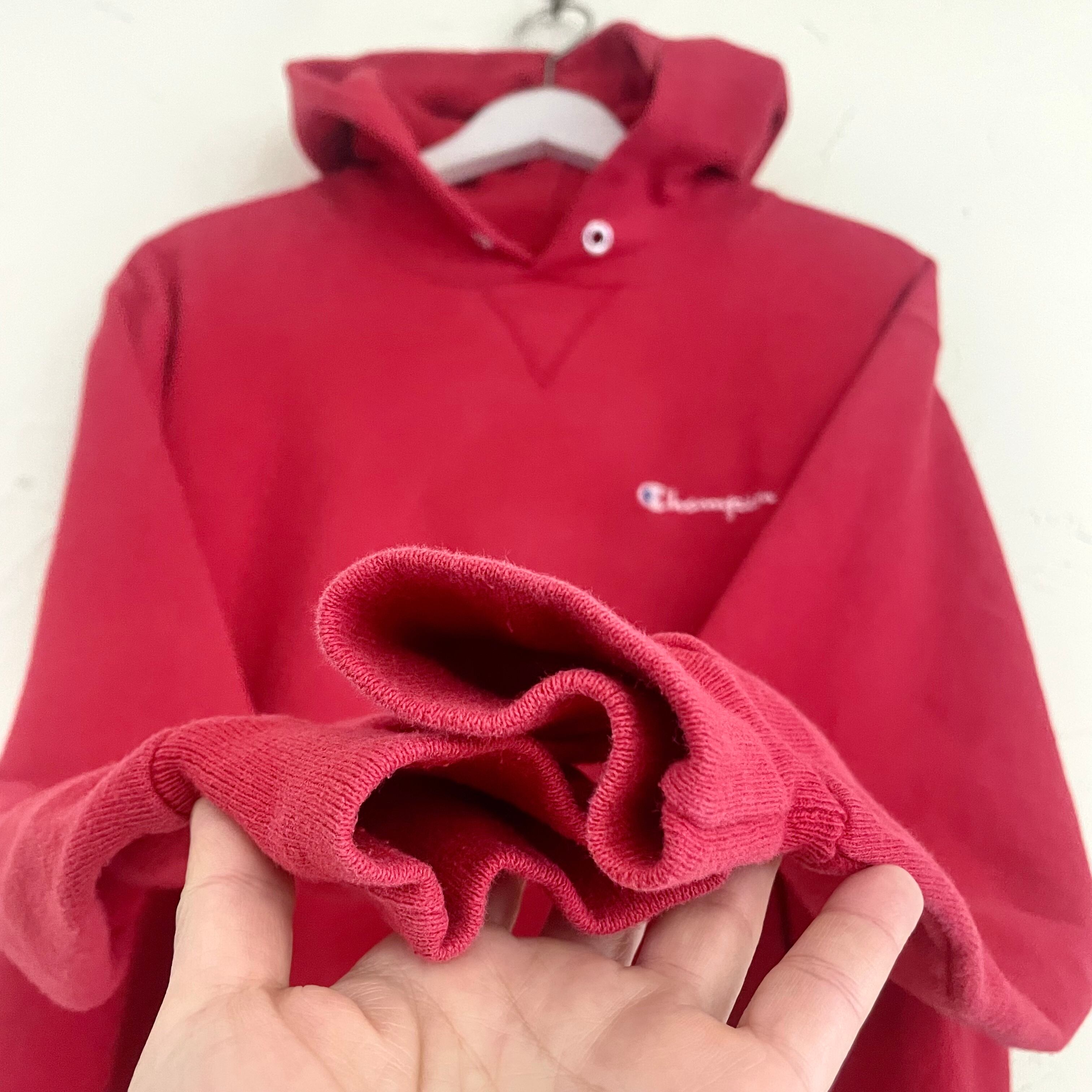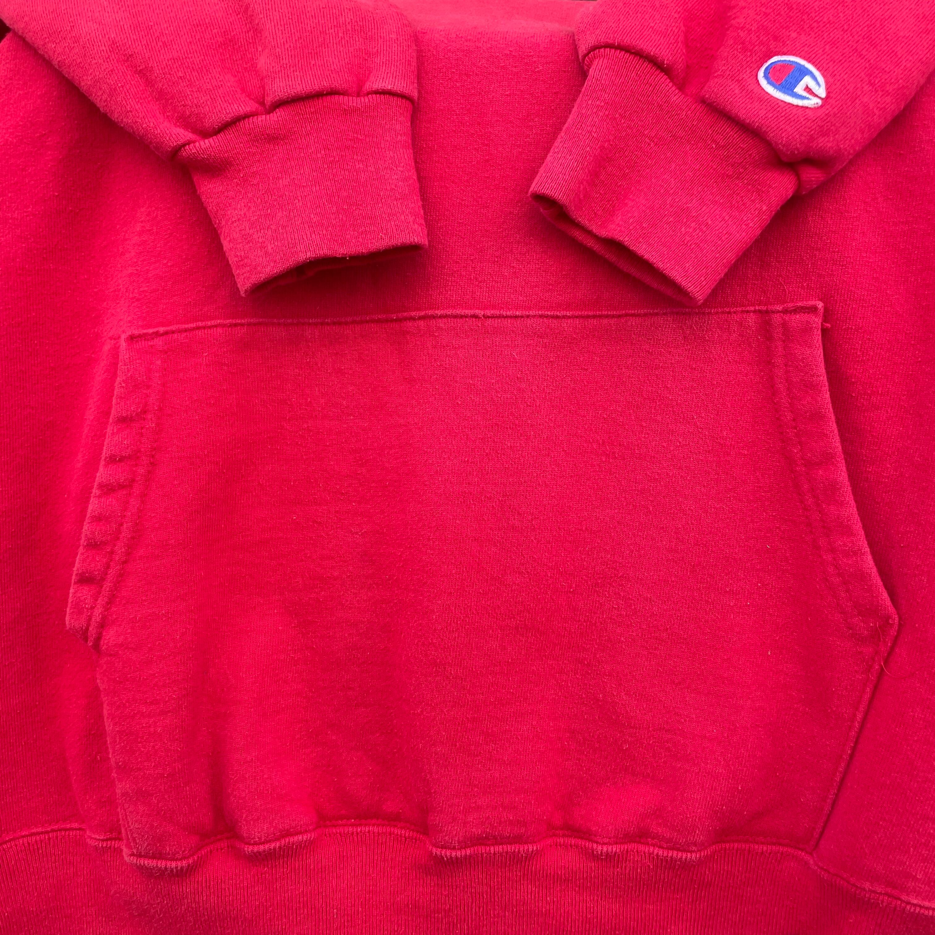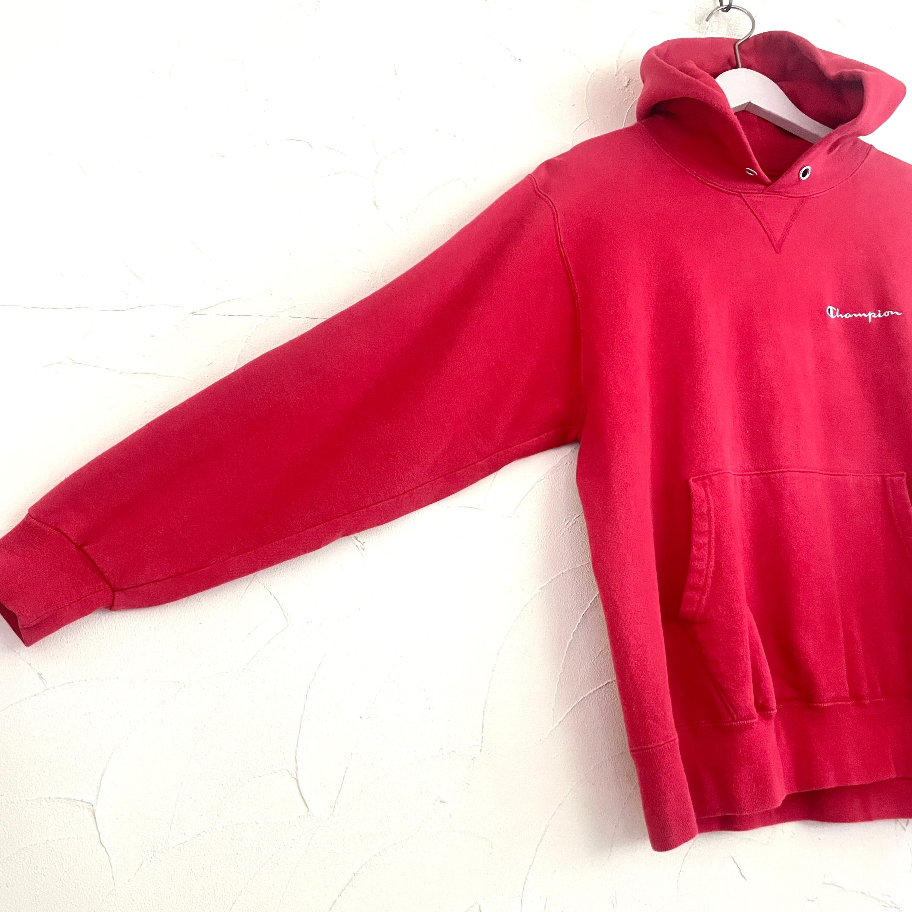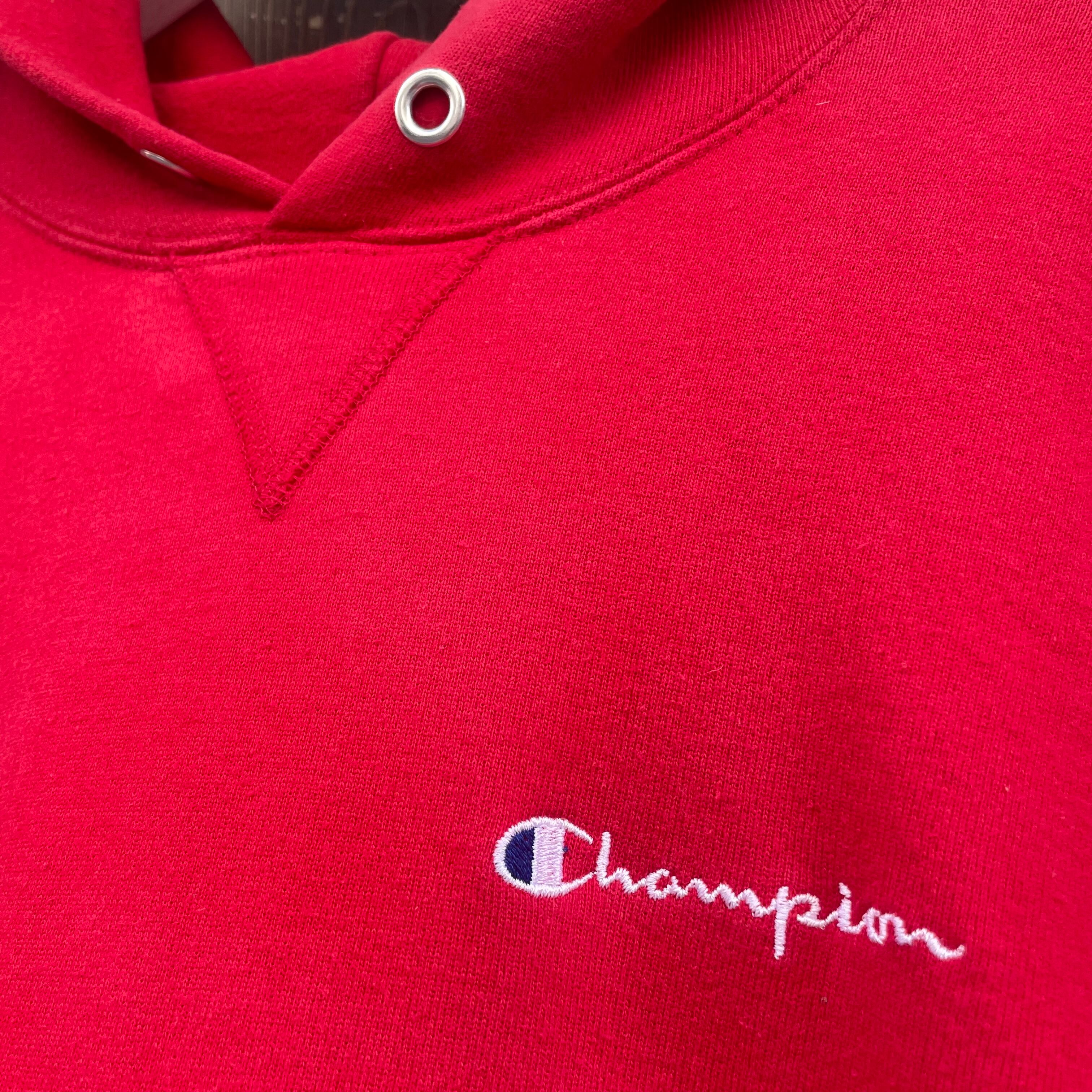 90年代アメリカ製チャンピオン 胸ロゴ刺繍入り 赤スウェットパーカーです。