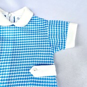 6か月児用 6-70年代ヴィンテージ カータース ターコイズブルー ドット 総柄 ロンパースです。100%FORTREL polyester TALON Zipper