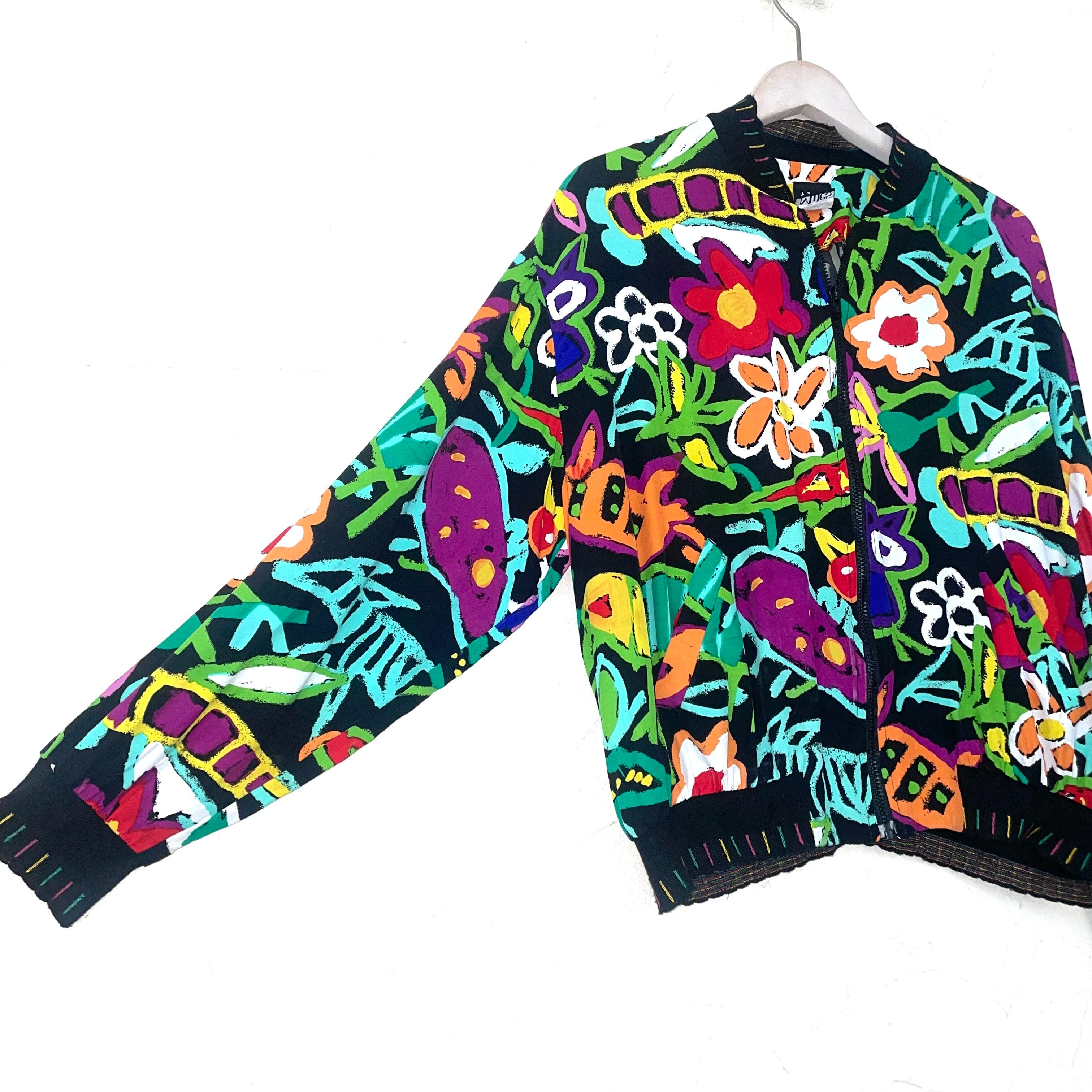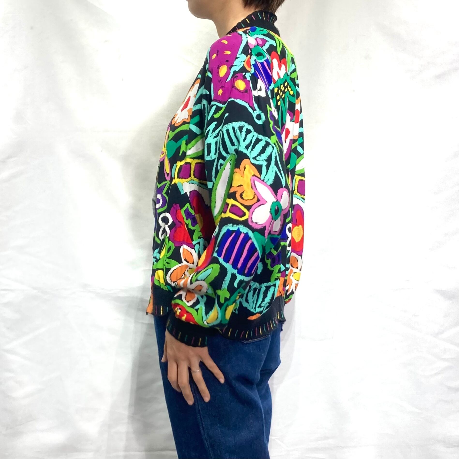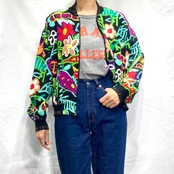 アメリカ製 黒 花柄 ジップアップ ブルゾンです。
