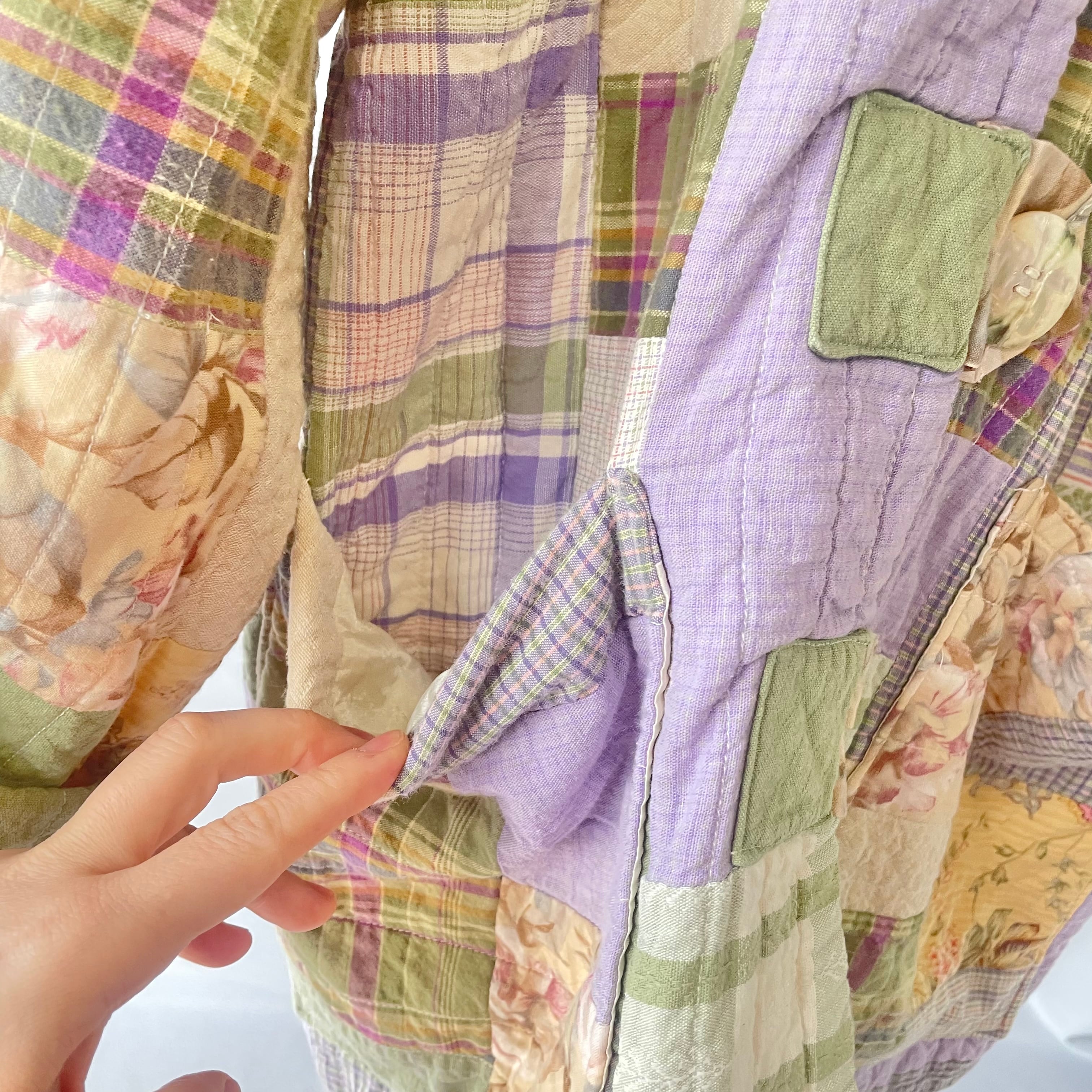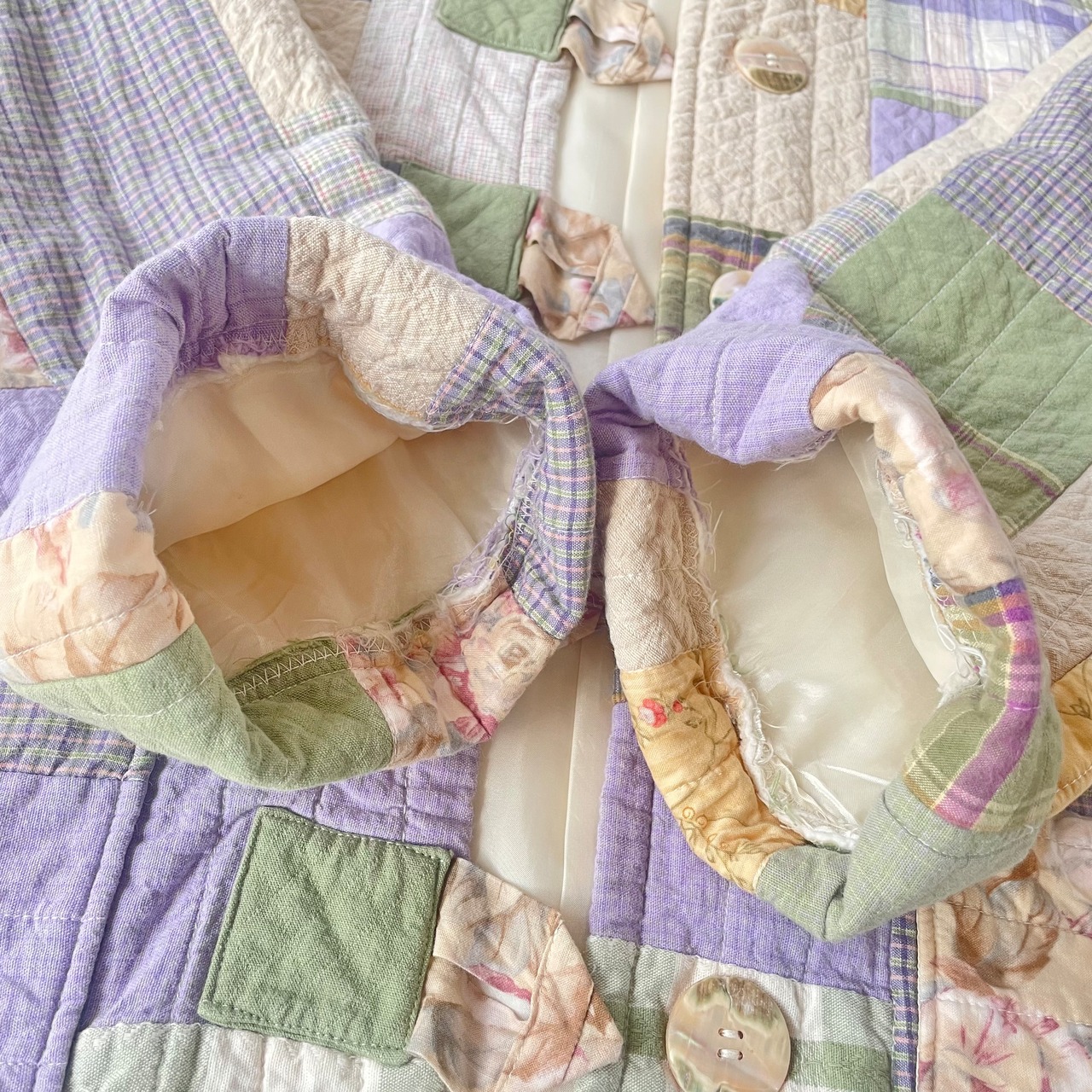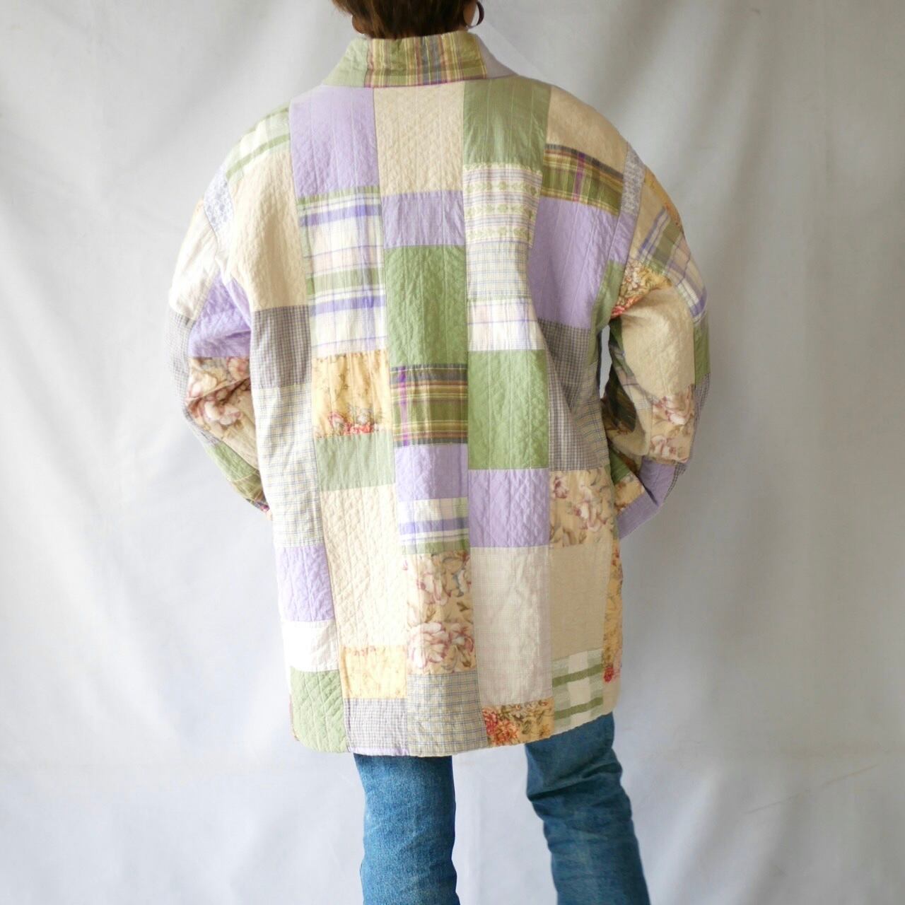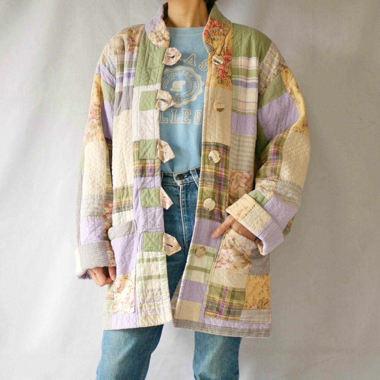 とても状態の良い、ヴィンテージ ハンドメイド パッチワークキルト スタンドカラー ジャケットです。裏地、ポケット付き。