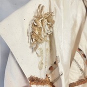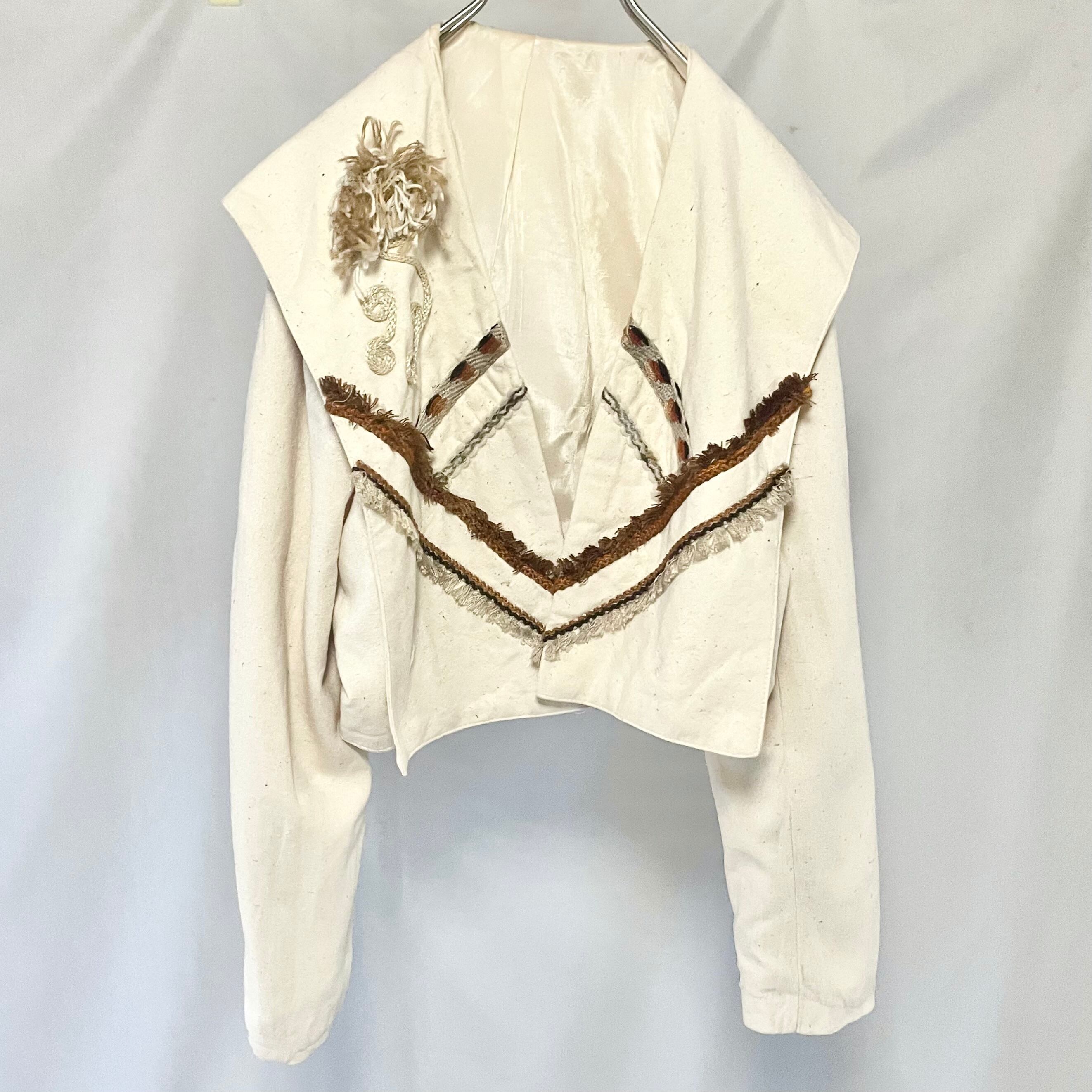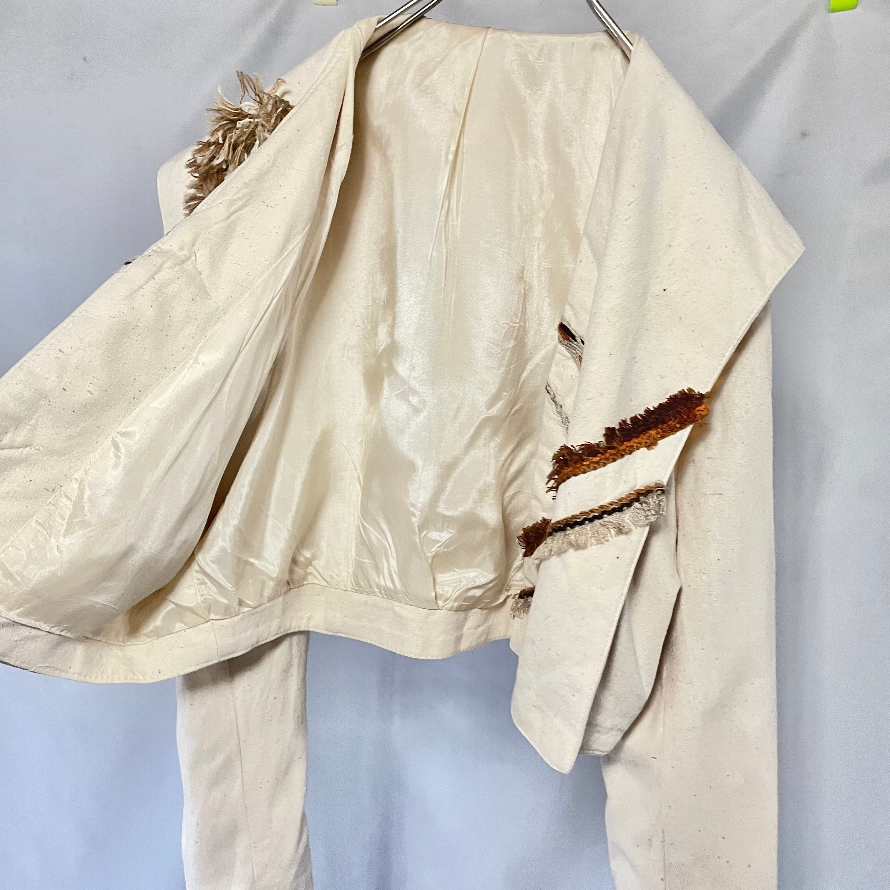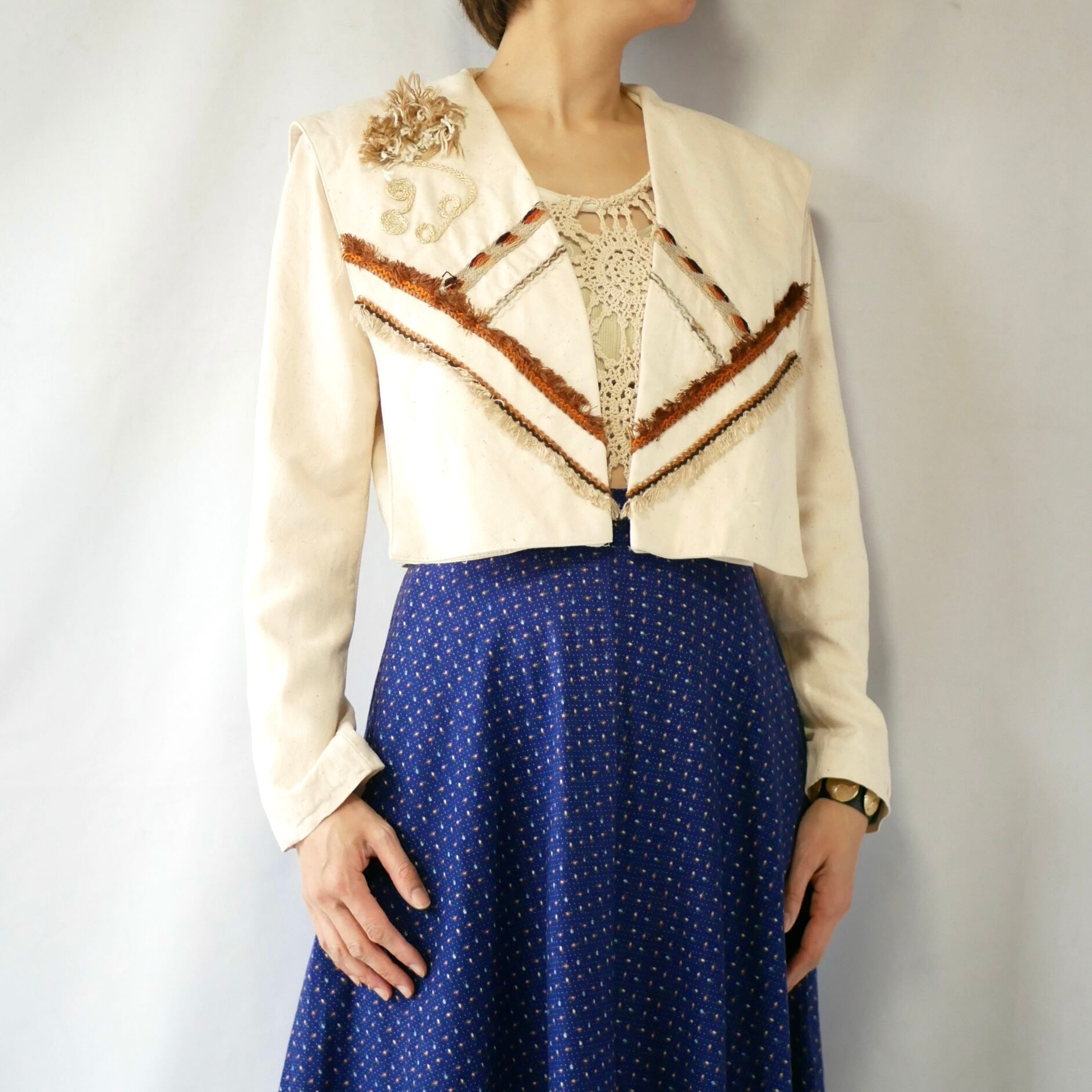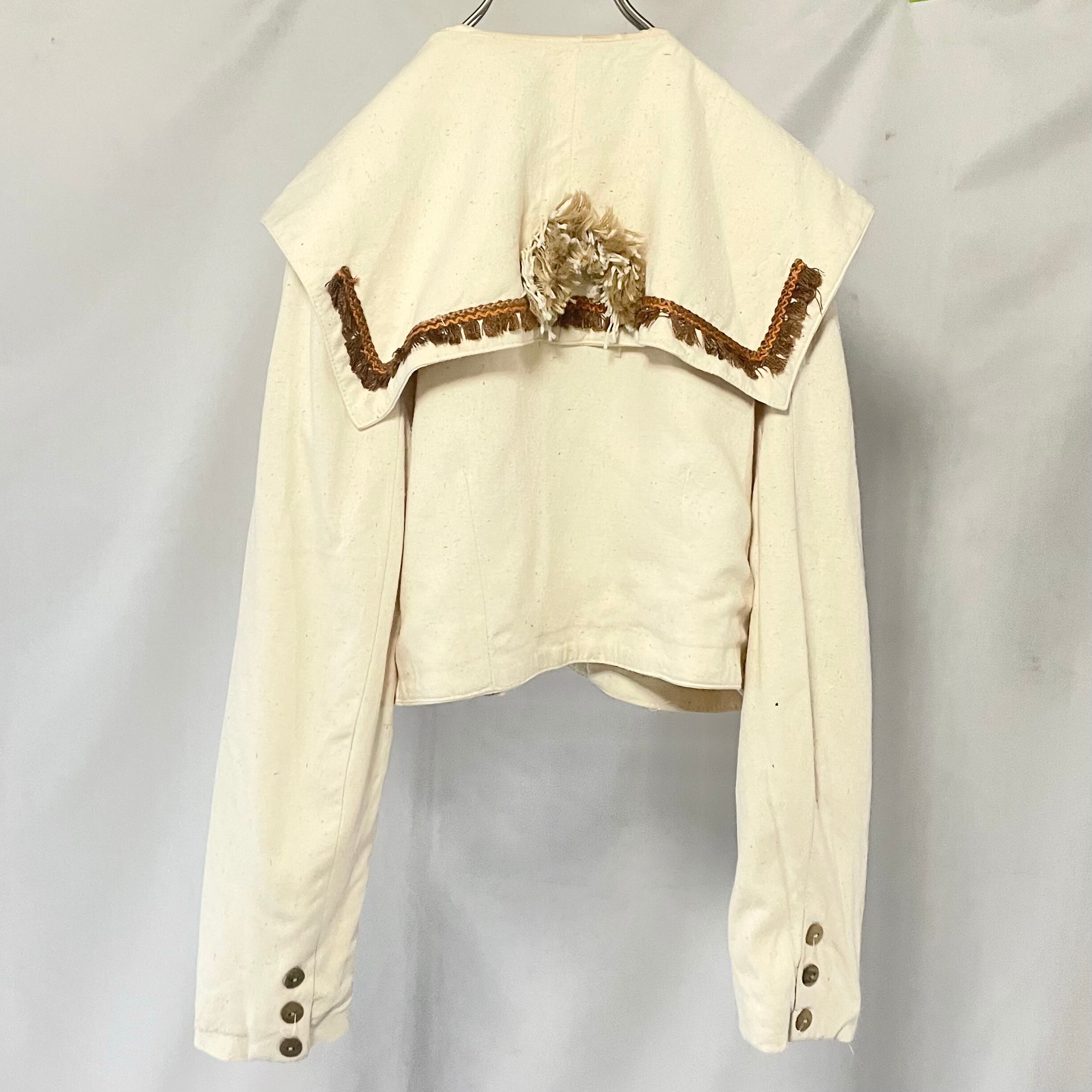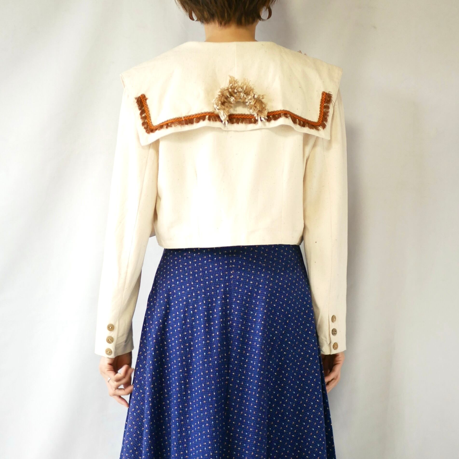 毛糸の装飾がとても可愛い、フランス製 アイボリー シルク100% セーラージャケットです。