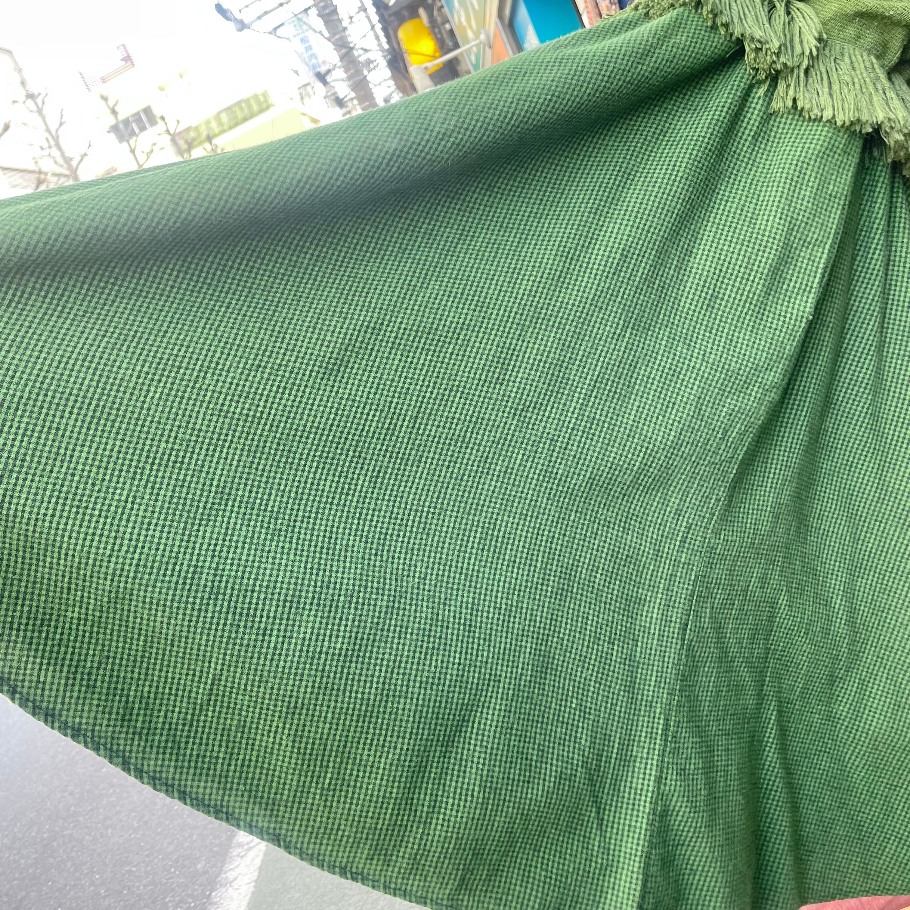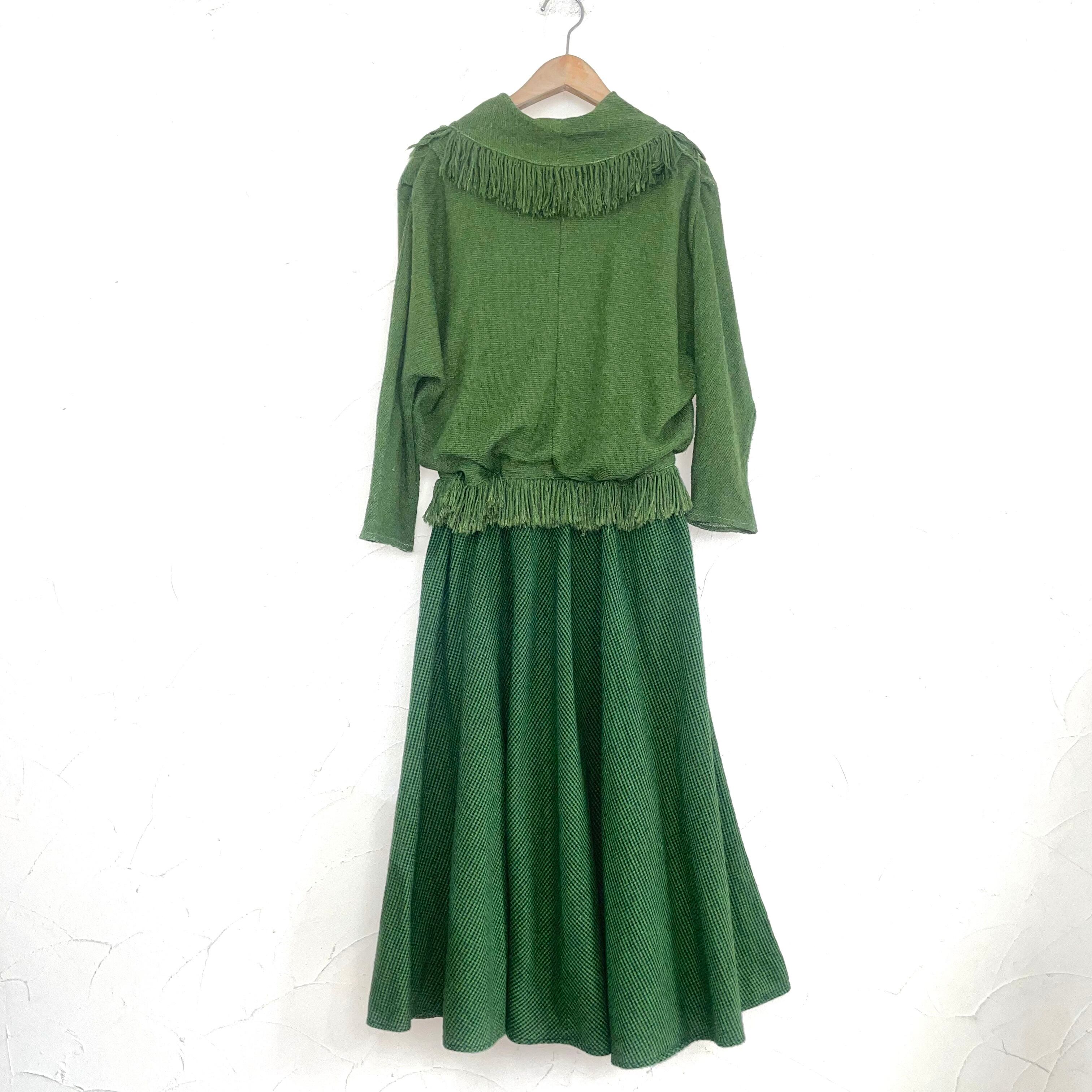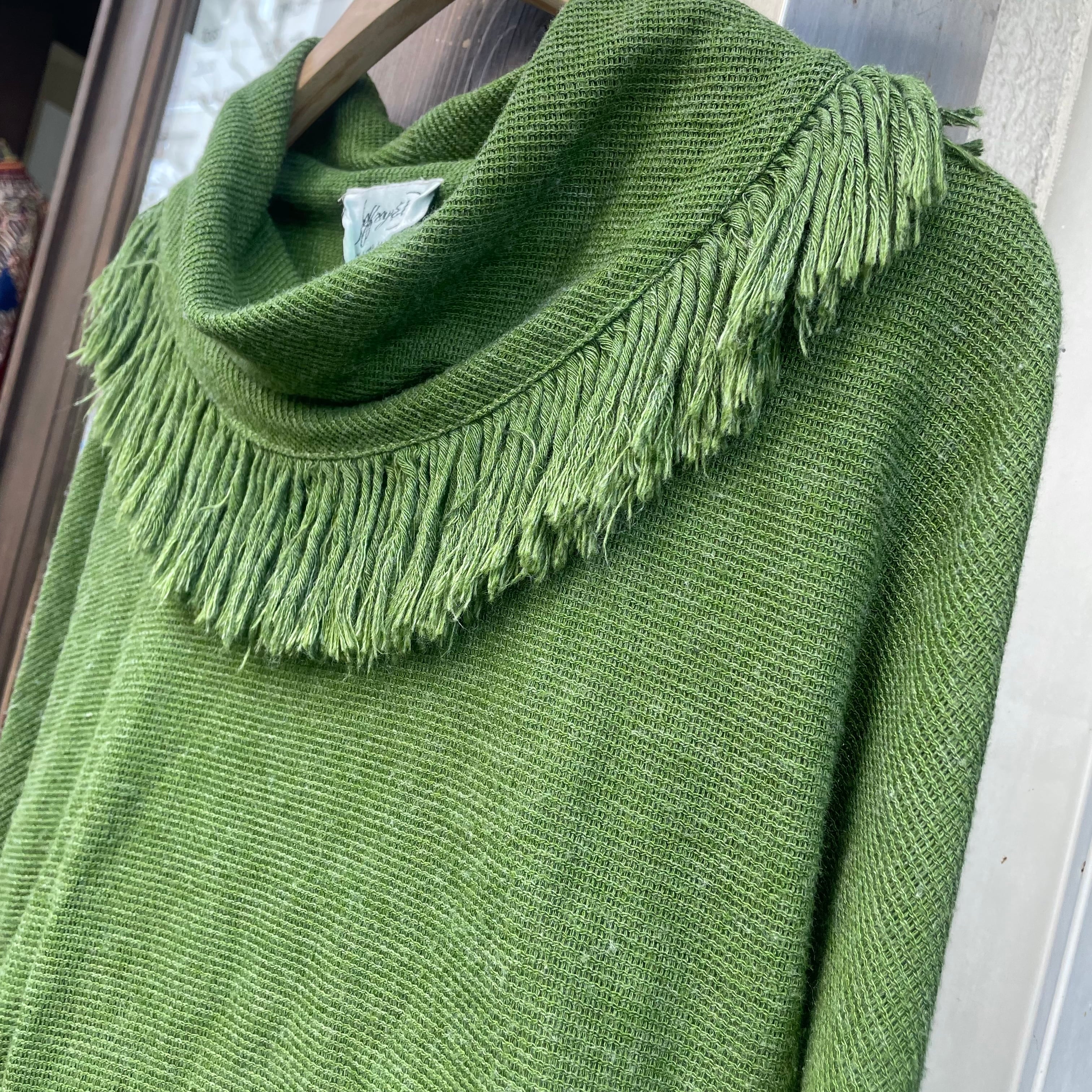 Made in USA green fringe dolman sleeve onepiece