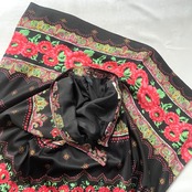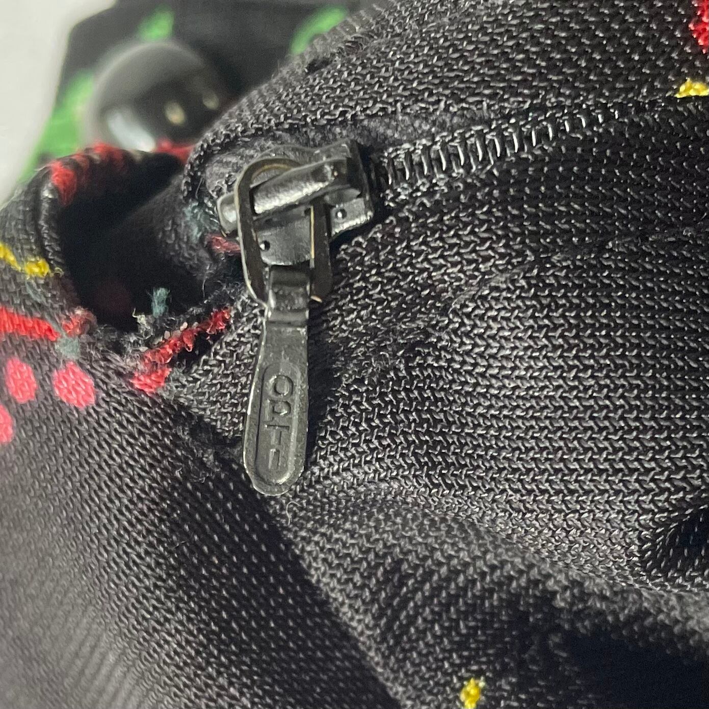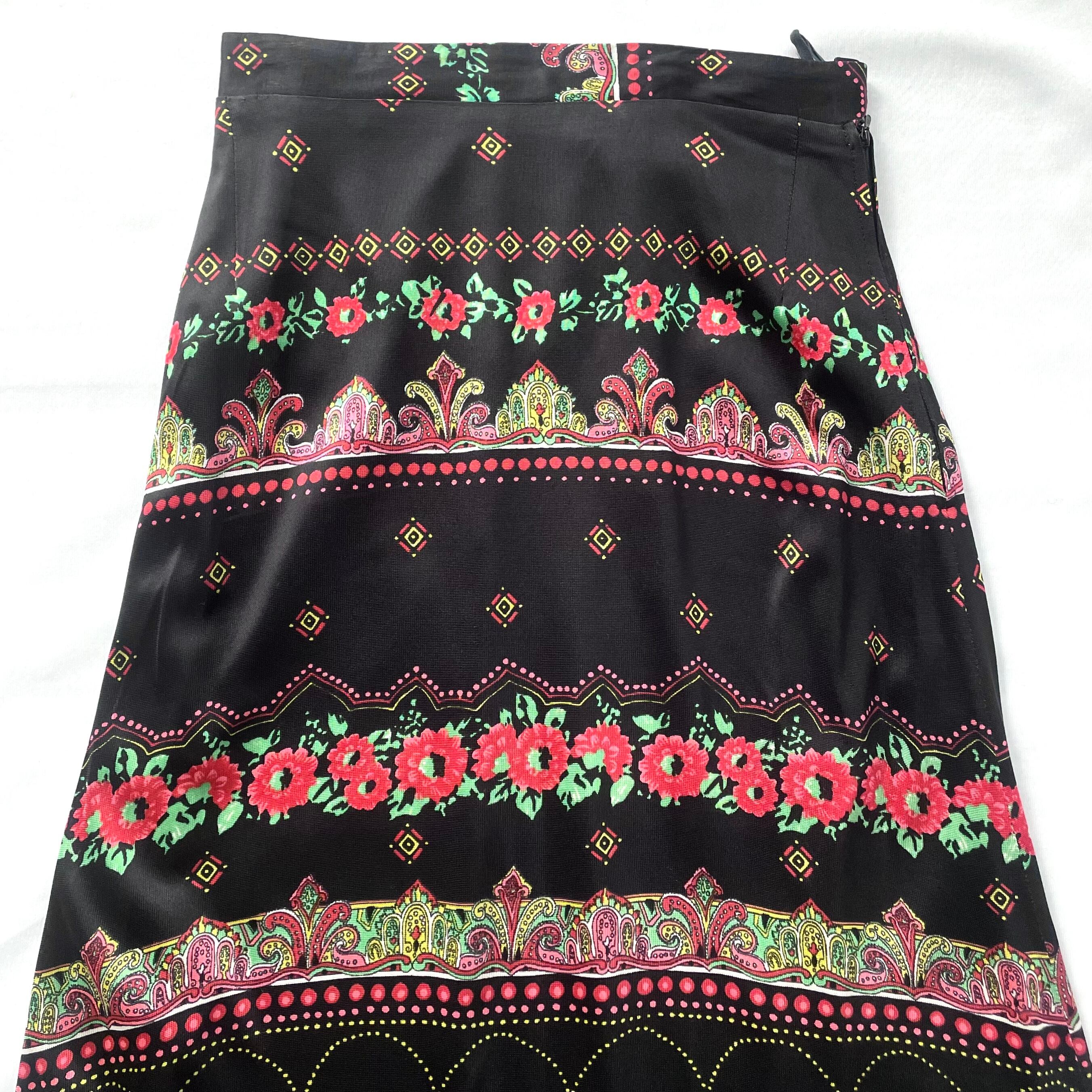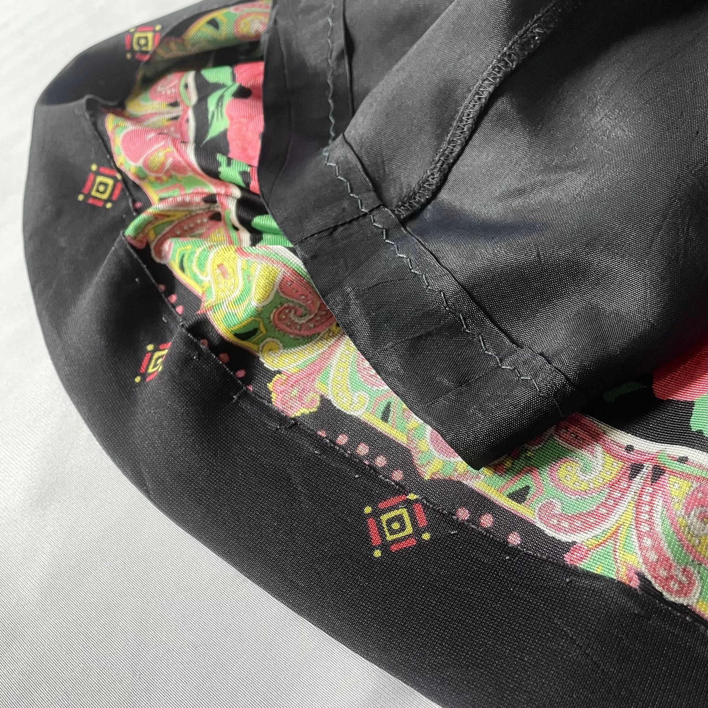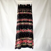 70年代頃の ヨーロッパヴィンテージ 黒花柄 マキシ丈スカートです。ポリエステルかナイロンの様な生地感です。裏地付き。opti zipper