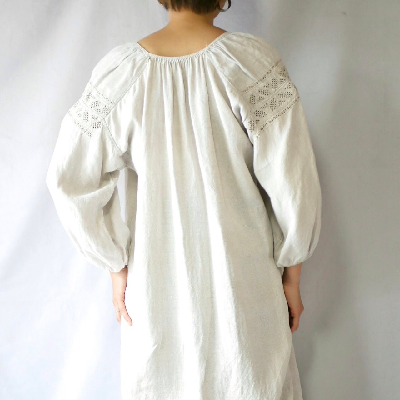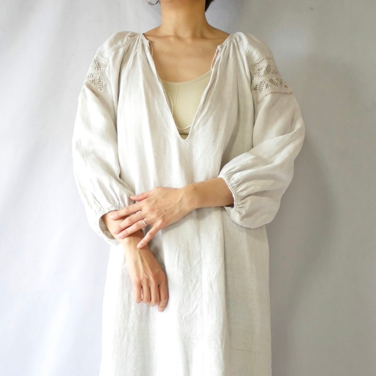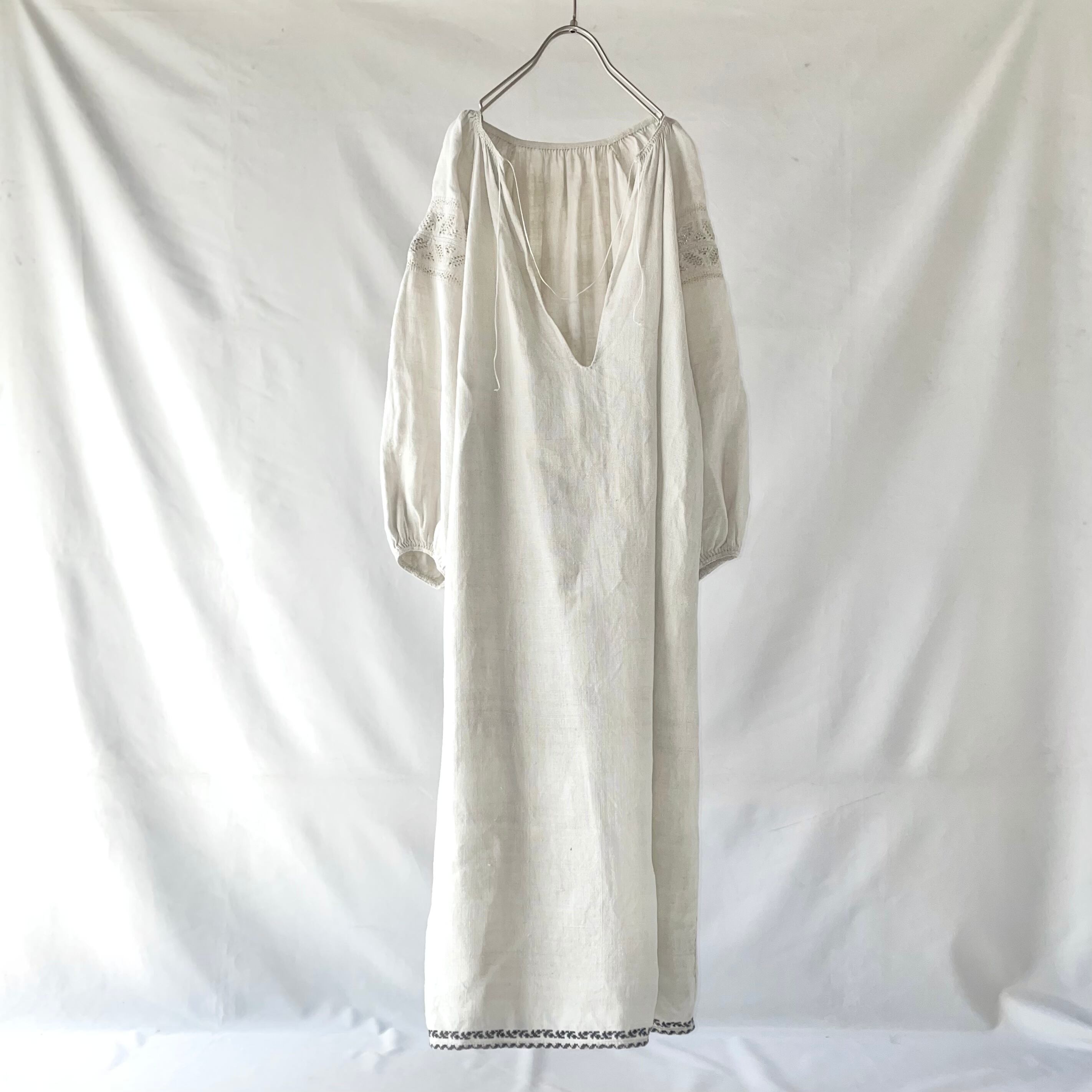 Vintage uklaine ivory one color linen onepiece④
