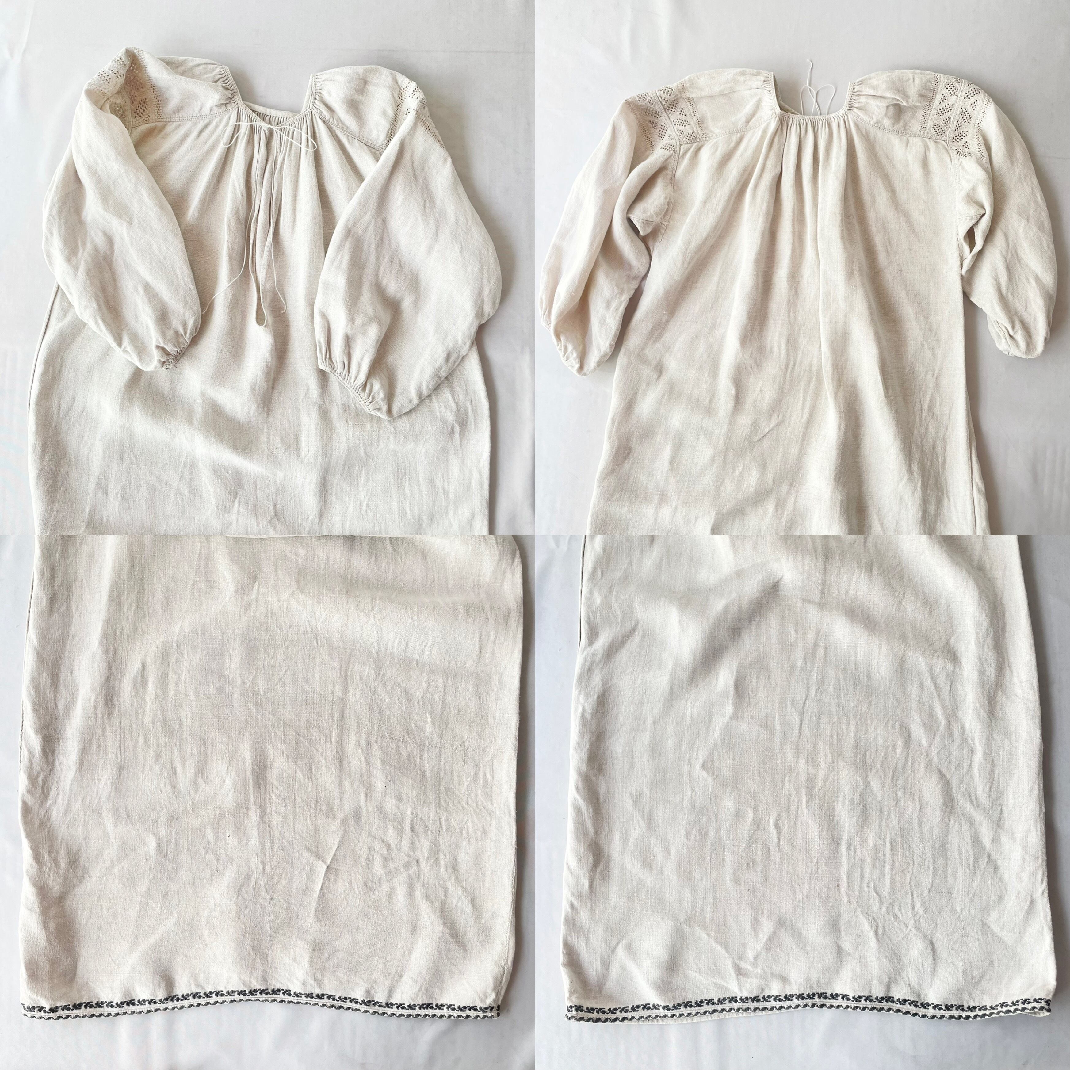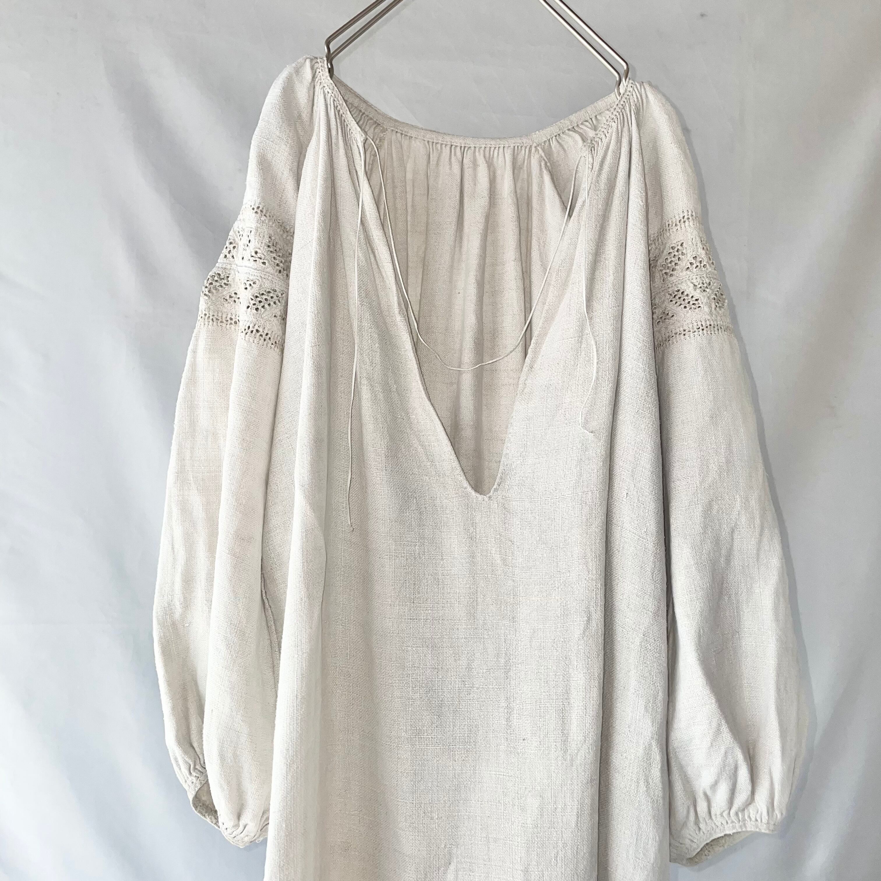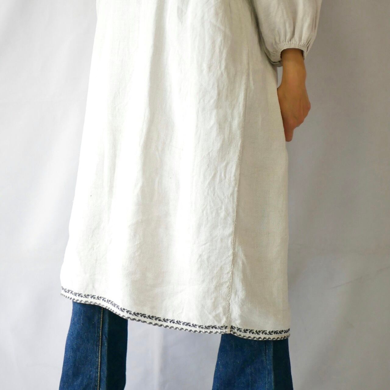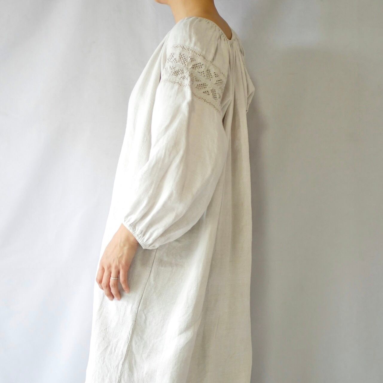 Vintage uklaine ivory one color linen onepiece④