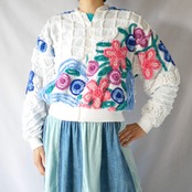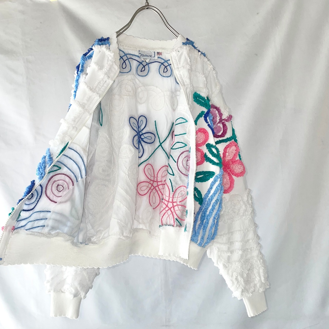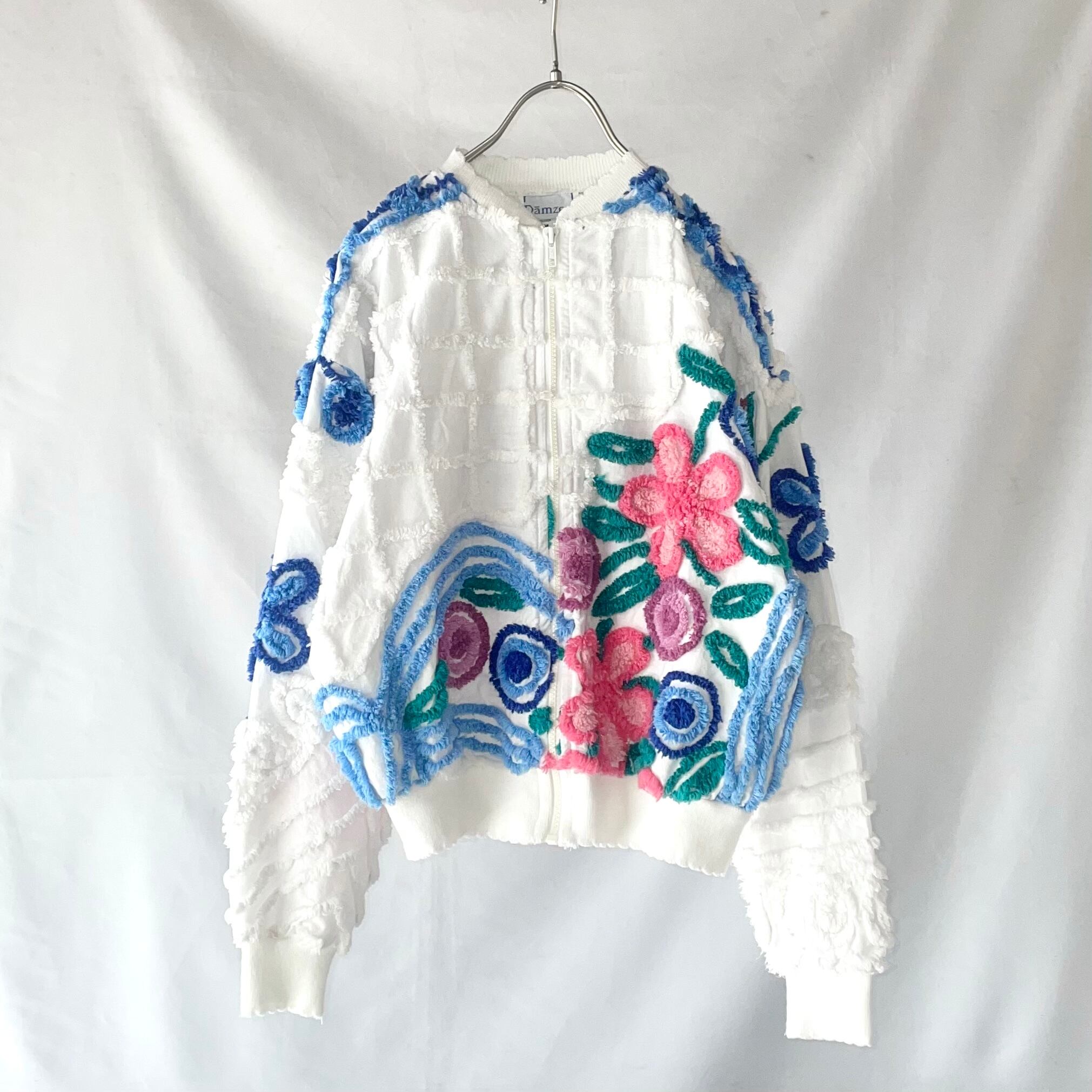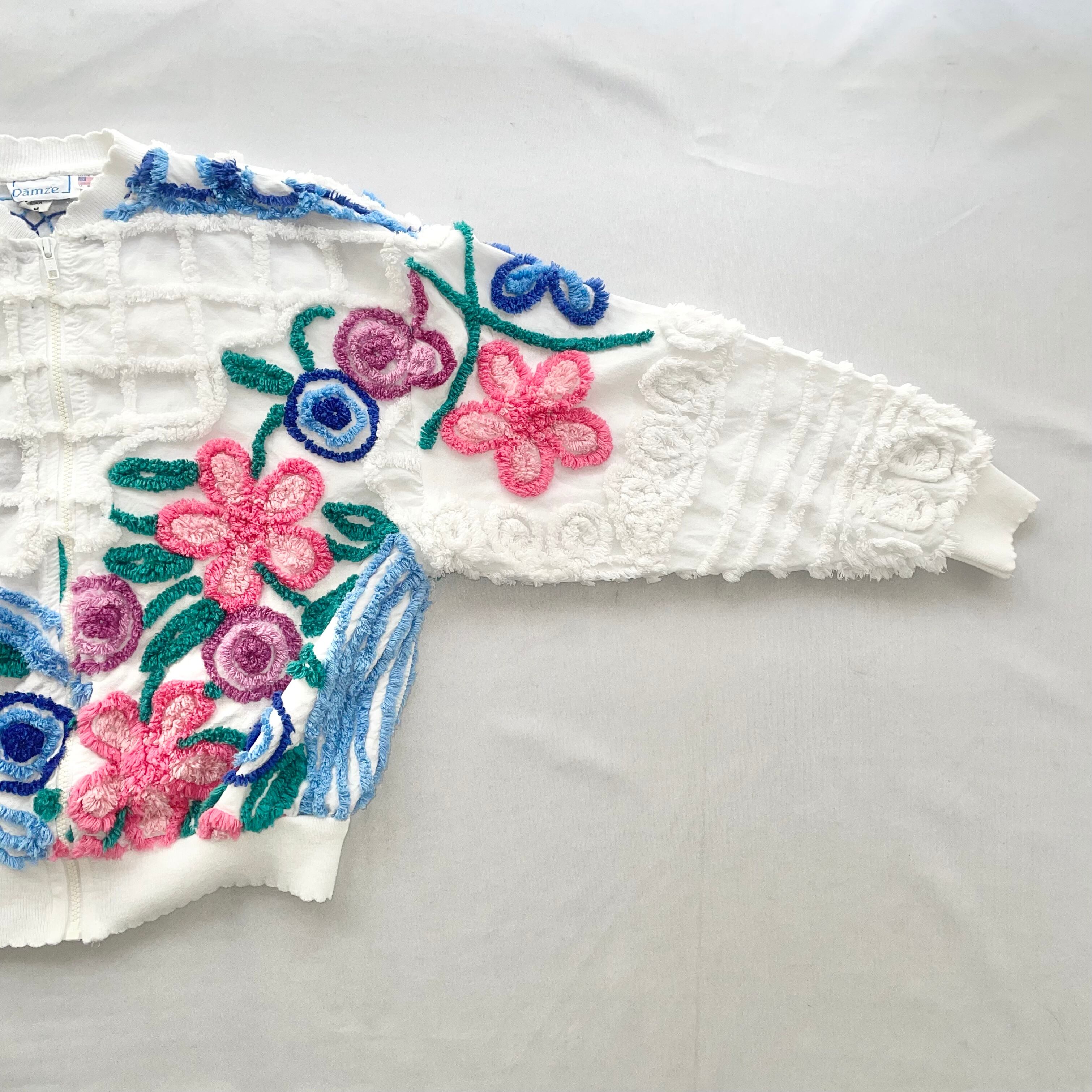 立体的なシェニール織のお花模様生地がとてもかわいい、アメリカ製 Dames ジップアップ ブルゾンです。