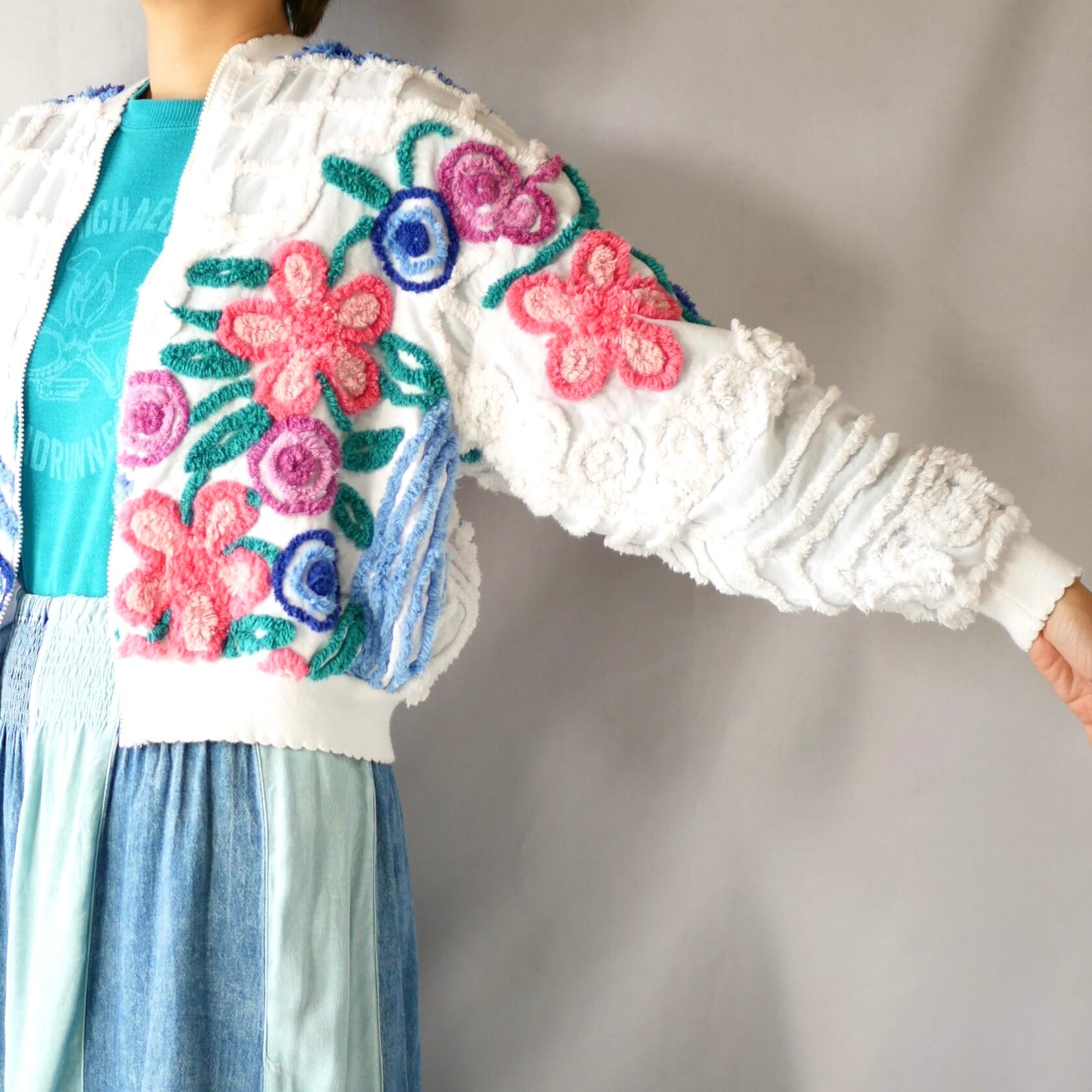 Made in USA Damez chenille floral zip up blouson