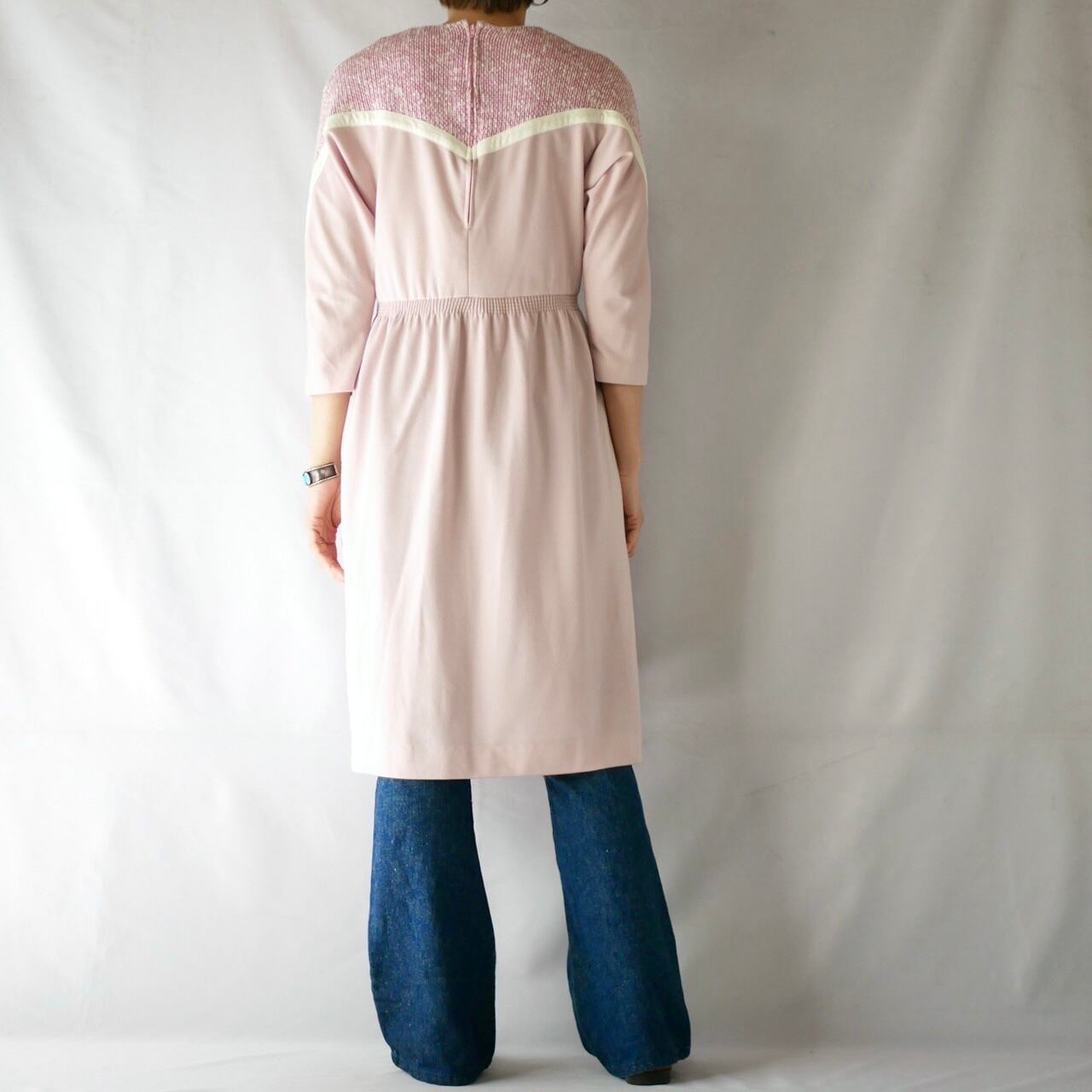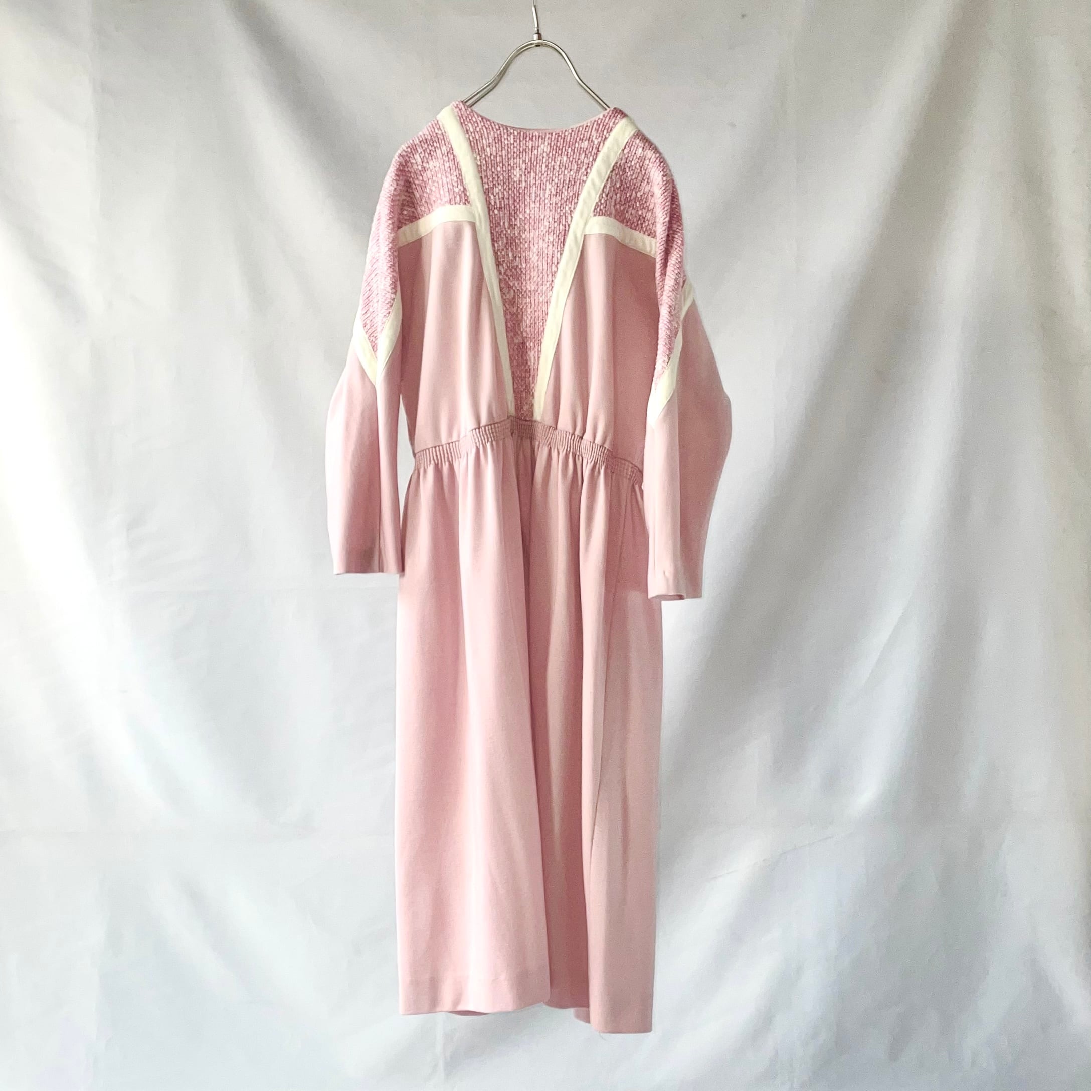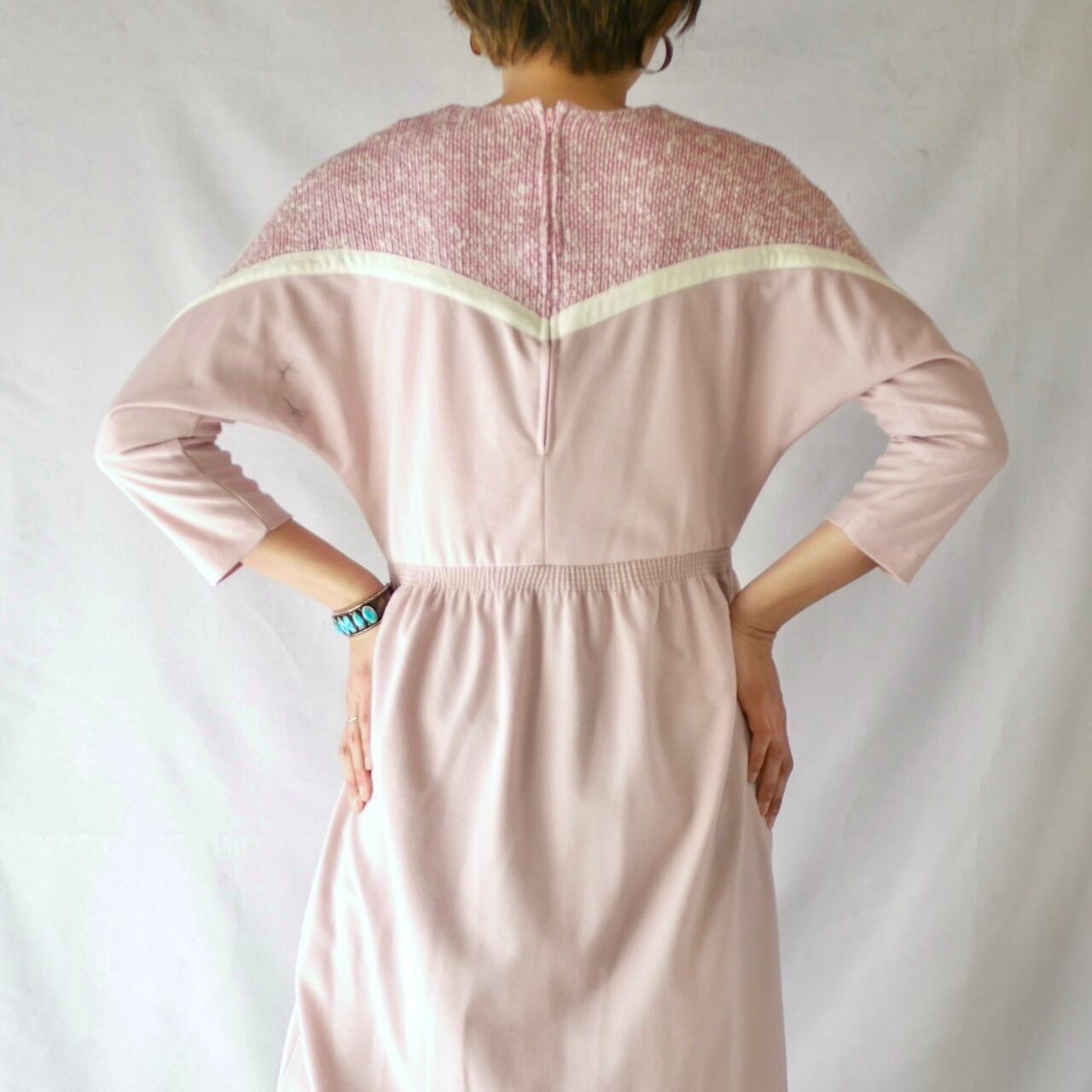 桜の花のようなピンク色のニット地とスウェット地切替 ヴィンテージアメリカ製 ドルマンスリーブ ワンピース です。