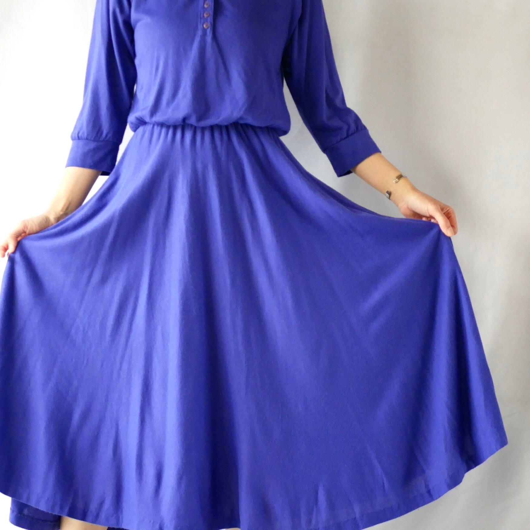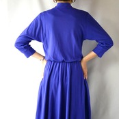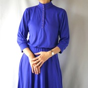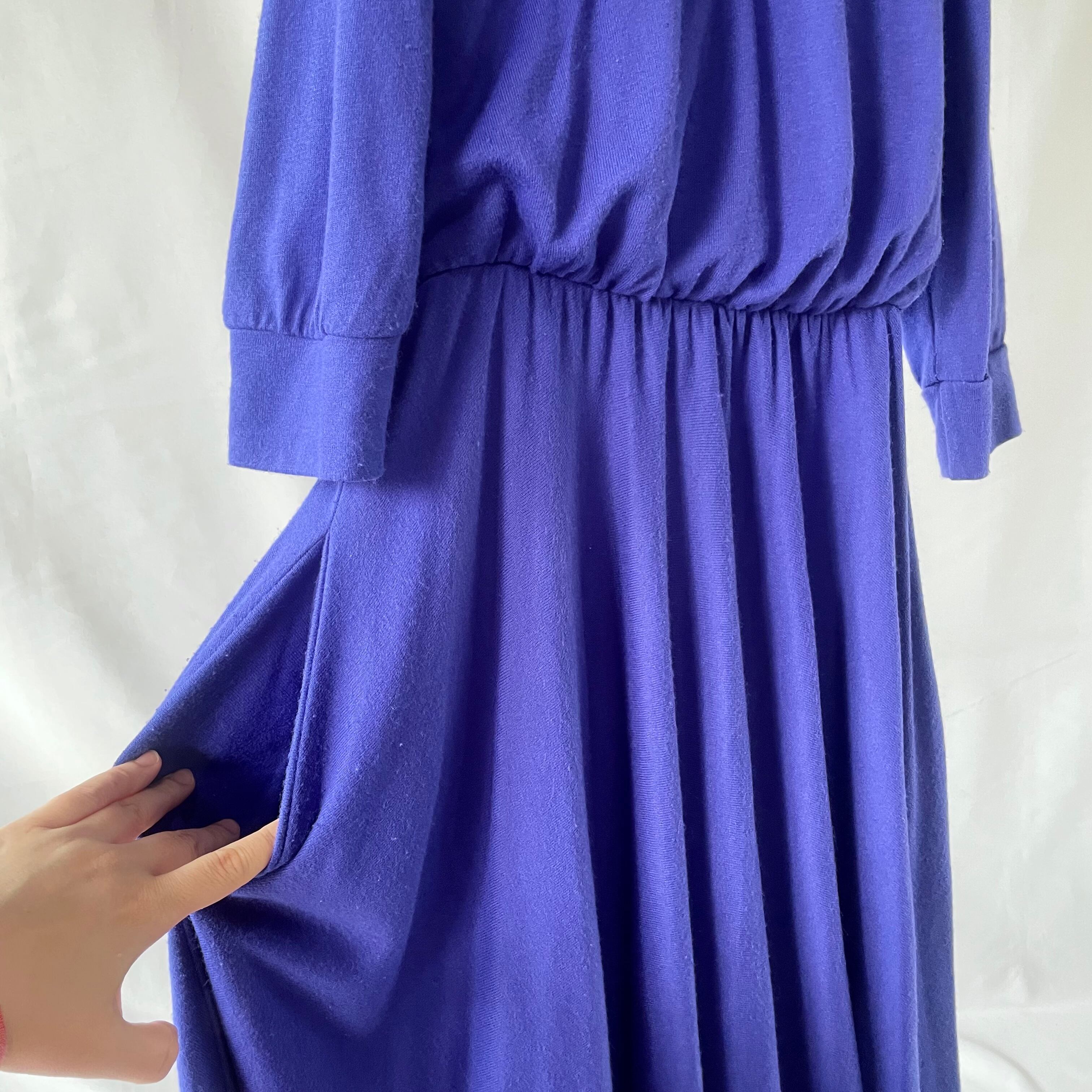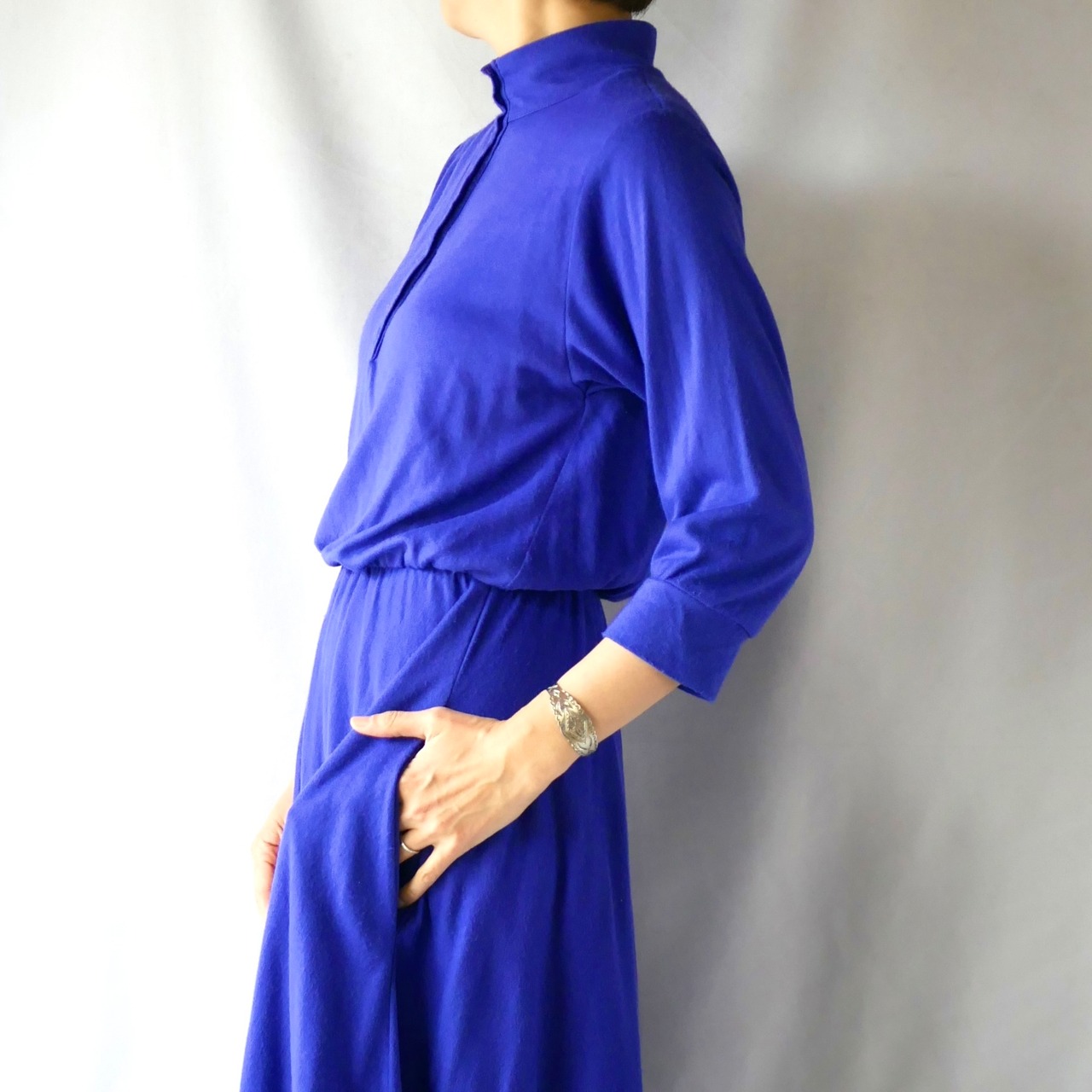 アメリカ製パープル アクリル100% ハイネック長袖ロングワンピースです。トップにタンクトップ型の裏地付き・ポケット付き。ウエストゴム入り。