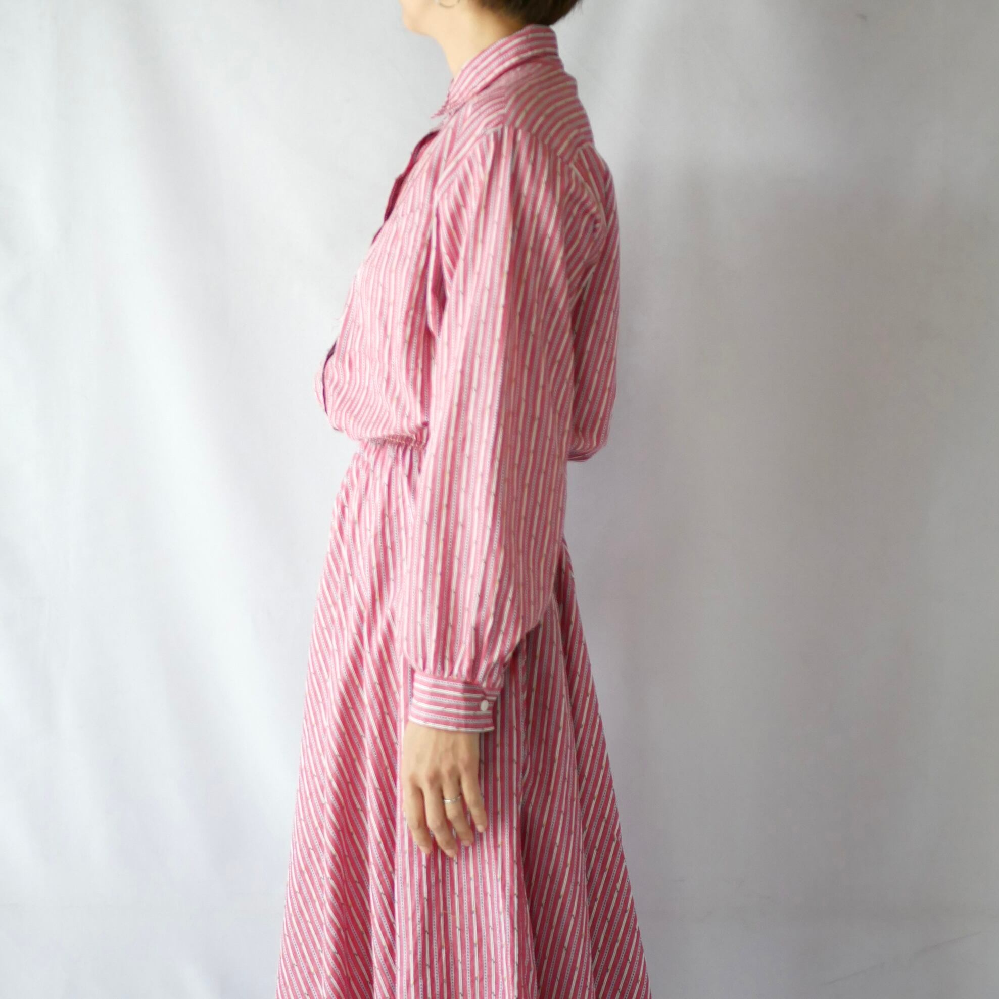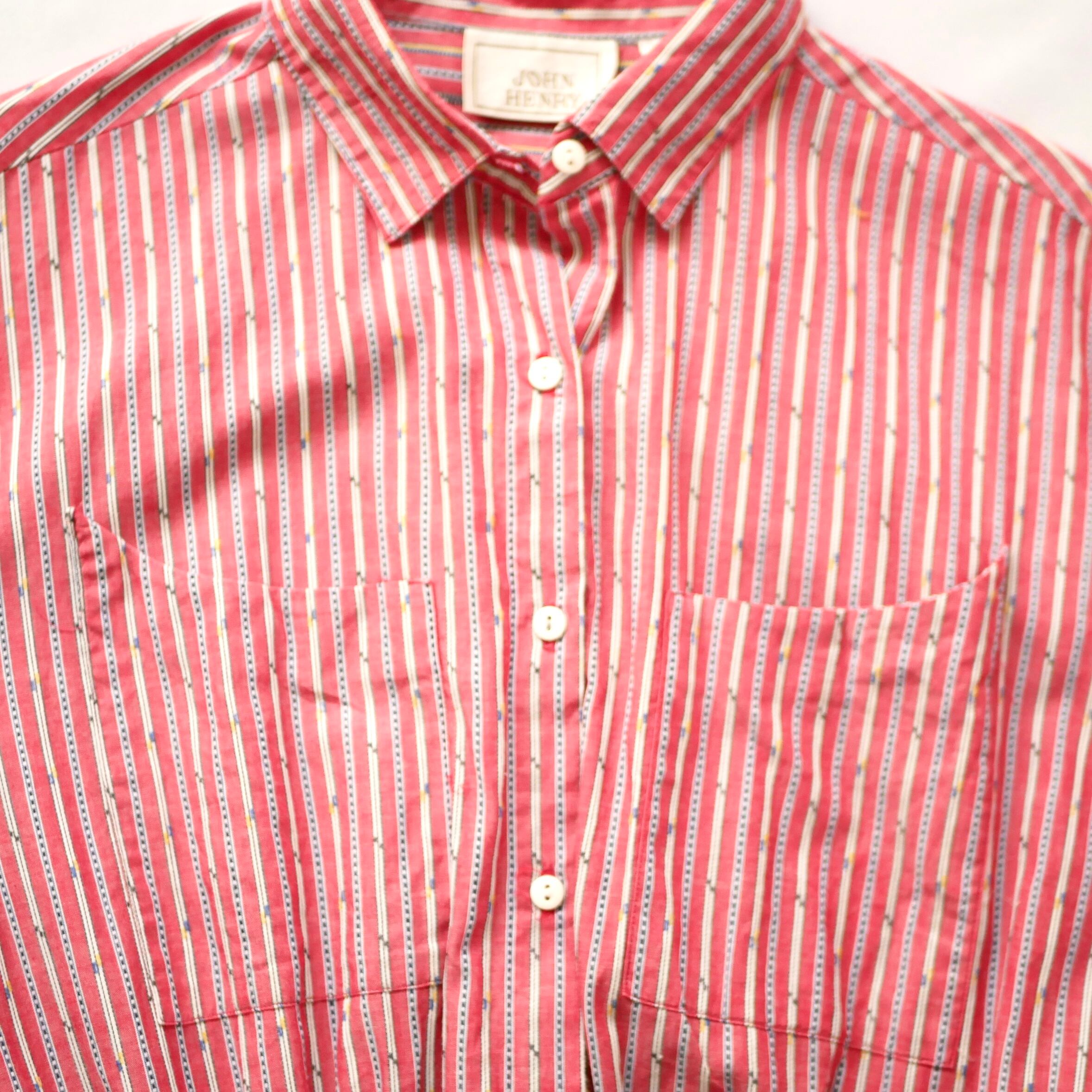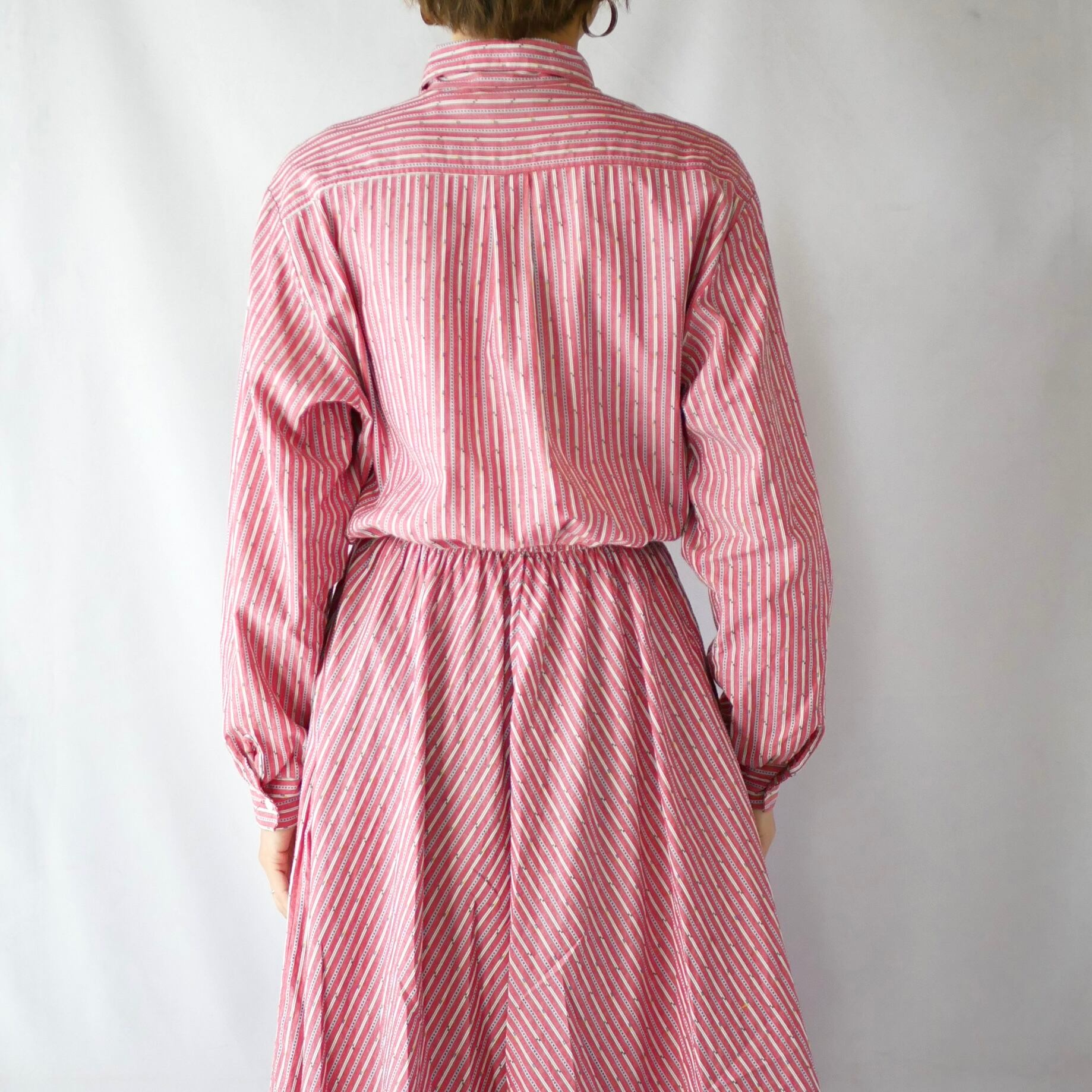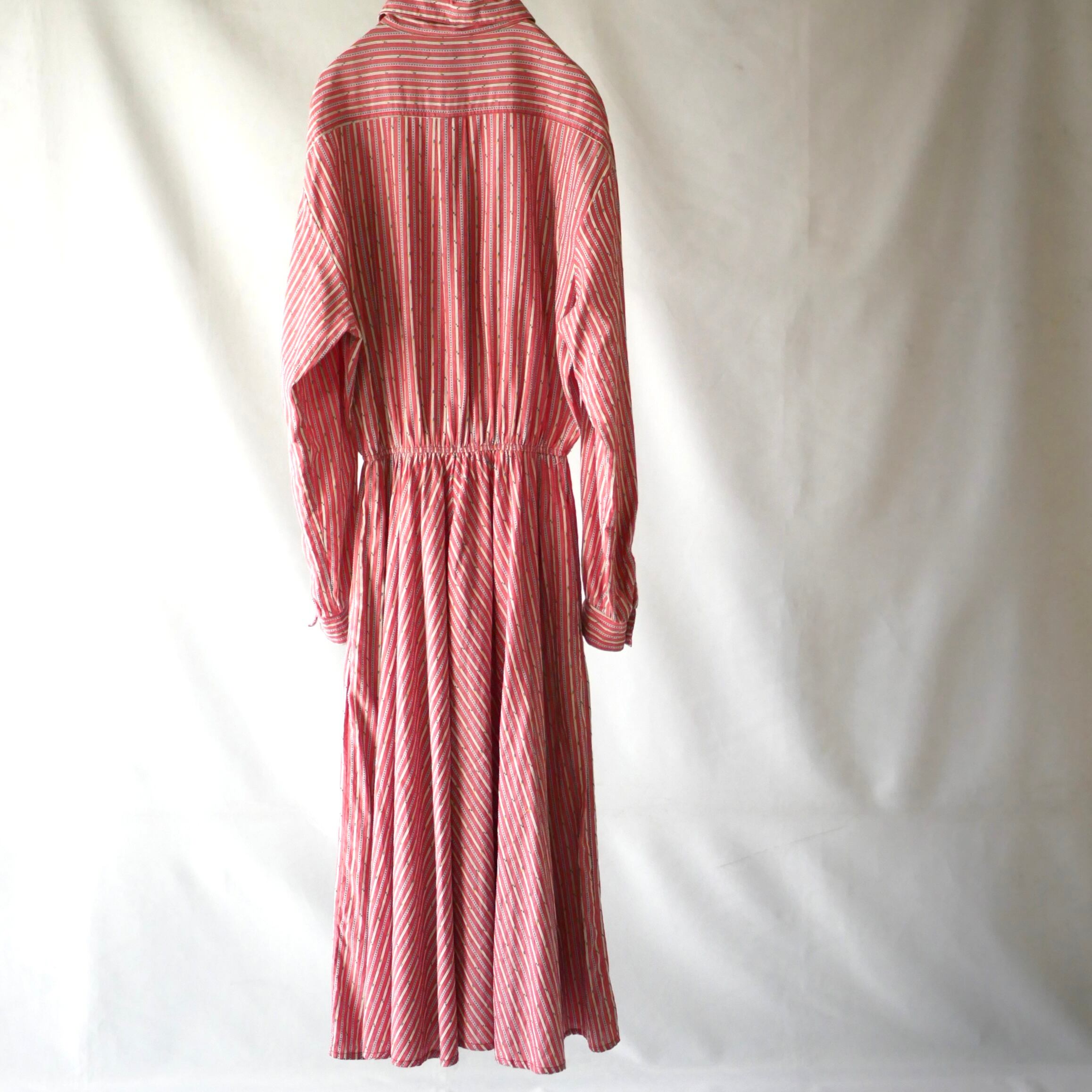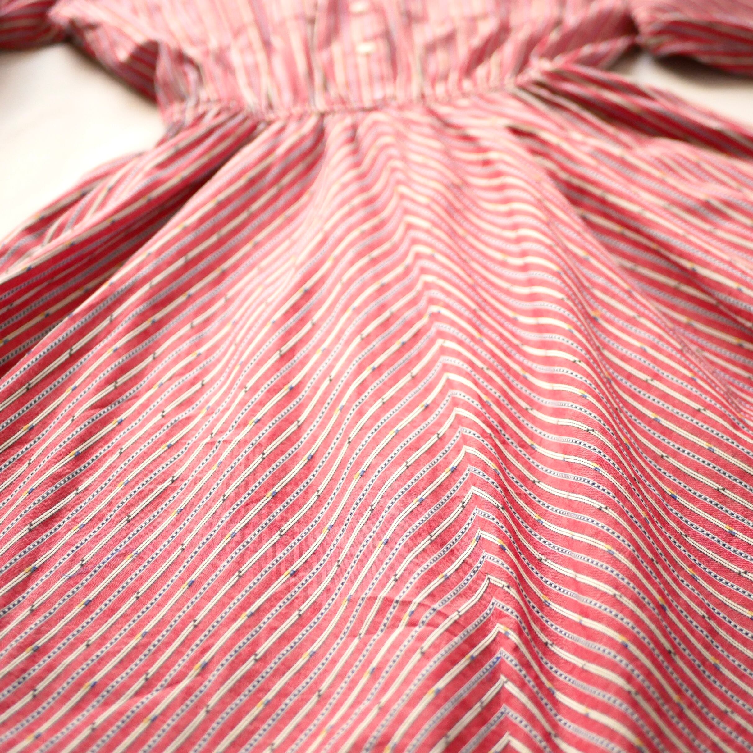 よく見ると色んな柄入りのアメリカ製赤ストライプシャツワンピースです。