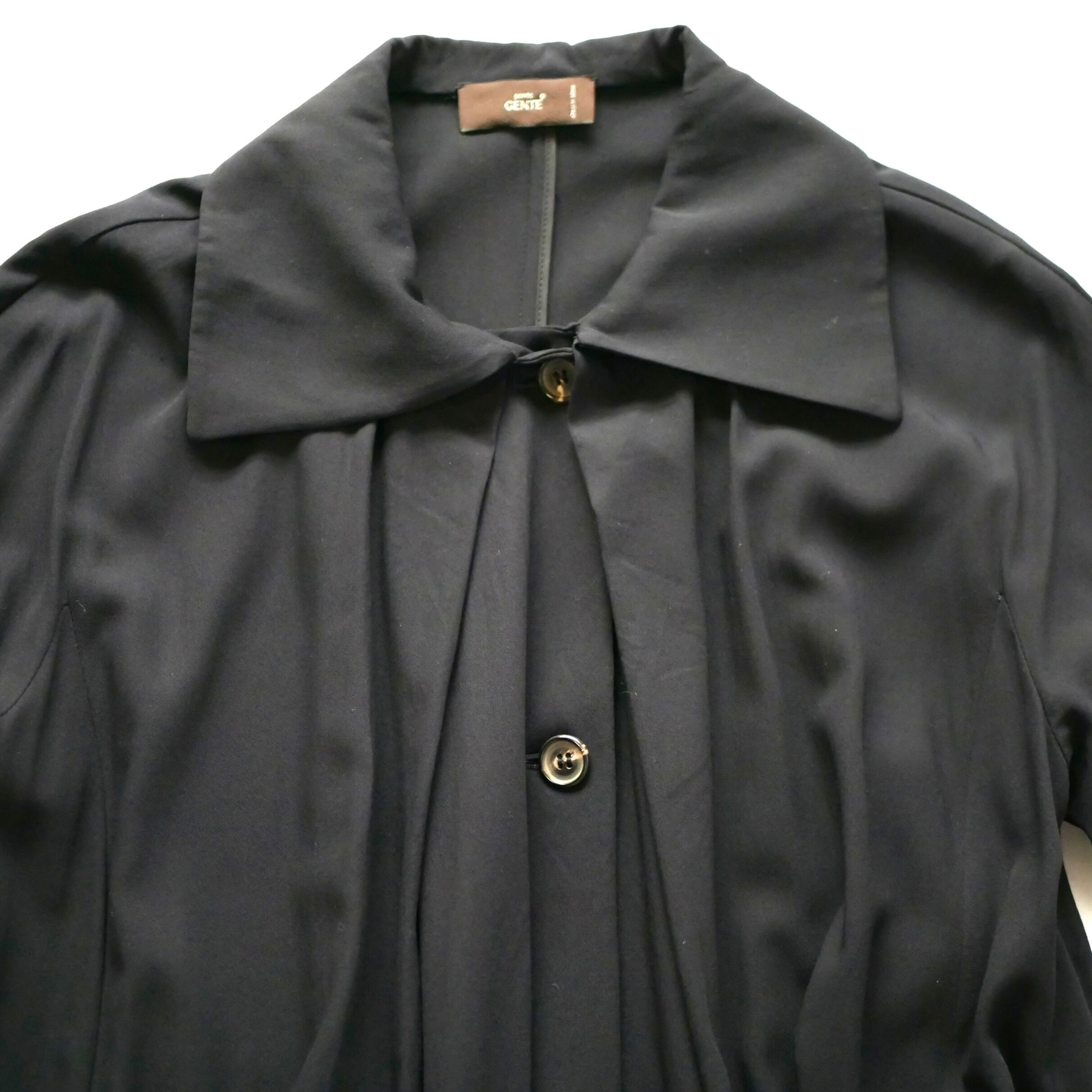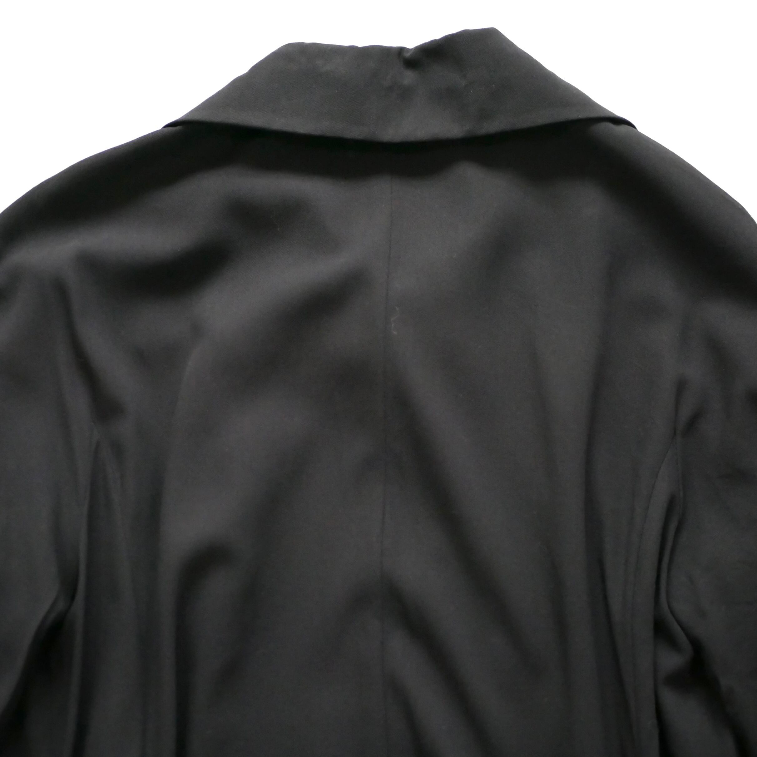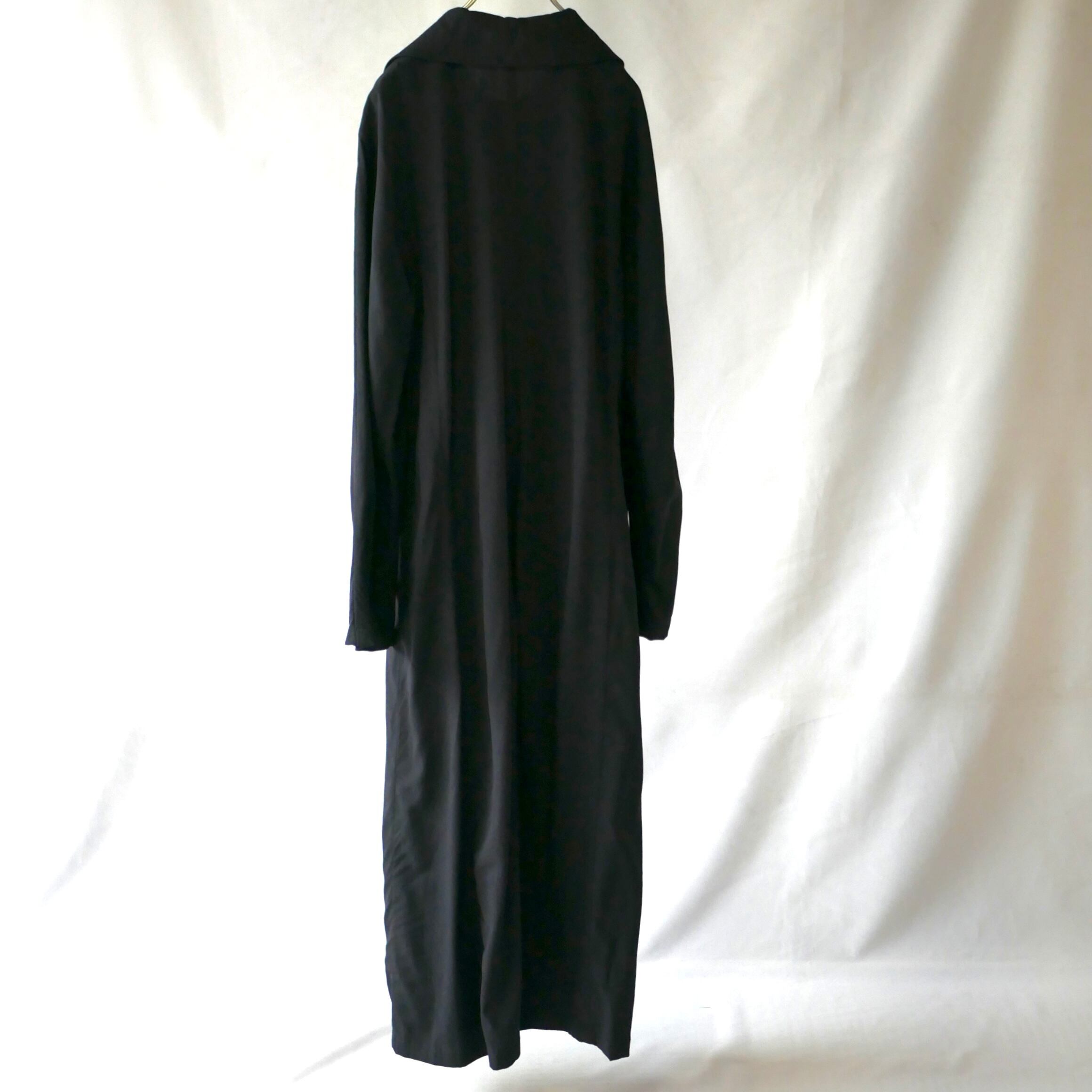 ウールレーヨン混素材で通年着られる素材感です。流れるような生地感と凝った作りが高級感あり長く着られるコートです。裏の縫い代も全てパイピング始末されており、手が込んでいます。