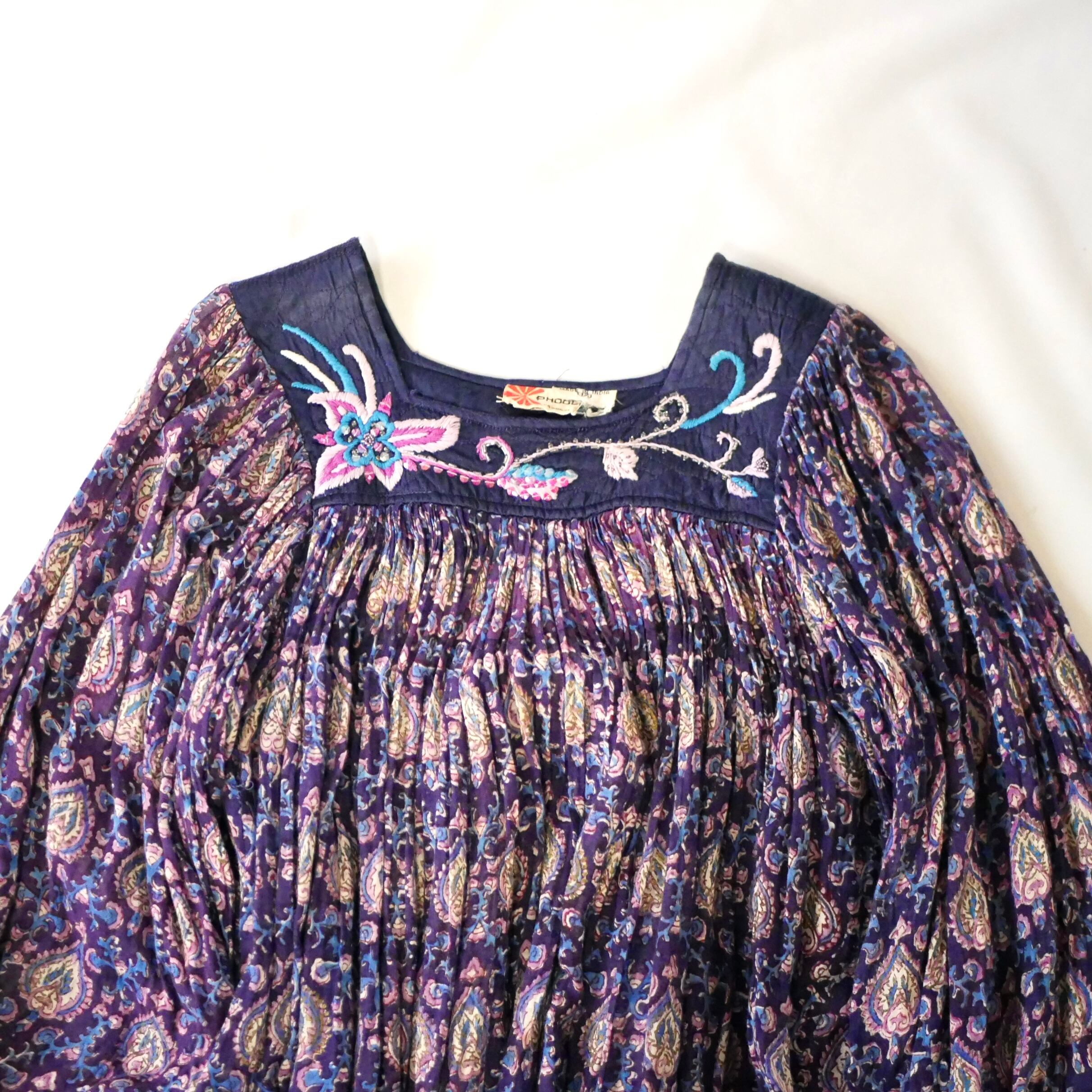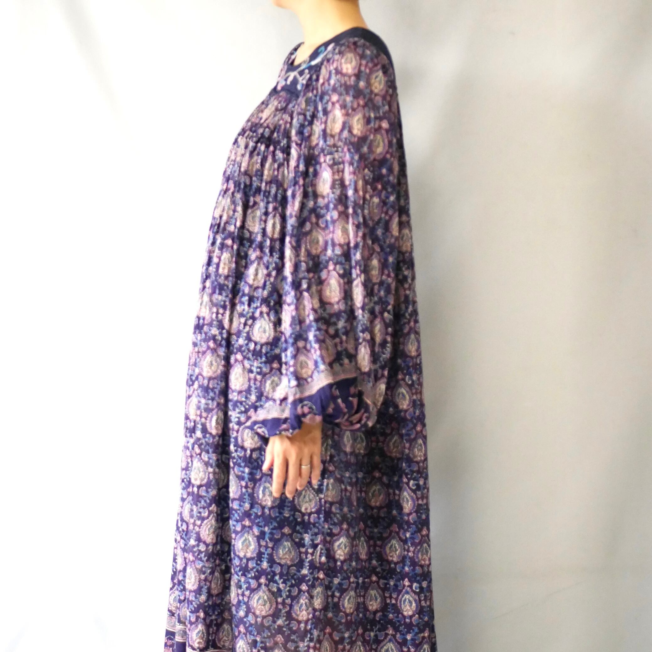 70s PHOOL indian cotton purple volume sleeve onepiece