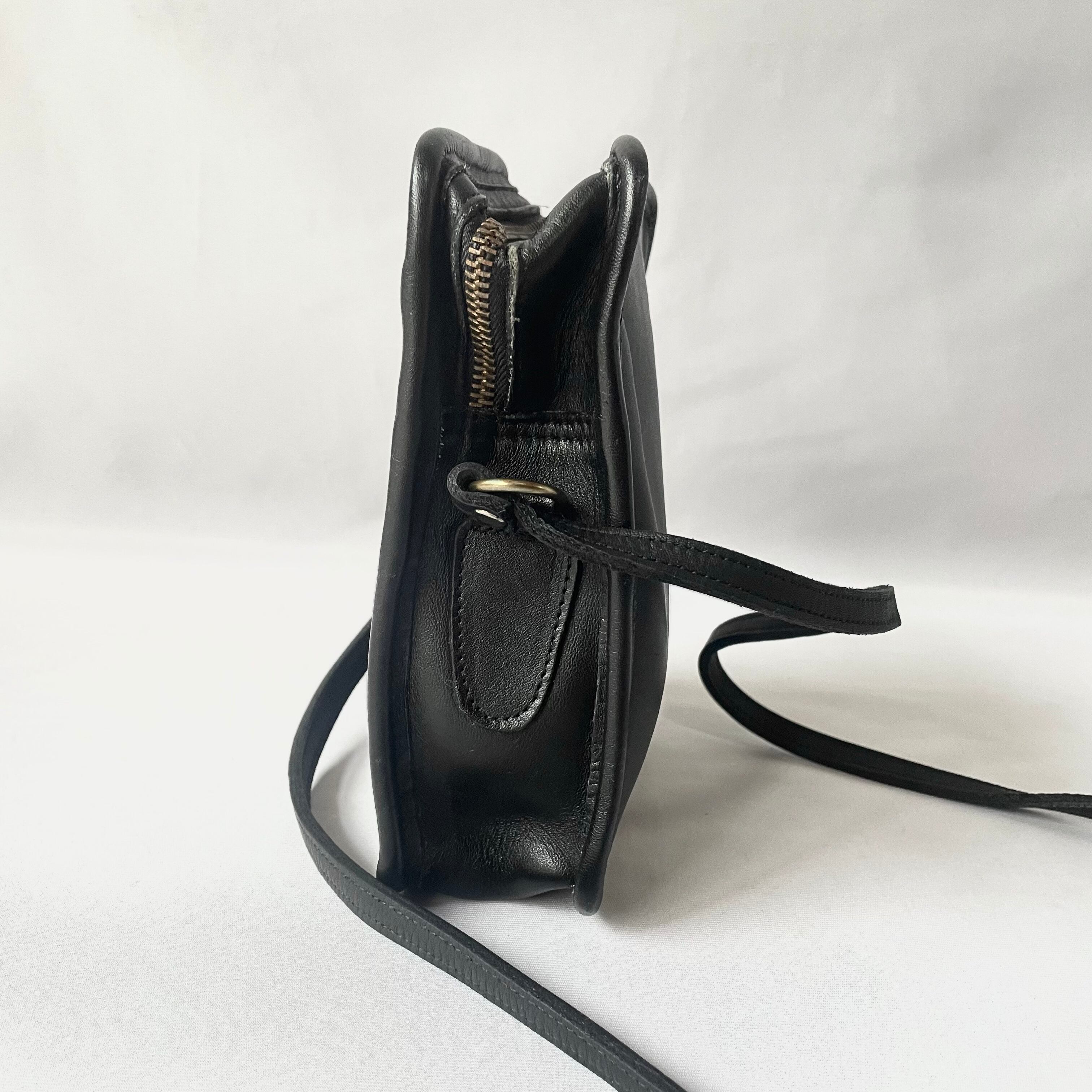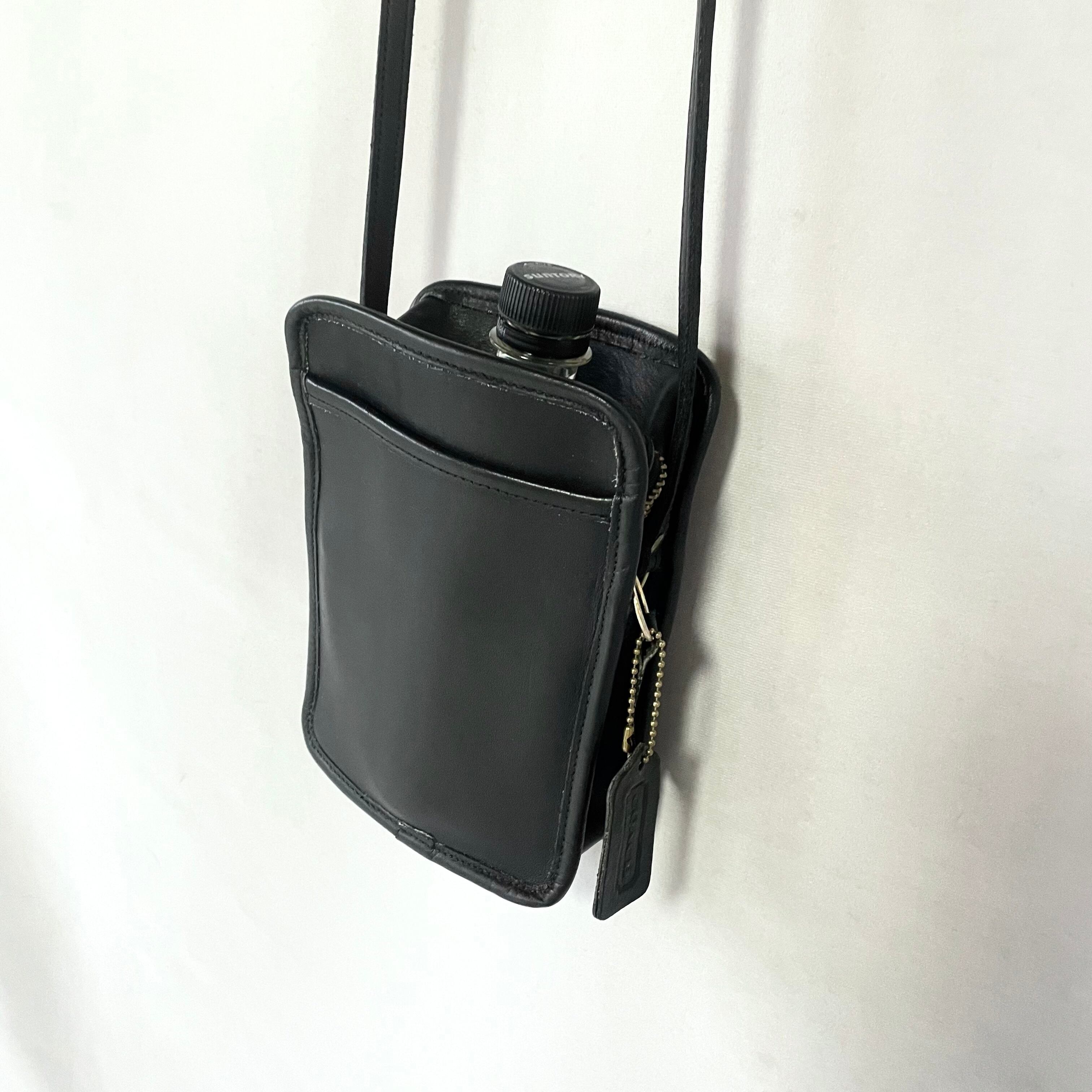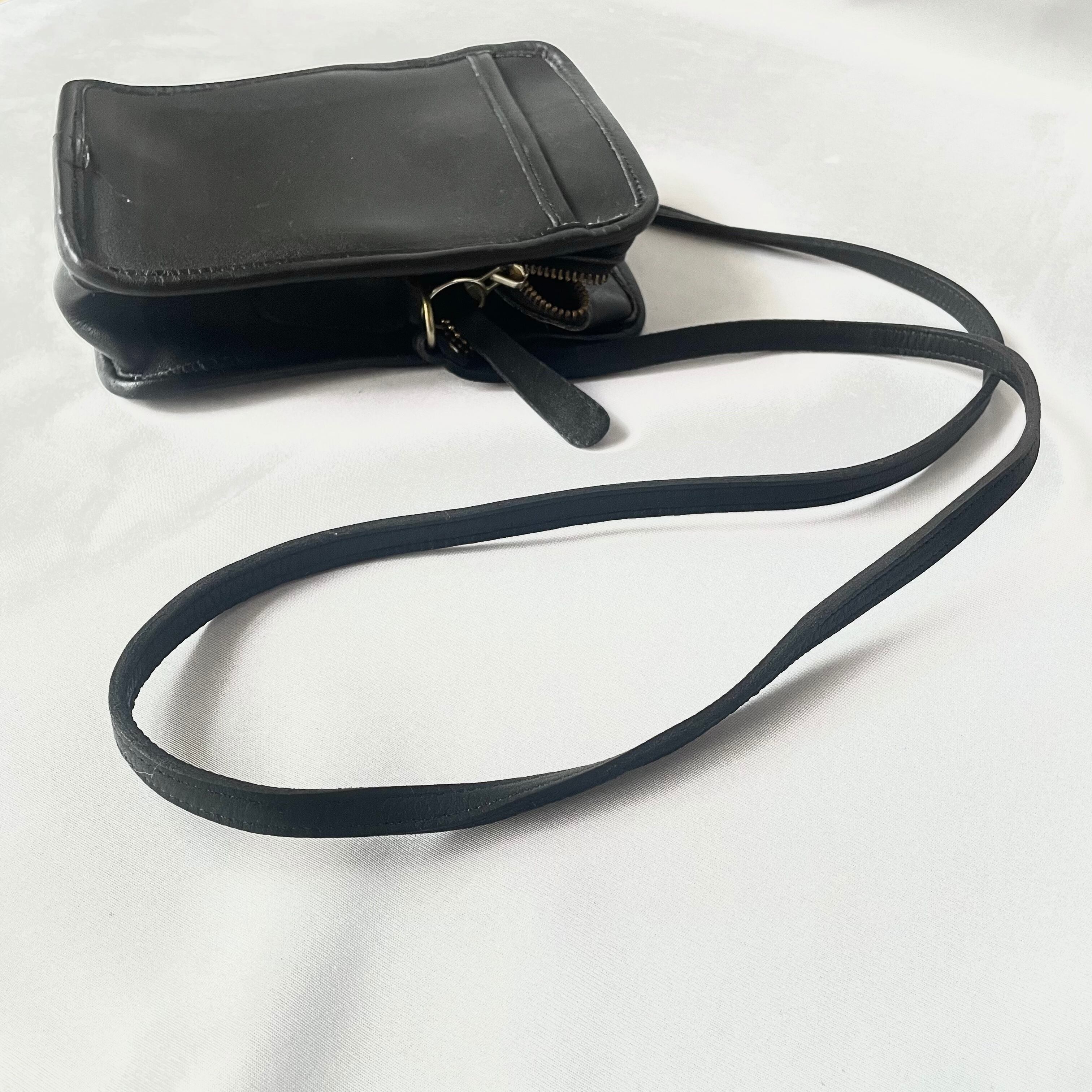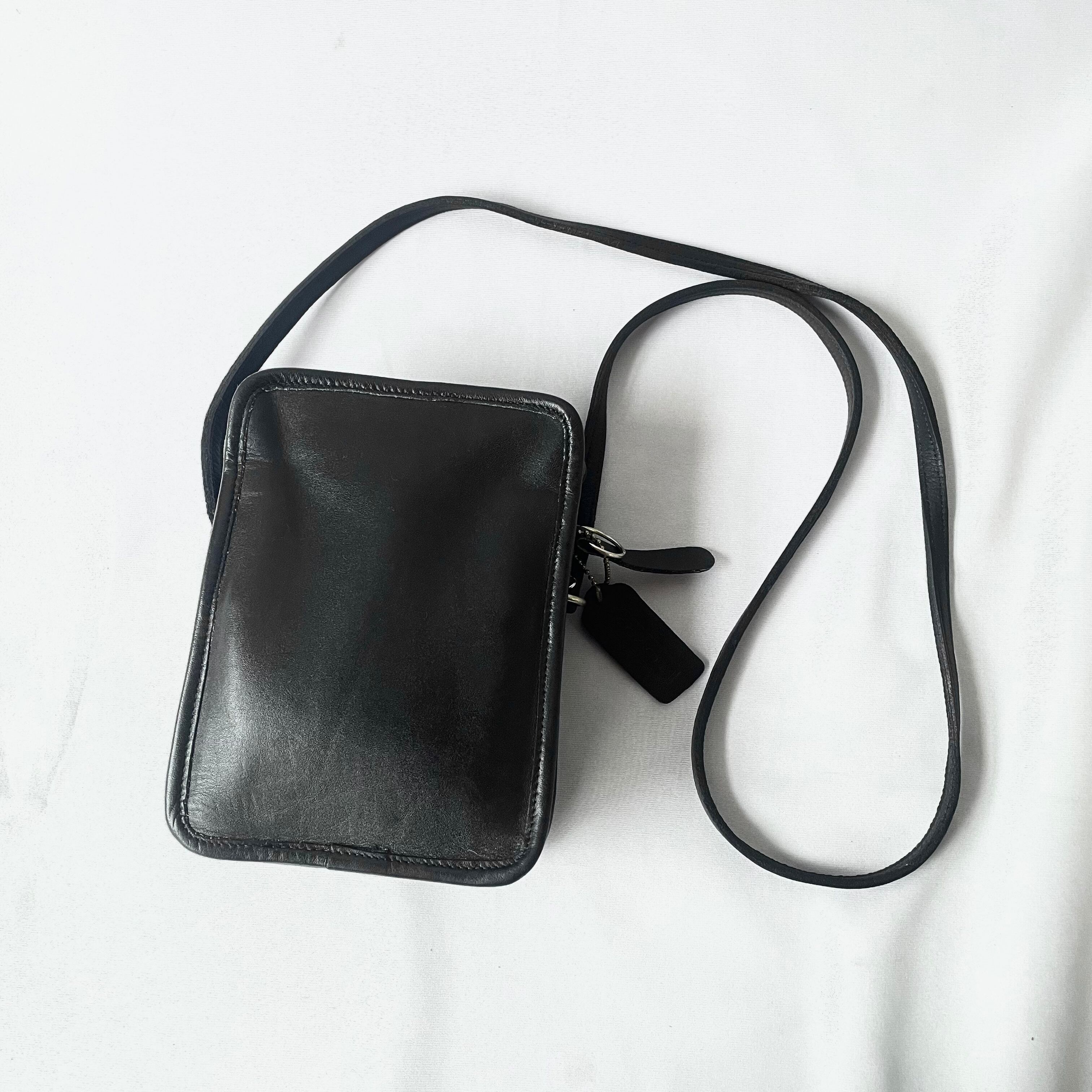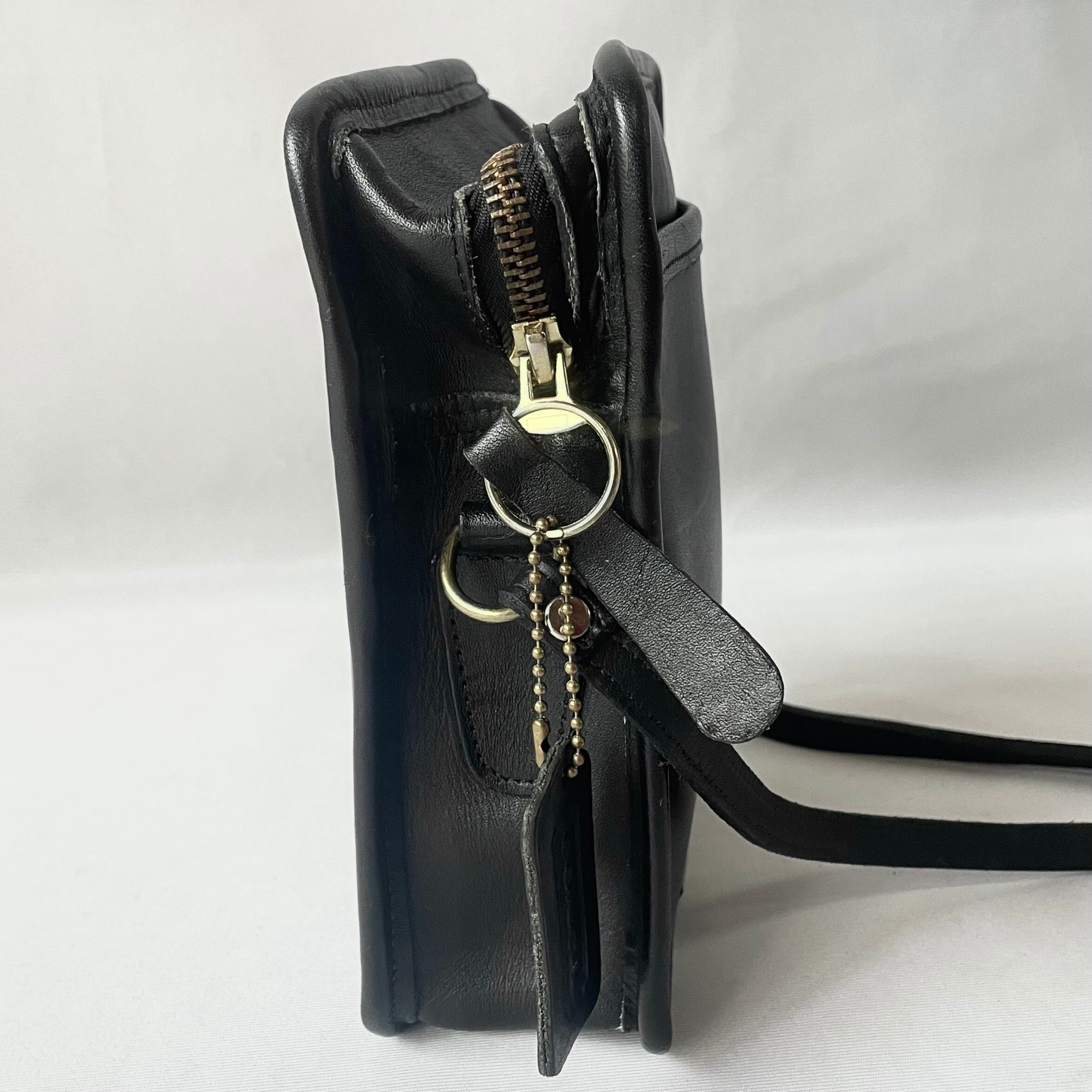 人気のコンパクトサイズ!オールドコーチ 黒レザー 縦長 ミニショルダーバッグです。レザータグ付き。
