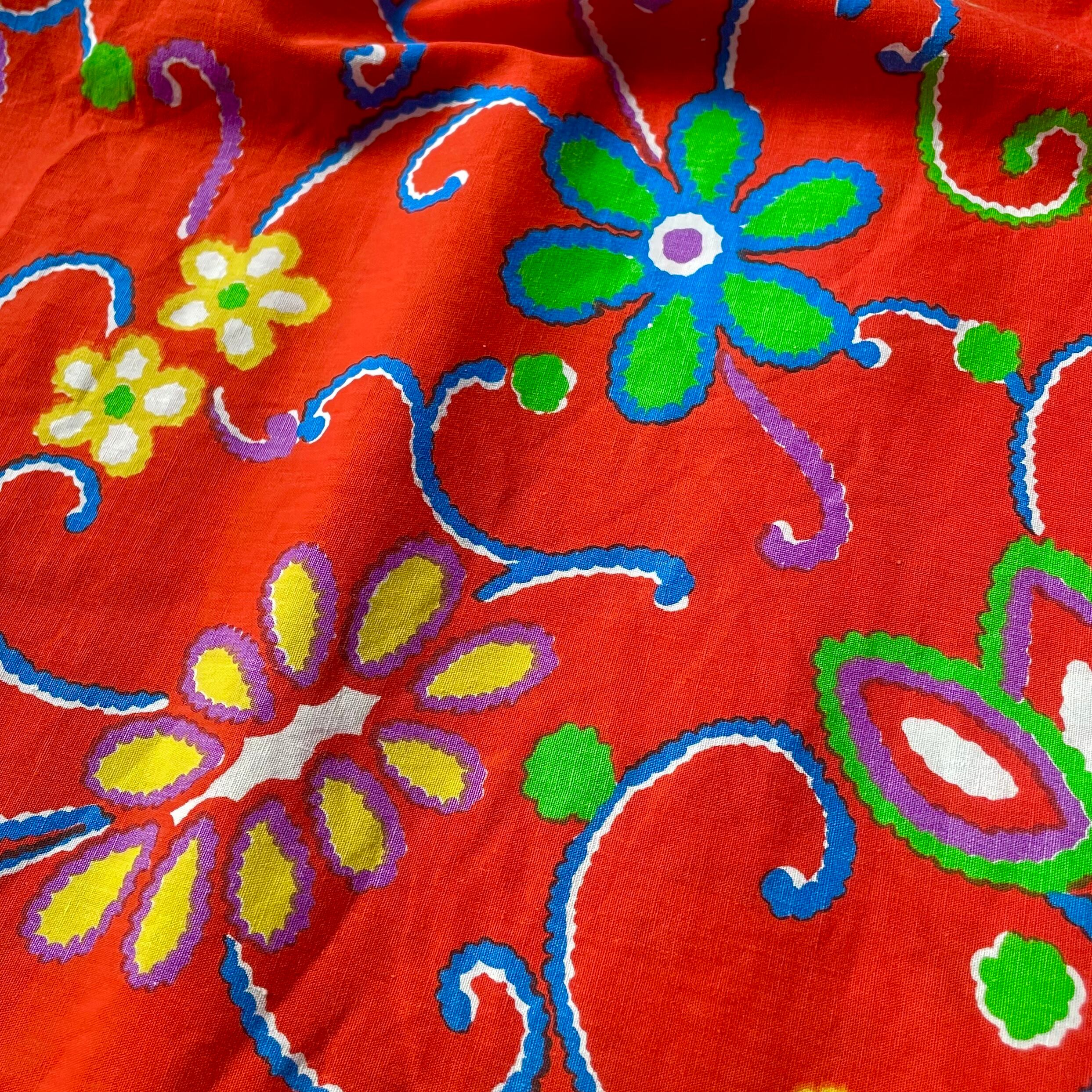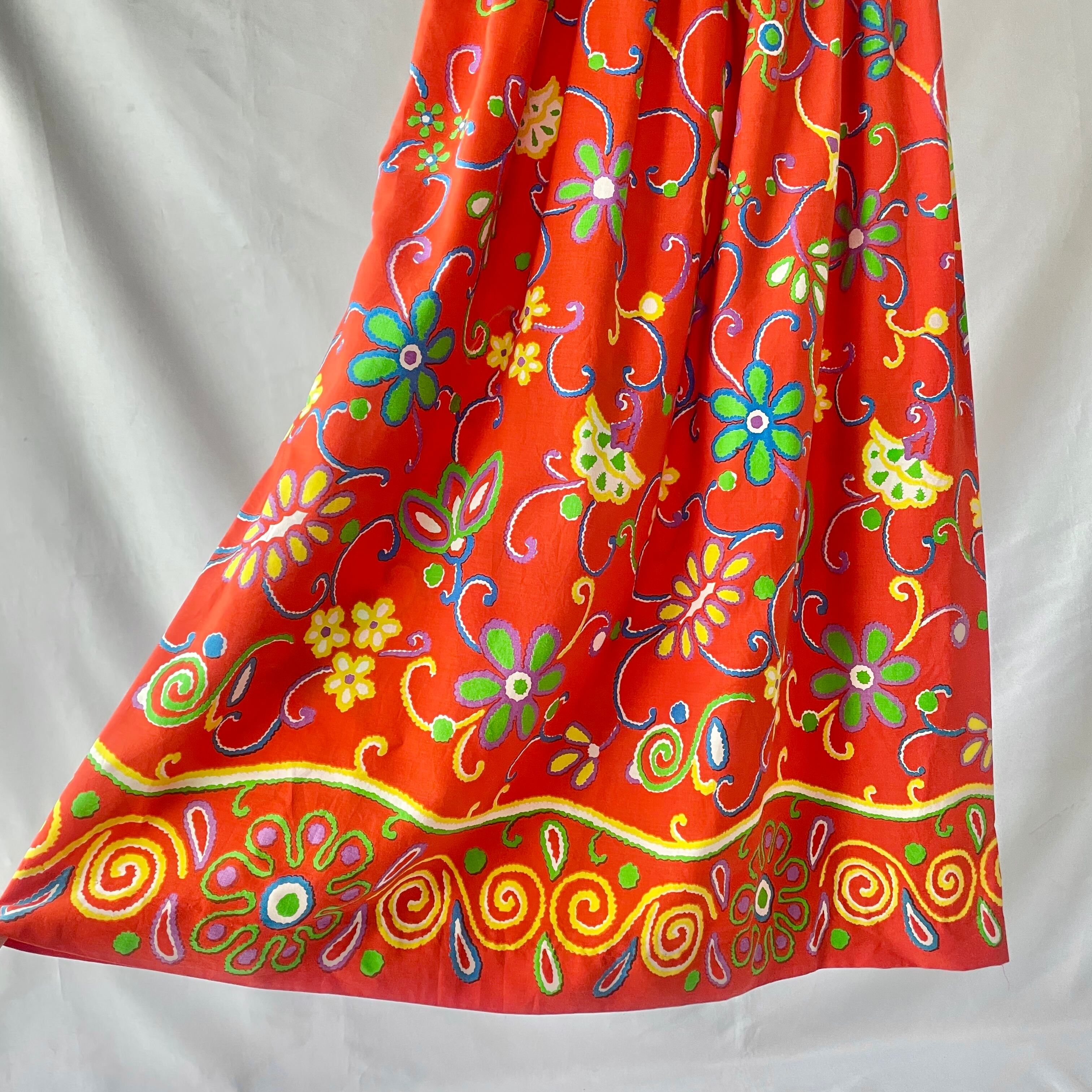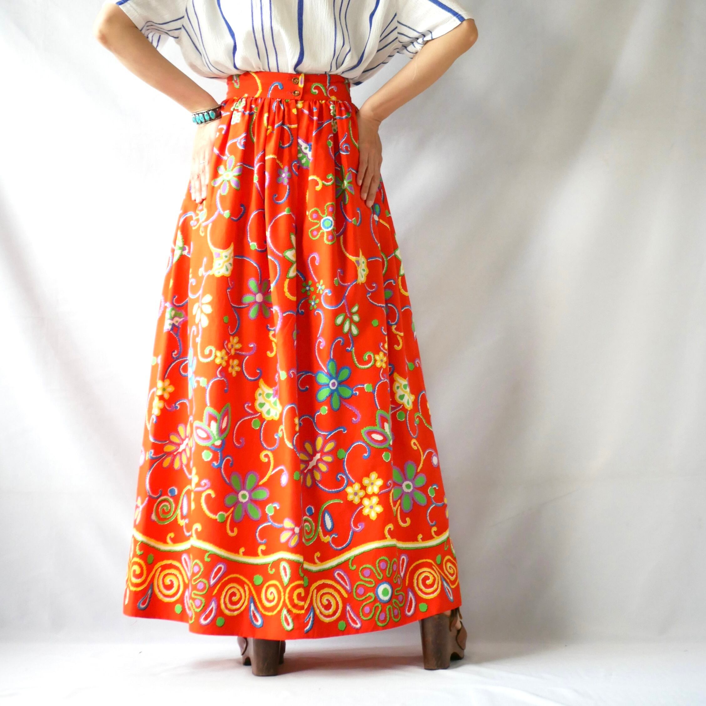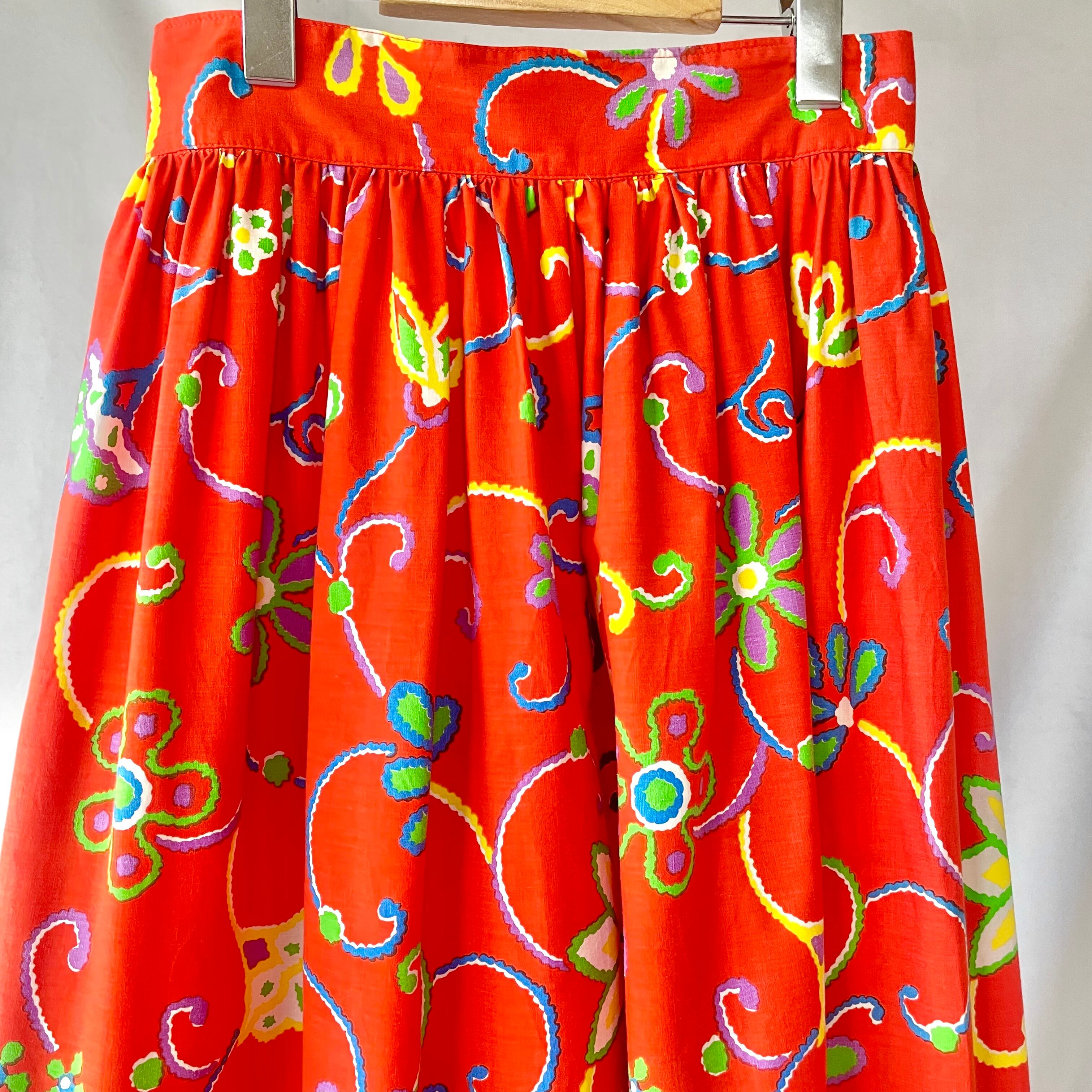 赤にpopな花柄が可愛い70年代ヴィンテージ マキシ丈スカートです。