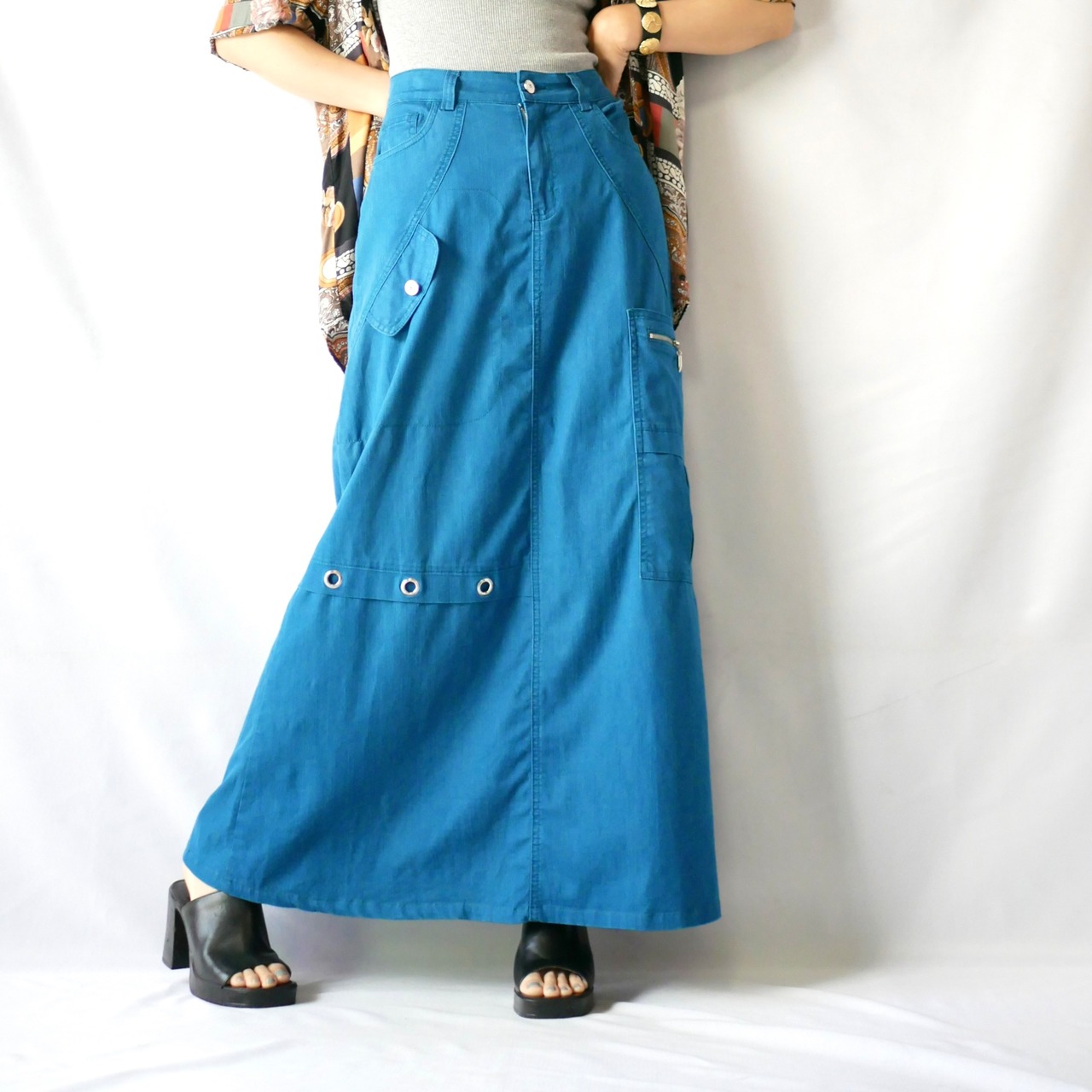 Turquoise pocket maxi skirt ターコイズポケット沢山マキシスカート
