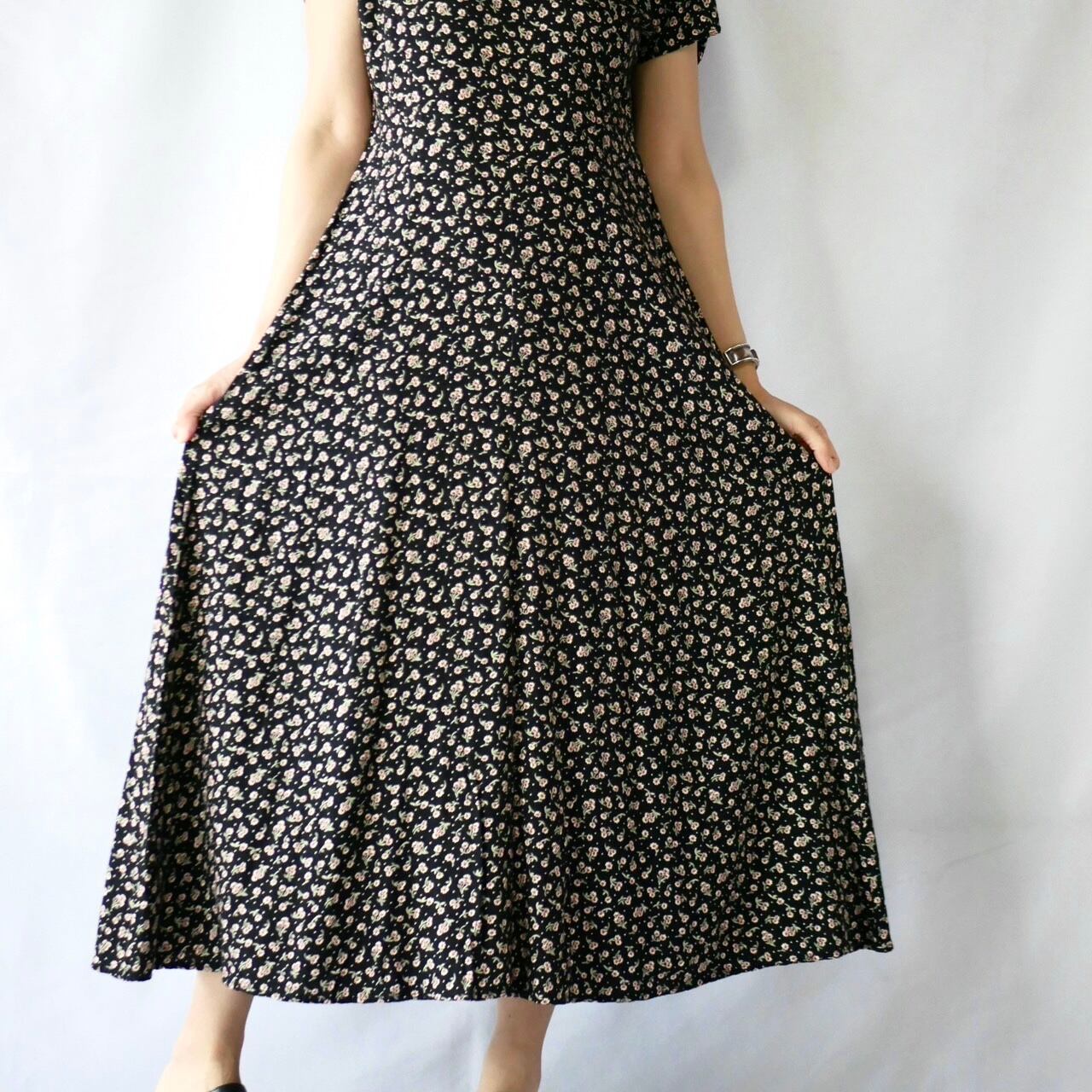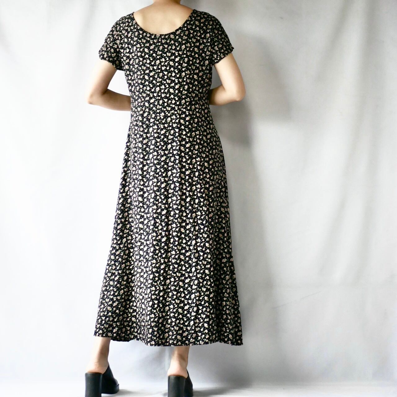 All that jazz black floral rayon onepiece 黒小花柄レーヨンワンピース