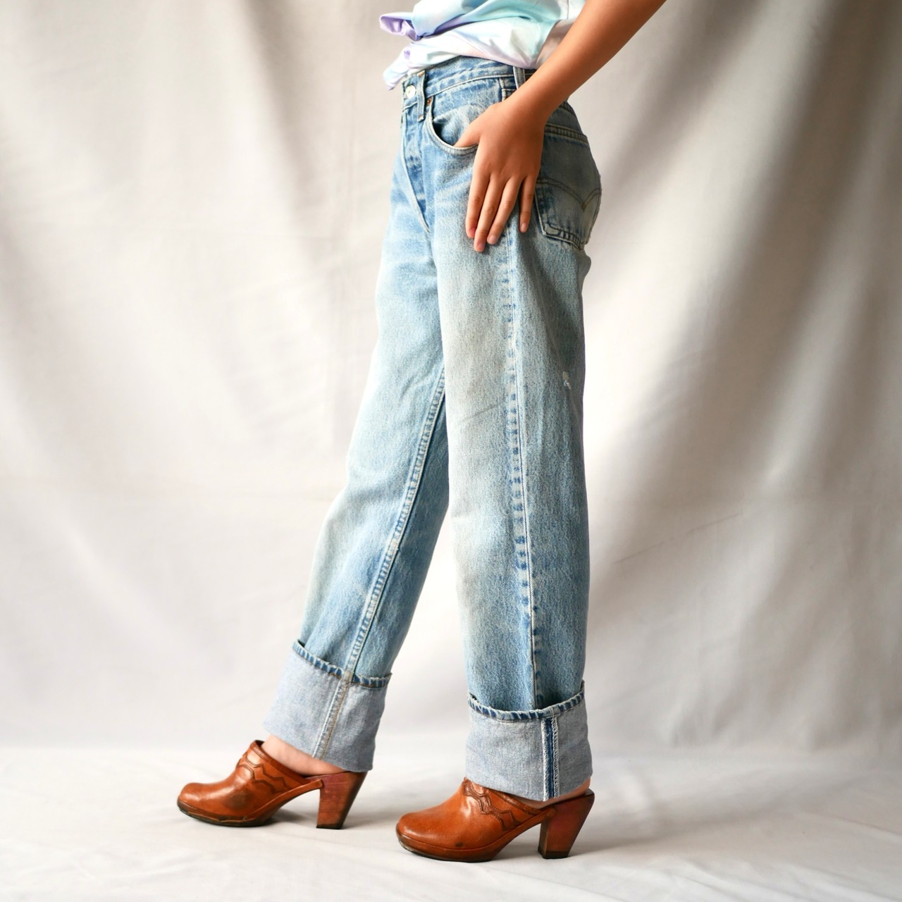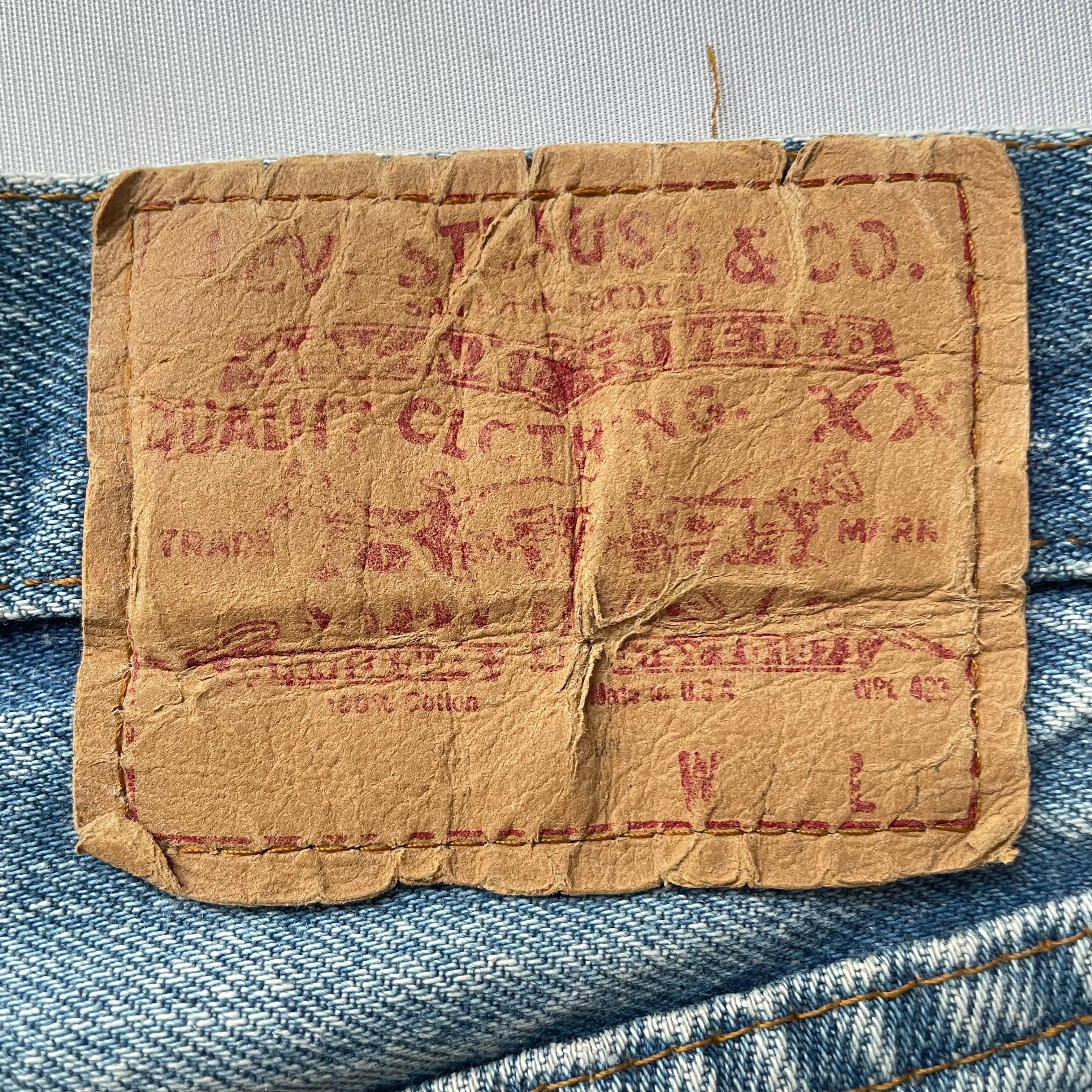 淡い色味のヴィンテージ USA製リーバイス 501 デニムパンツです。ボタン裏501