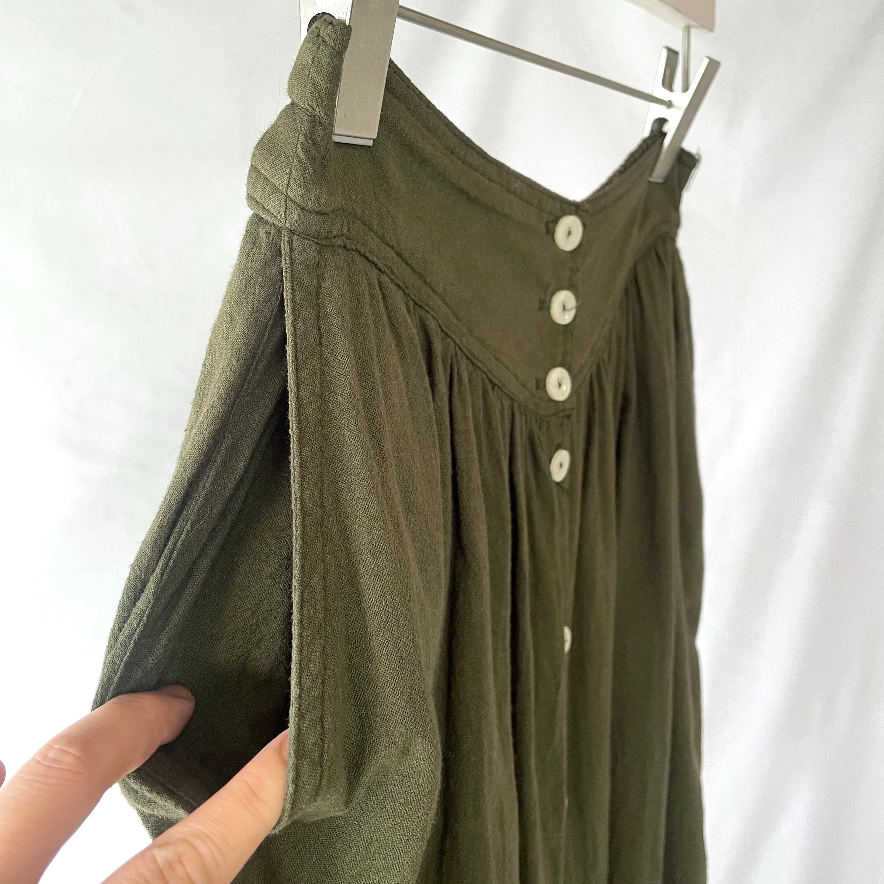 80s Made in USA olive green flare skirt アメリカ製オリーブコットンフレアスカート