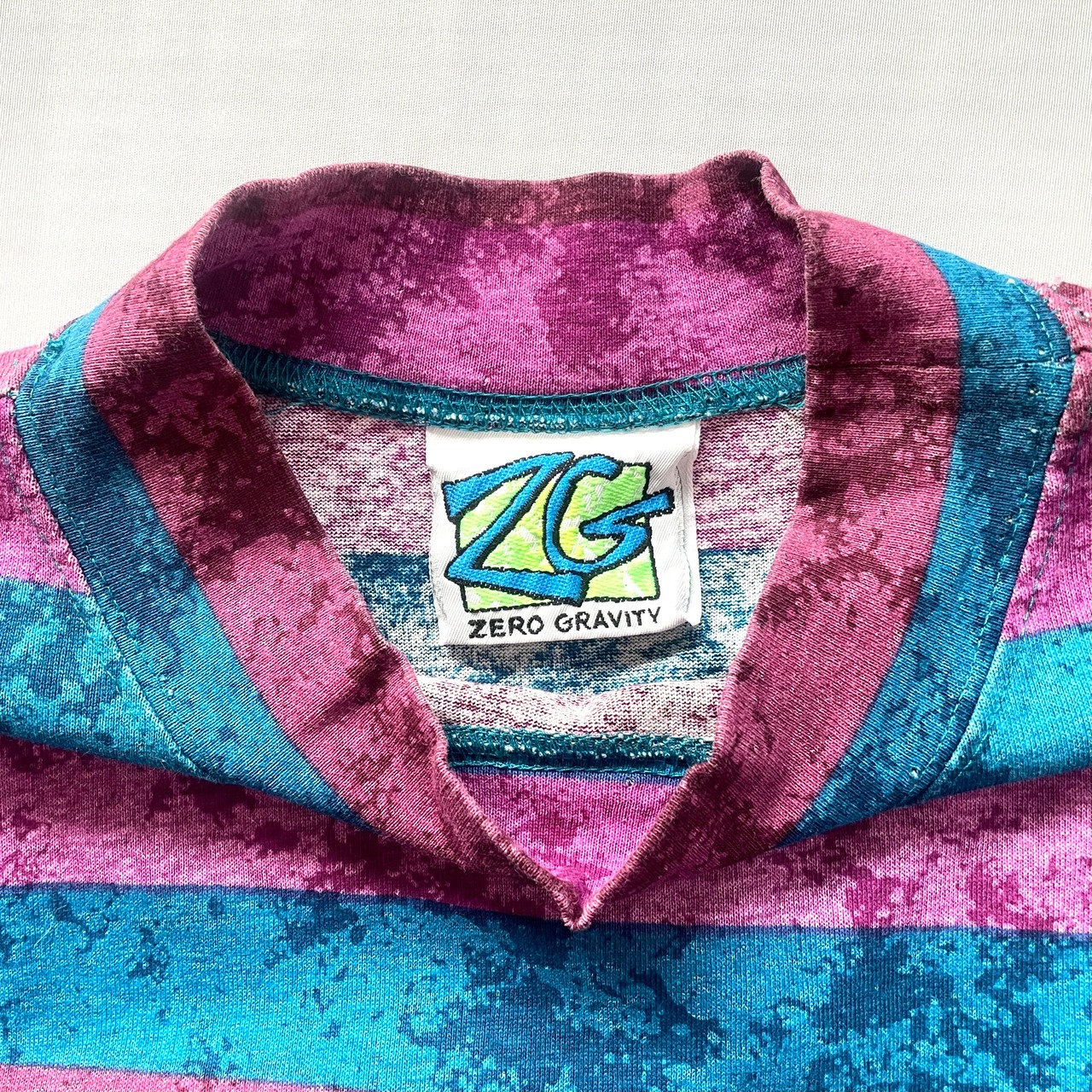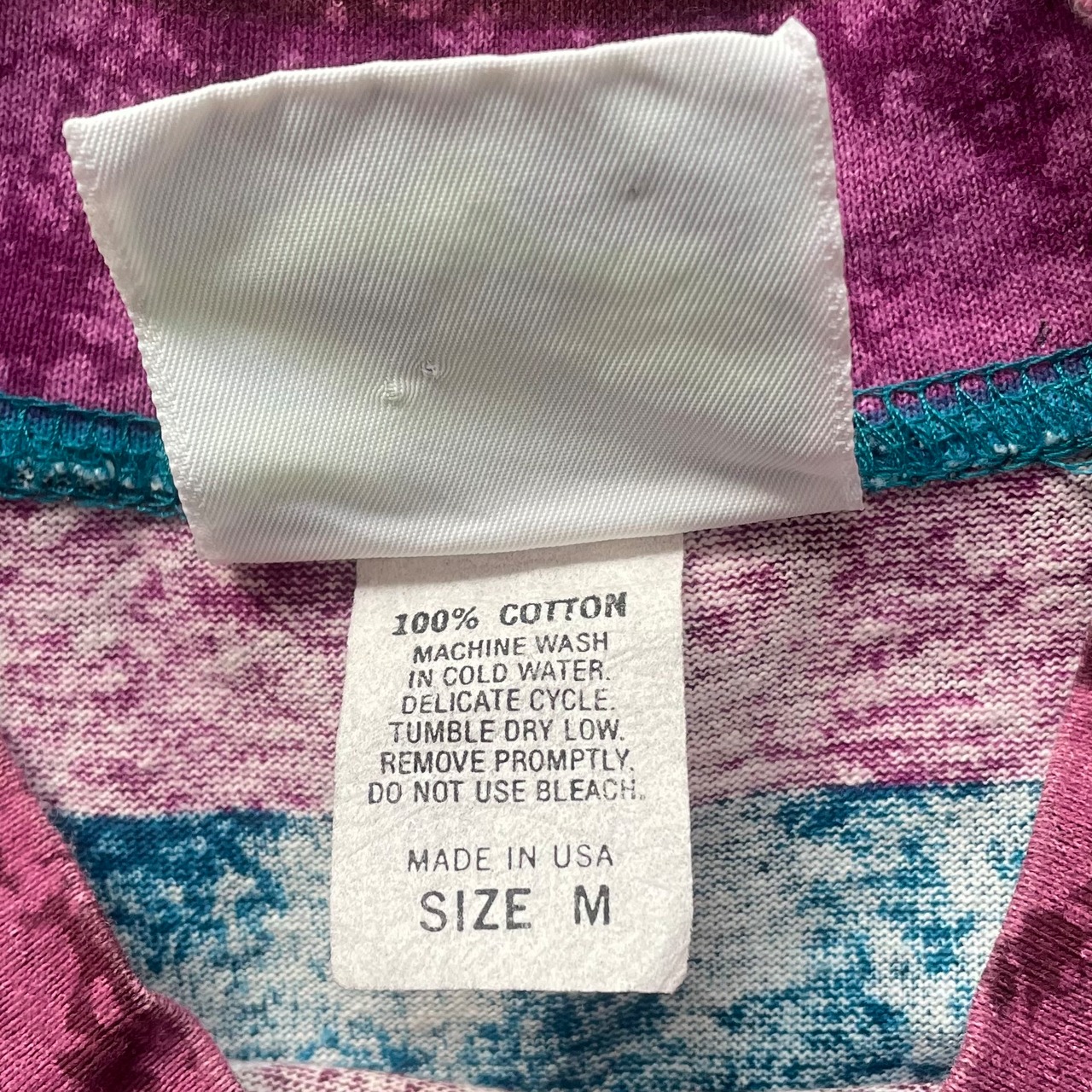 acid wash(ケミカルウォッシュ)風な2色ボーダー柄の90sアメリカ製モックネックTシャツです。ヘヴィーコットン100% メンズMサイズ