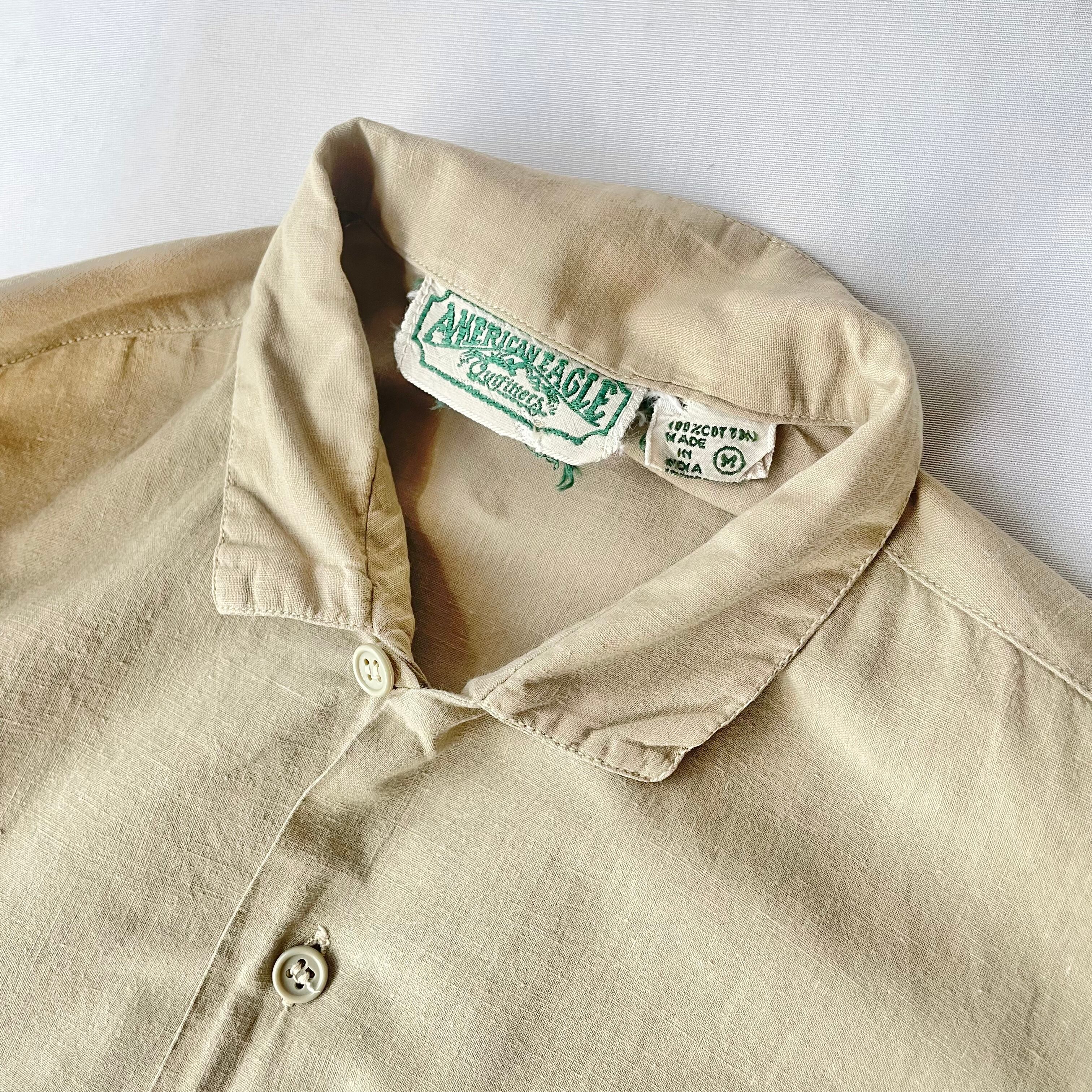 サファリっぽい雰囲気のある、7-80s頃のオールドアメリカンイーグル インド製コットン100% ベージュオープンカラー半袖シャツです。